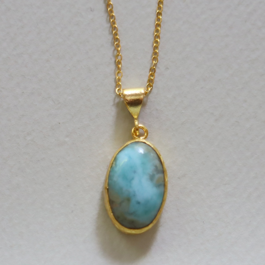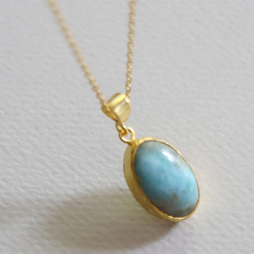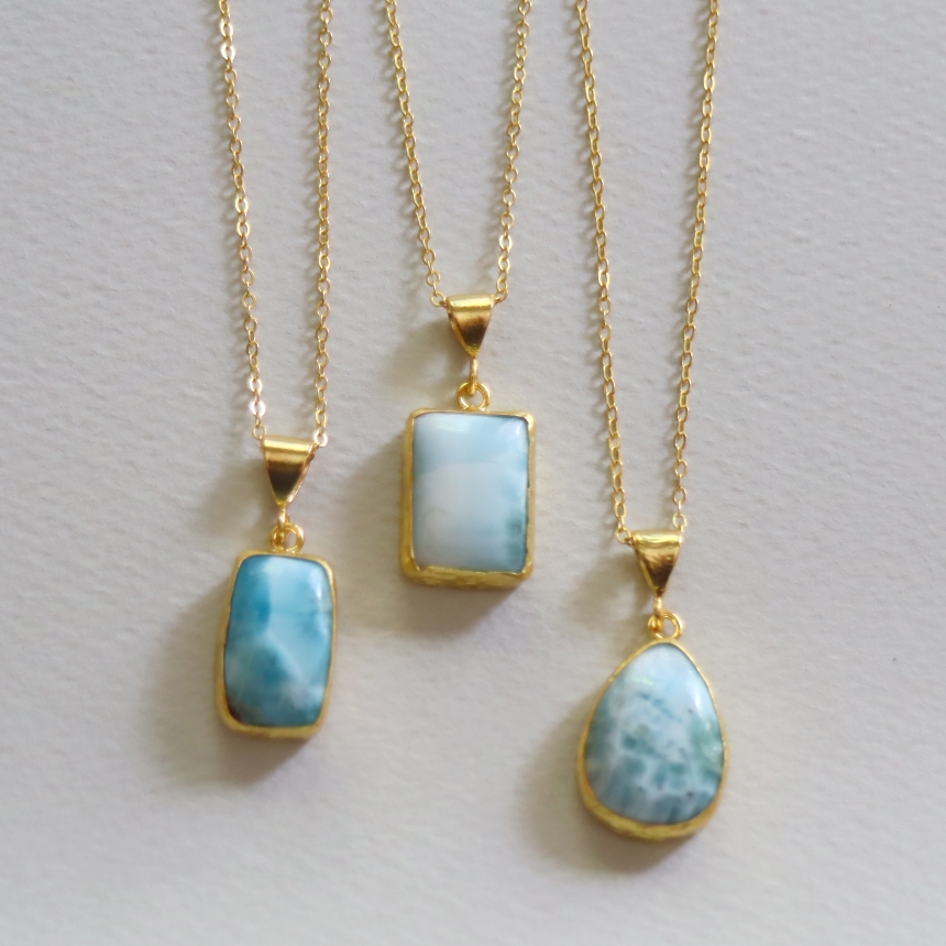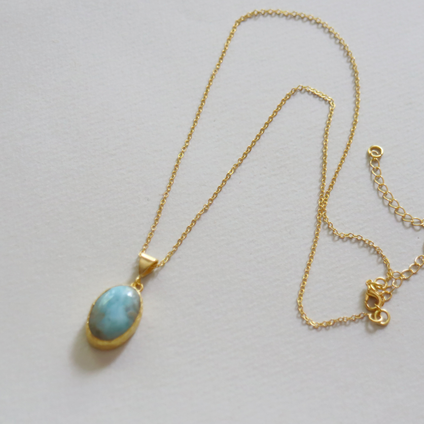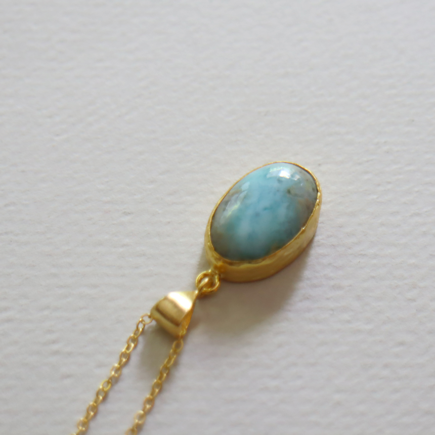 雲が浮かぶ青空のような模様が広がる、清々しいブルーが美しいラリマーのペンダントです。シンプルなデザインは石の本来の美しさを引き立てます。1mmの細身のチェーンは、45cmから55cmまで長さが調節できて、その日の装いに合わせてお楽しみいただけます。