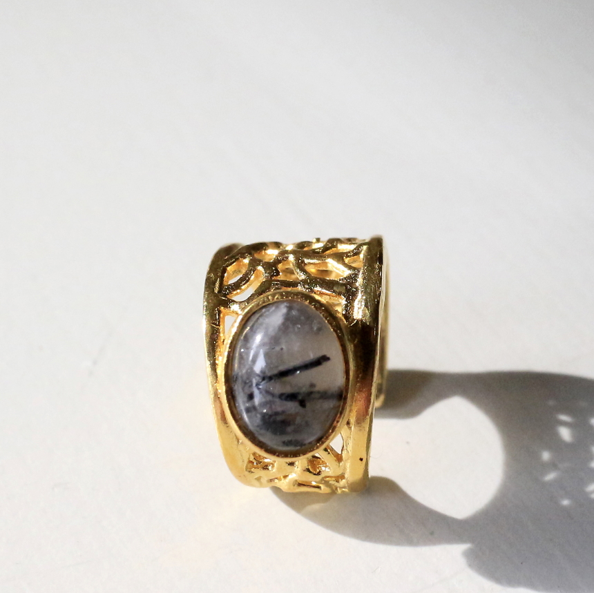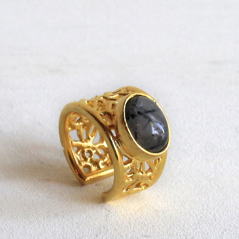 | 素 材 | 天然石(ブラックルチルクォーツ)、真鍮(22kゴールドプレートテッド) |
