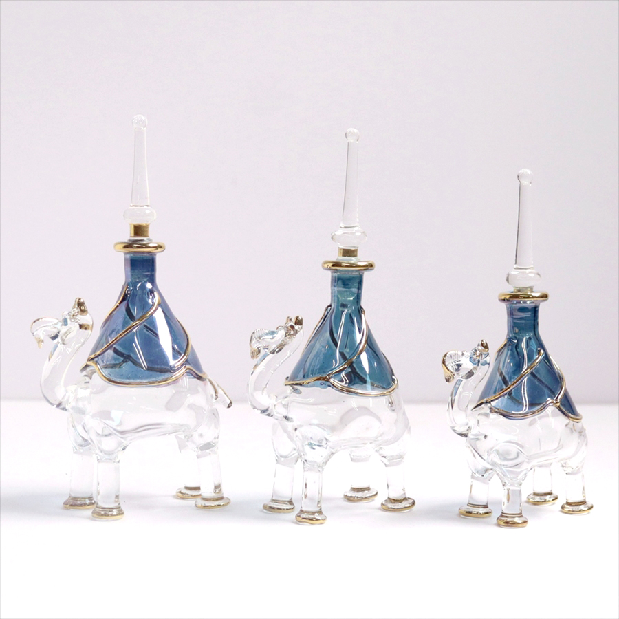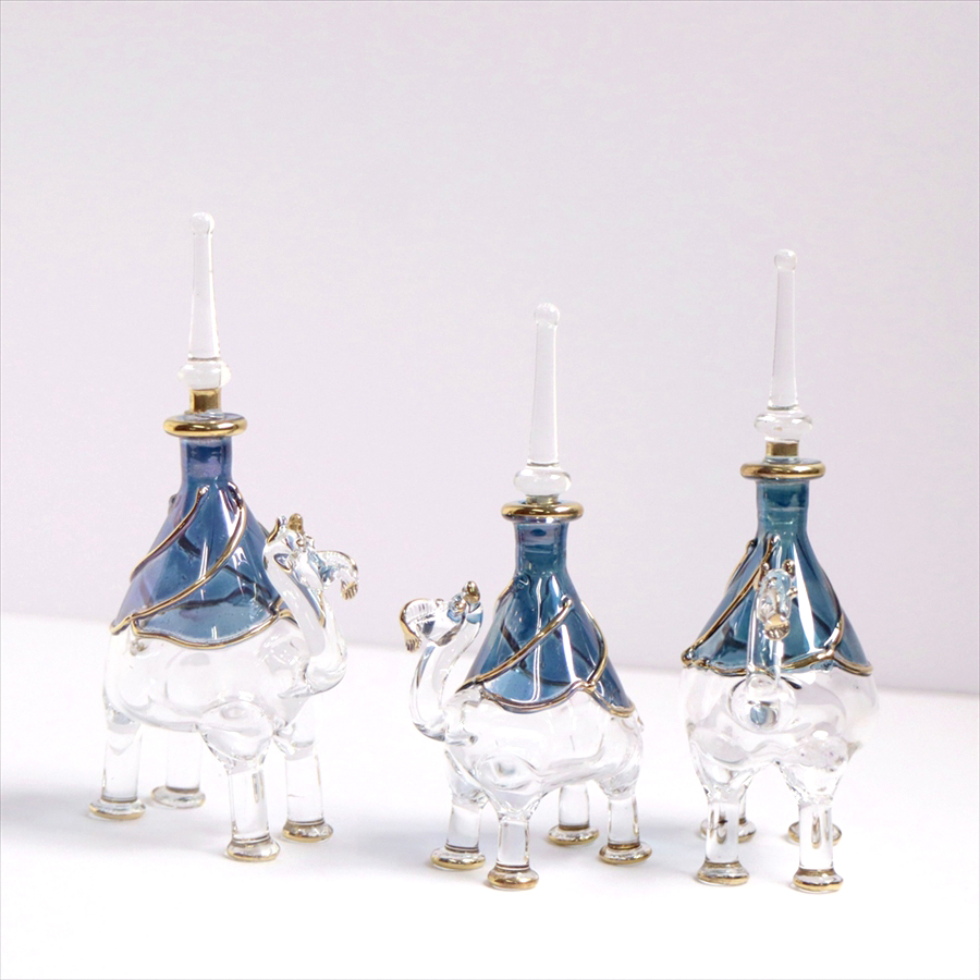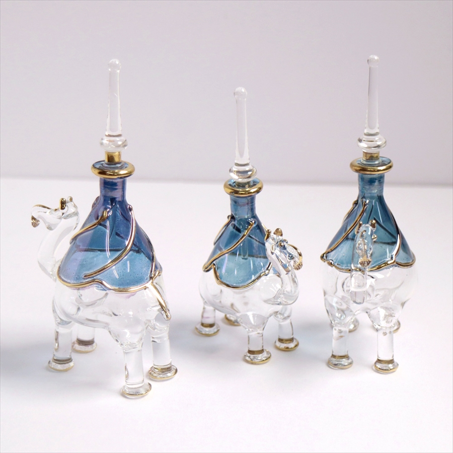 ガラスの起源といわれるエジプトで、現在も昔ながらの手ぶきで作られているラクダのカタチの香水瓶セット。