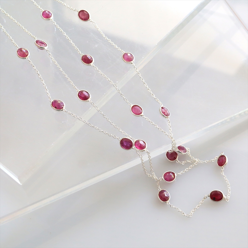 ルビーロングネックレス 91cm ルビー25粒 オーバル Jaipur ジャイプールジュエリー silver925