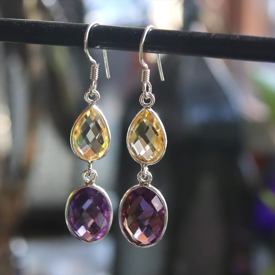 シトリン×アメシストピアス Jaipur ジャイプールジュエリー silver925