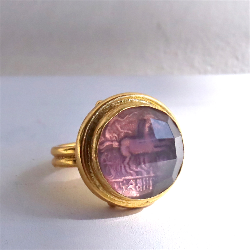 ハイドロアメシストとガラスのコインリング 馬車に乗る人 コイン 古代ローマ帝国