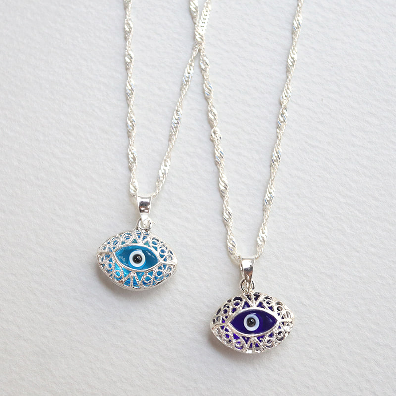 ナザルボンジュウ ガラス&シルバー ネックレス Nazar Boncuk, Evel Eye glass&silver necklace, made in Turkey