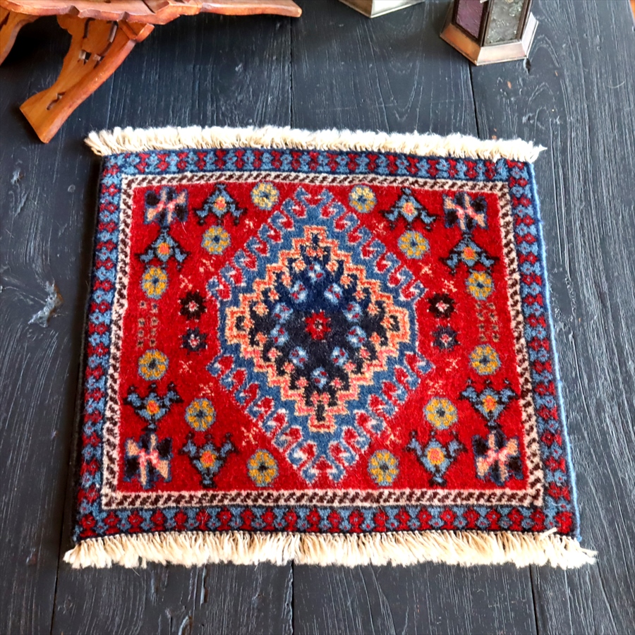 ヤラメ 手織りラグ ミニサイズ /トライバルラグ40×43cm