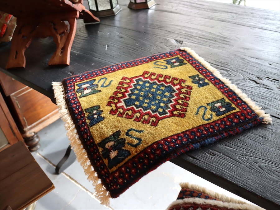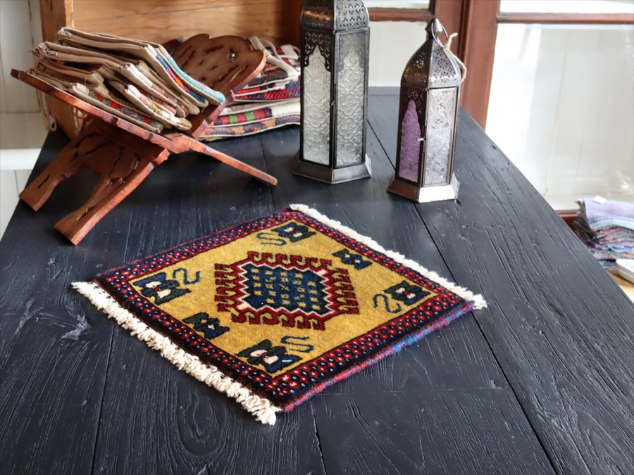 ヤラメ 手織りラグ ミニサイズ /トライバルラグ31×33cm