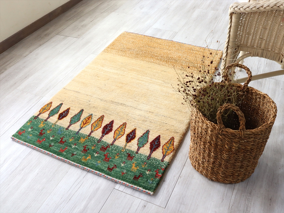 ギャッベ/Amalehアマレ ソファ前120×77cm /アクセントラグ ナチュラルアイボリー 自然風景 動物と植物