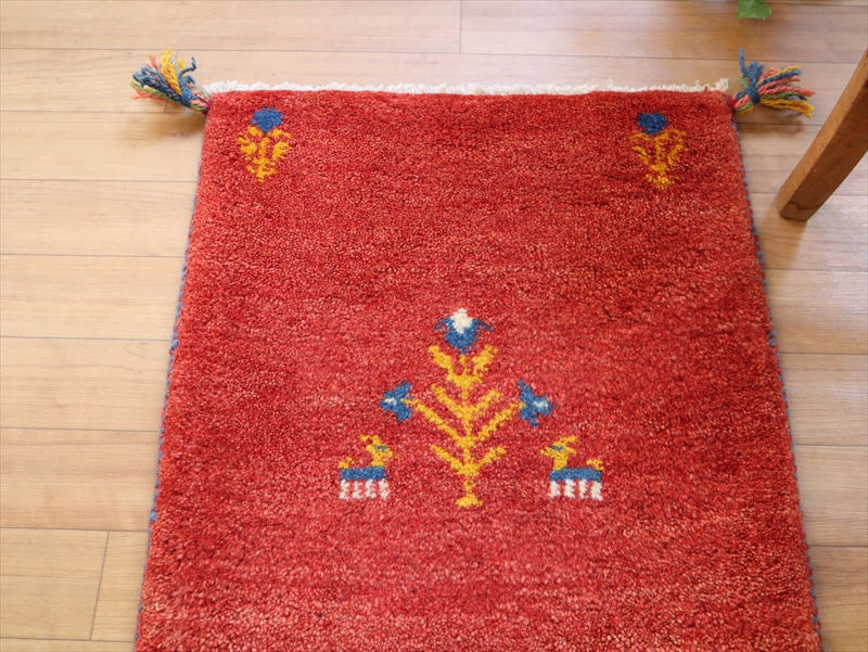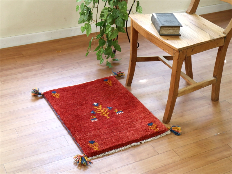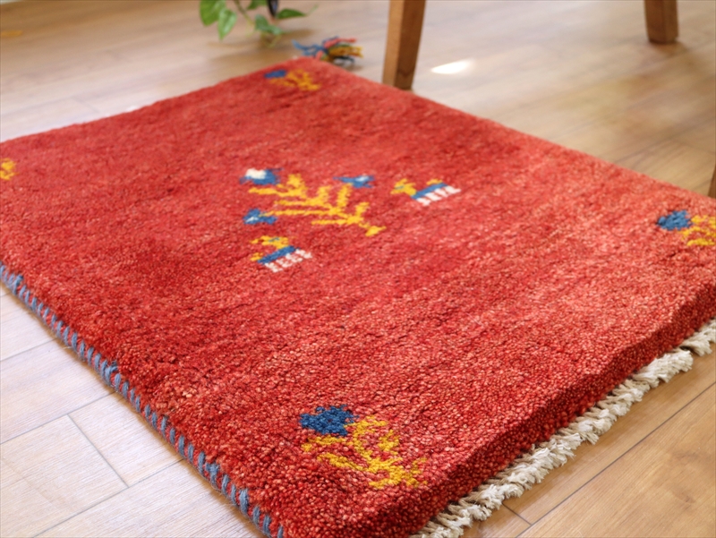 ギャッベ イラン産 手織り 58x45cm ふかふか レッド