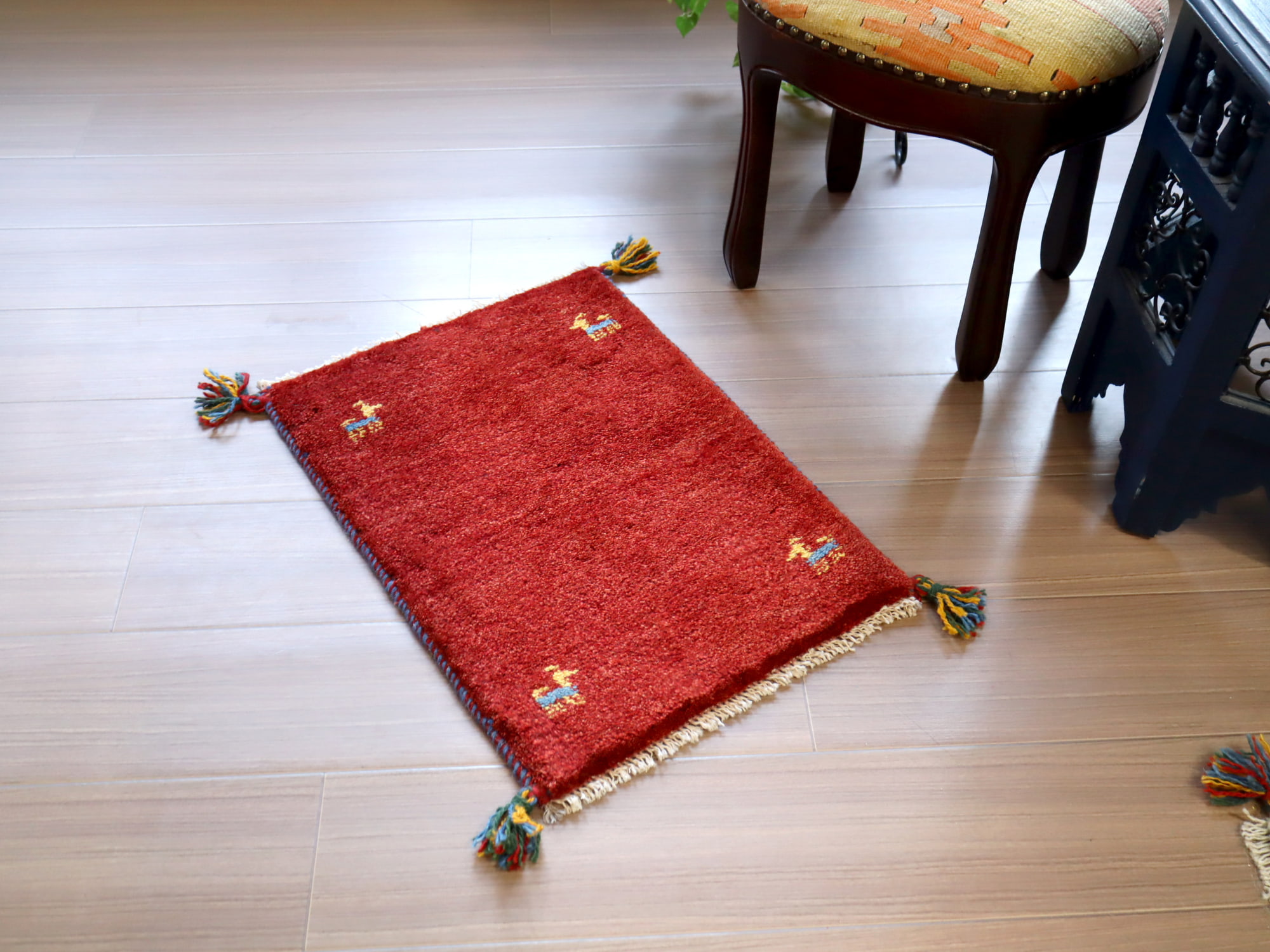 ギャッベ 手織り イラン産 56x40cm レッド 赤 シンプル 無地