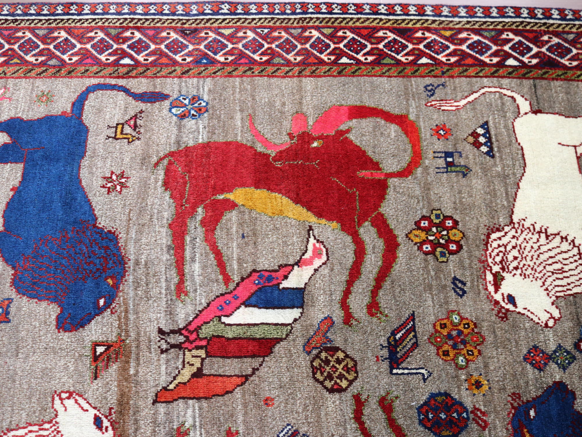 保管状態がとてもよく、目立つダメージや修理あとなどはありません。細かく目の詰まった織りで、パイルを含めたラグの厚みは1cm前後。