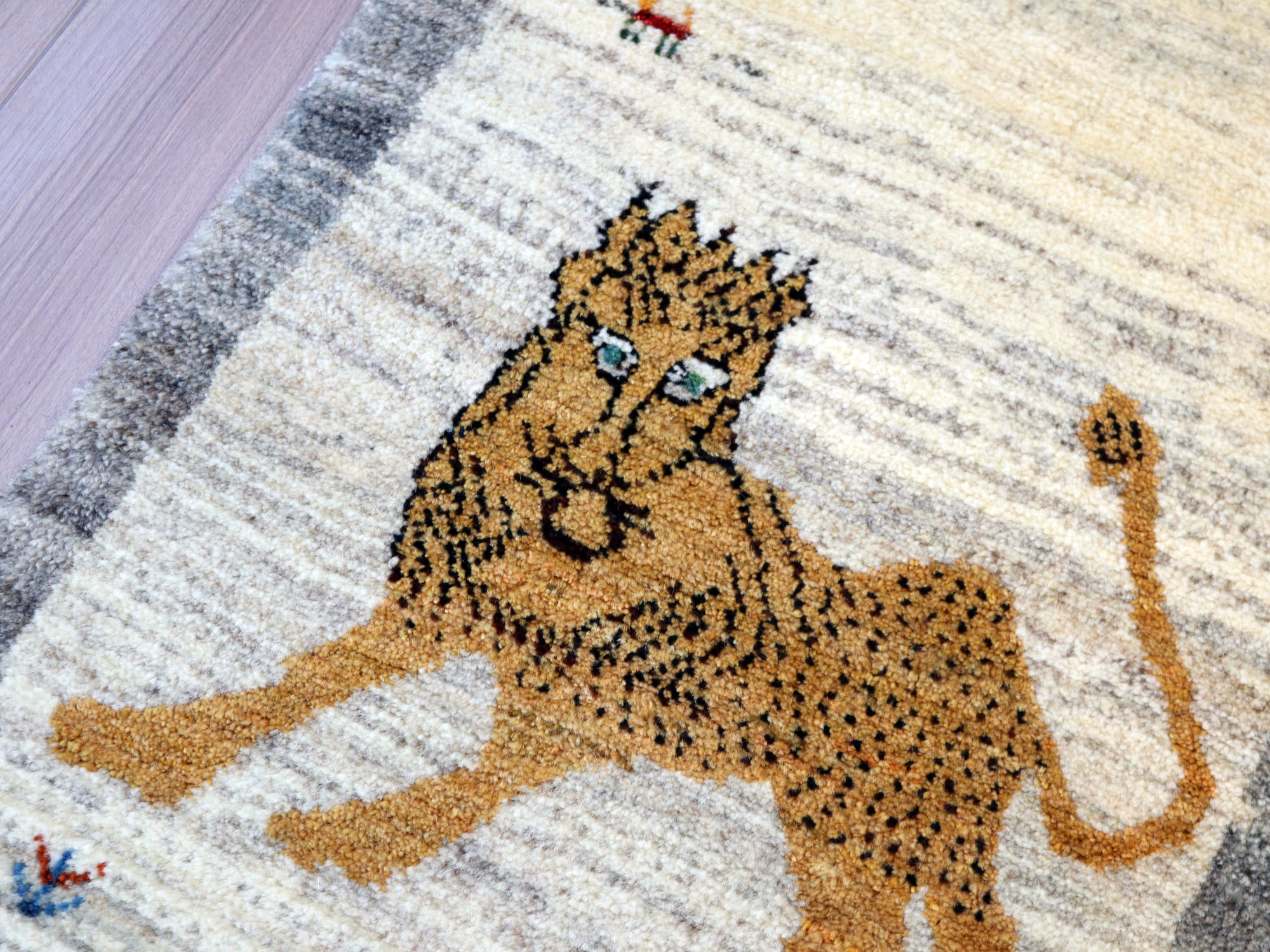 ライオンギャッベ 玄関マットサイズ87×60cmライオンと動物と生命の木
