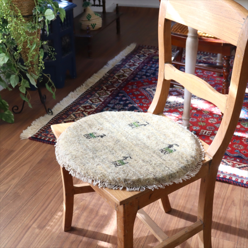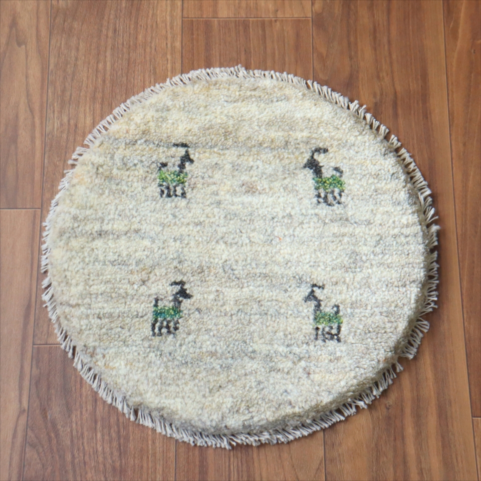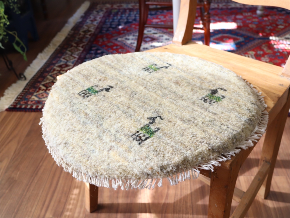 天然の羊毛の色をそのままいかしたアイボリーに、動物(ヤギ)のモチーフを織り込んだギャッベ。自然な色の濃淡が出ていて、一枚一枚に個性があります。