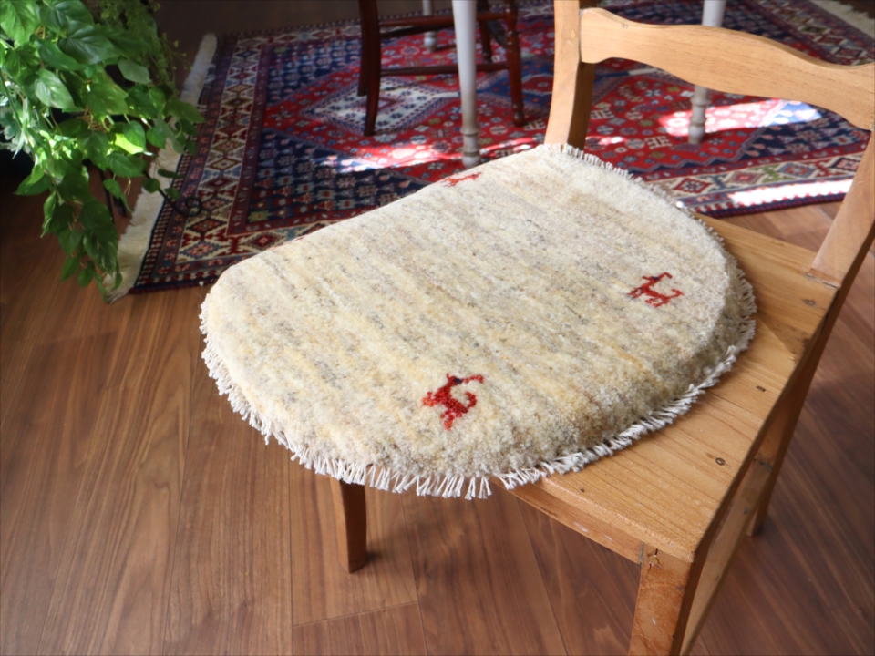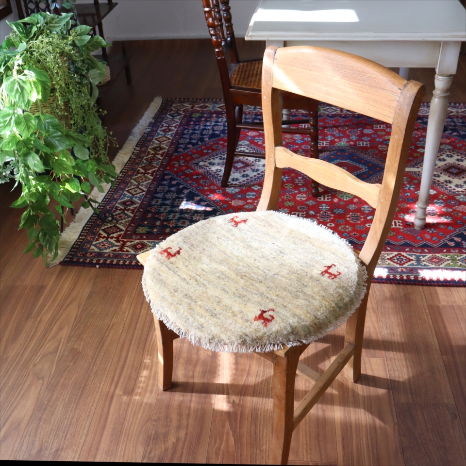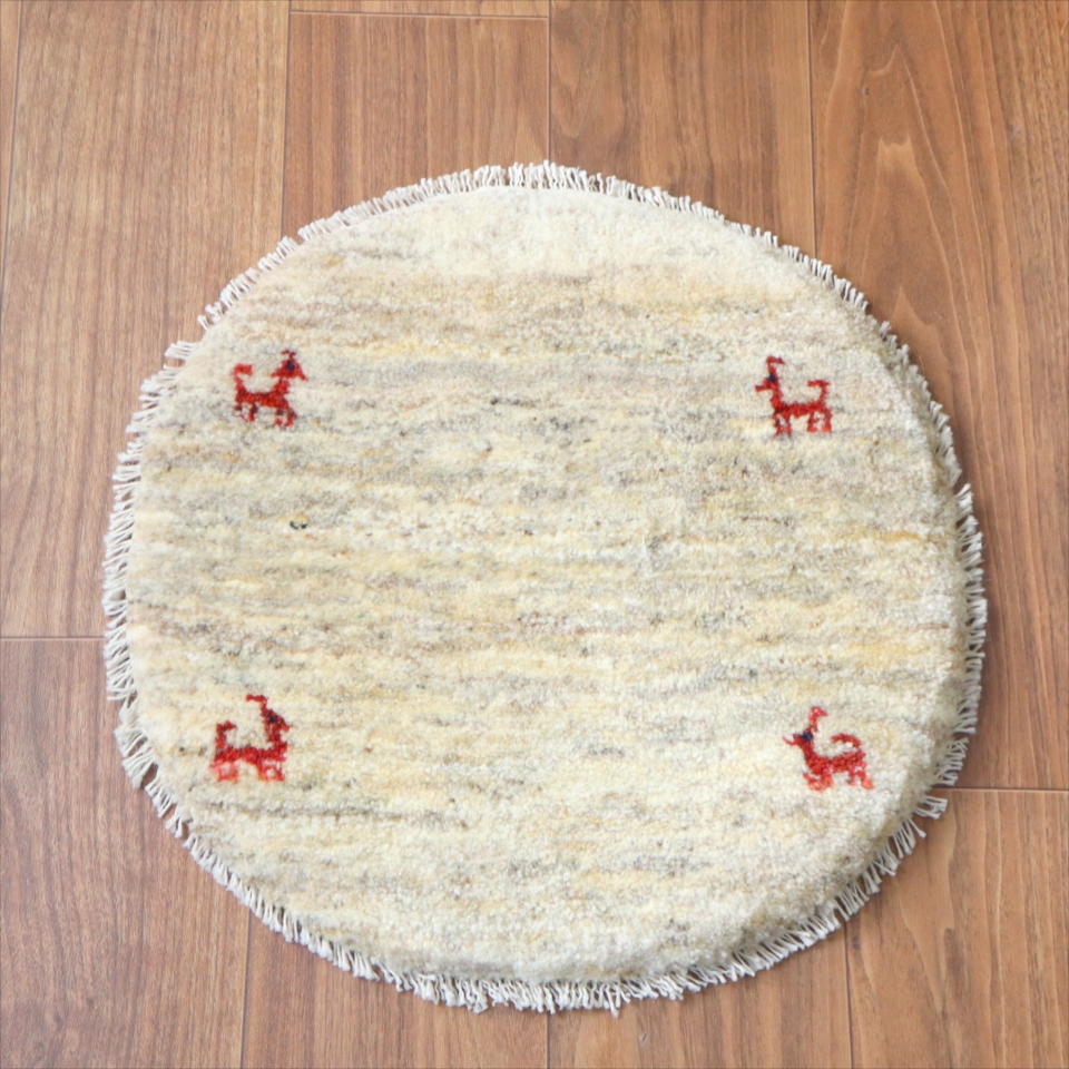 ギャッベ 円形座布団サイズ φ45cm ナチュラルアイボリー ベージュ