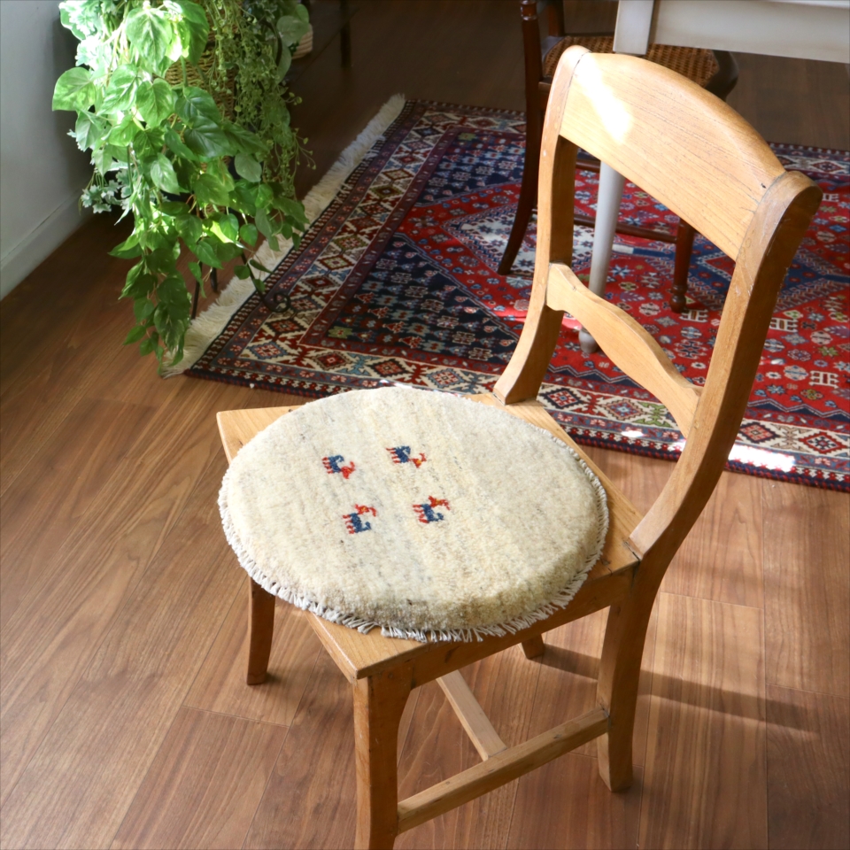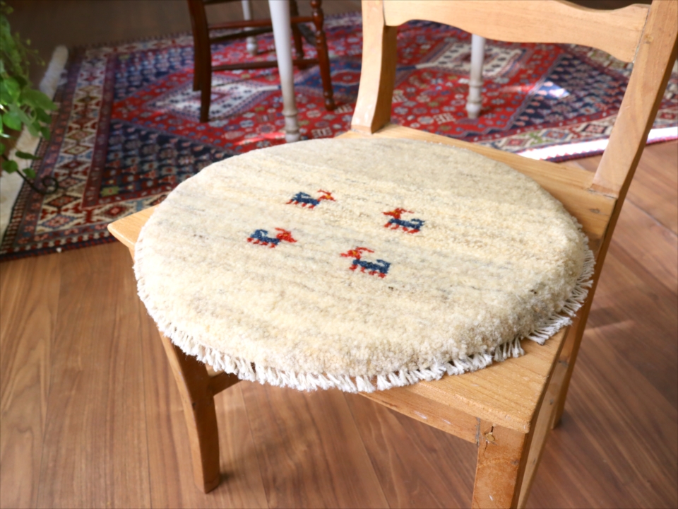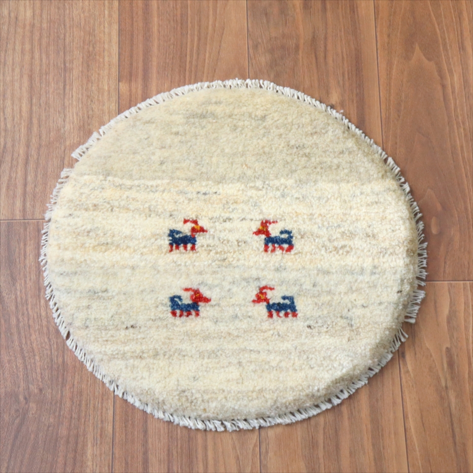 ギャッベ 円形座布団サイズ 39cm ナチュラルアイボリー ベージュ