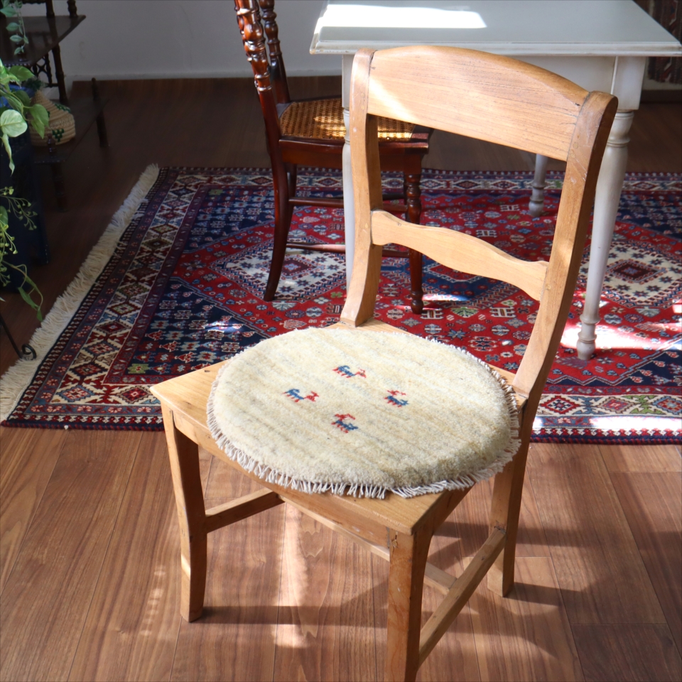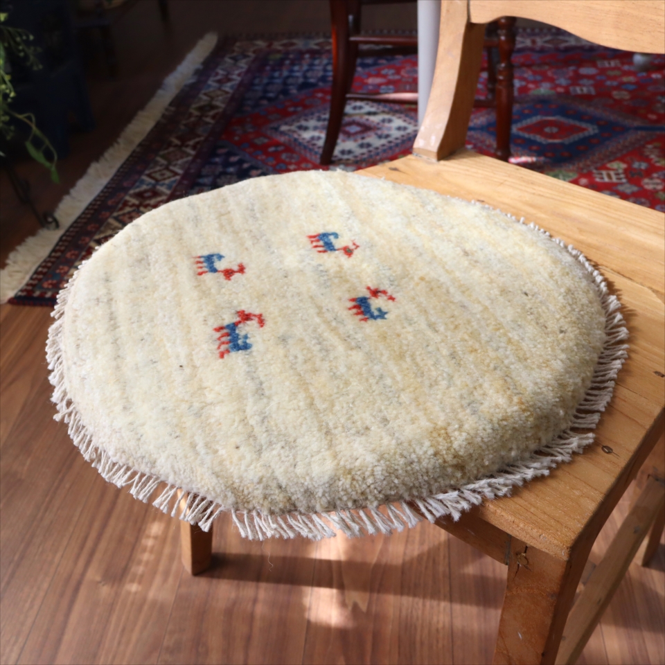ギャッベ 円形座布団サイズ φ40cm ナチュラルアイボリー ベージュ
