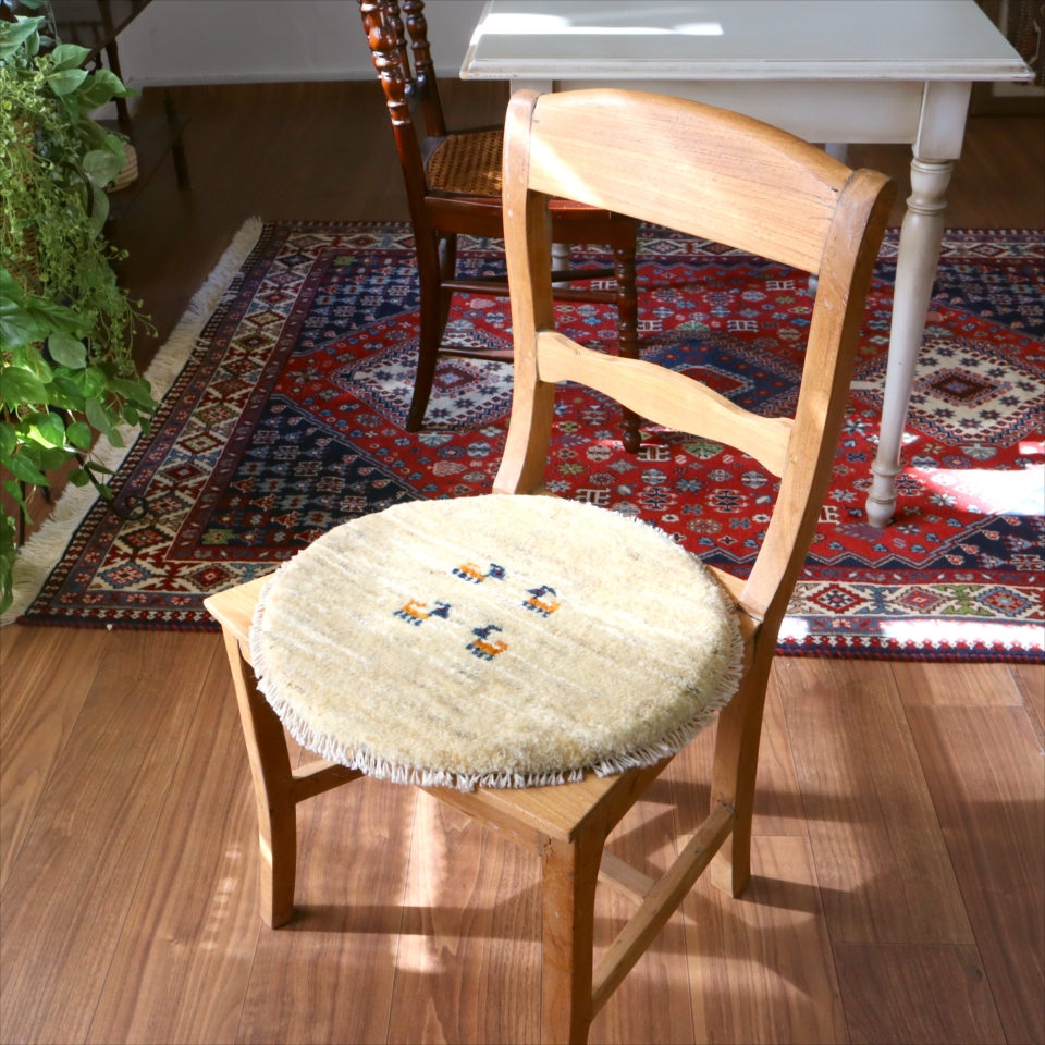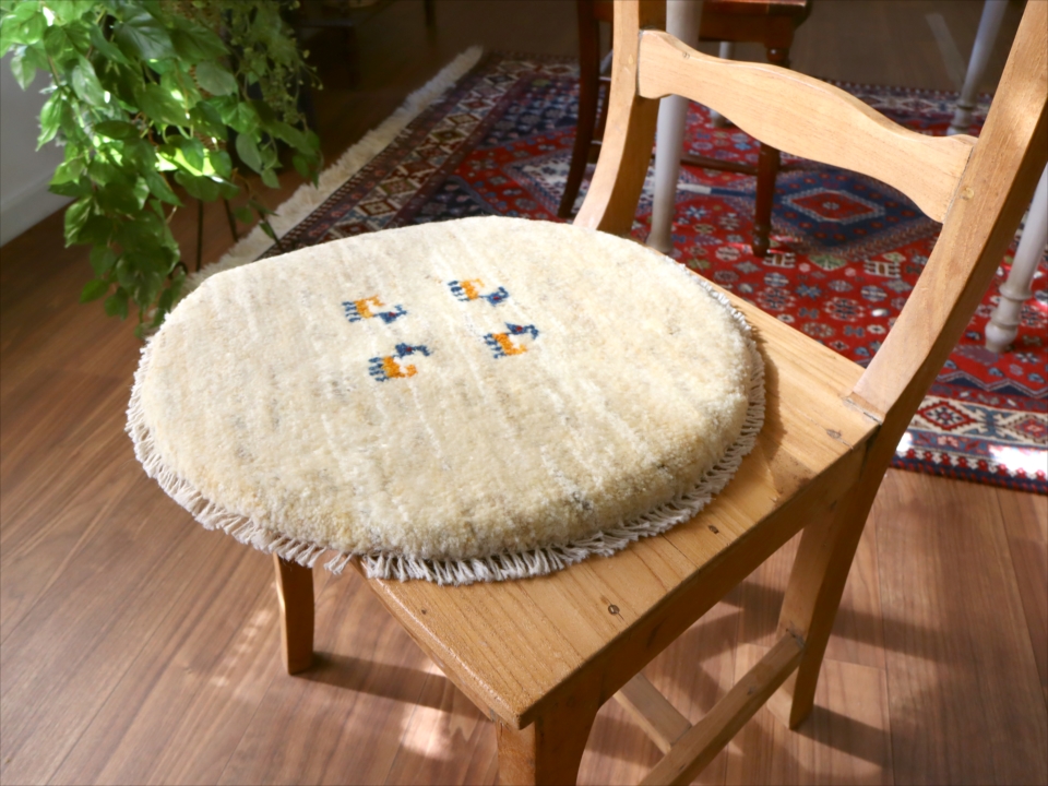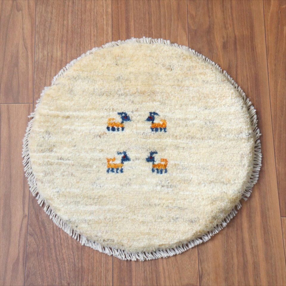 ギャッベ 円形座布団サイズ φ41cm ナチュラルアイボリー ベージュ