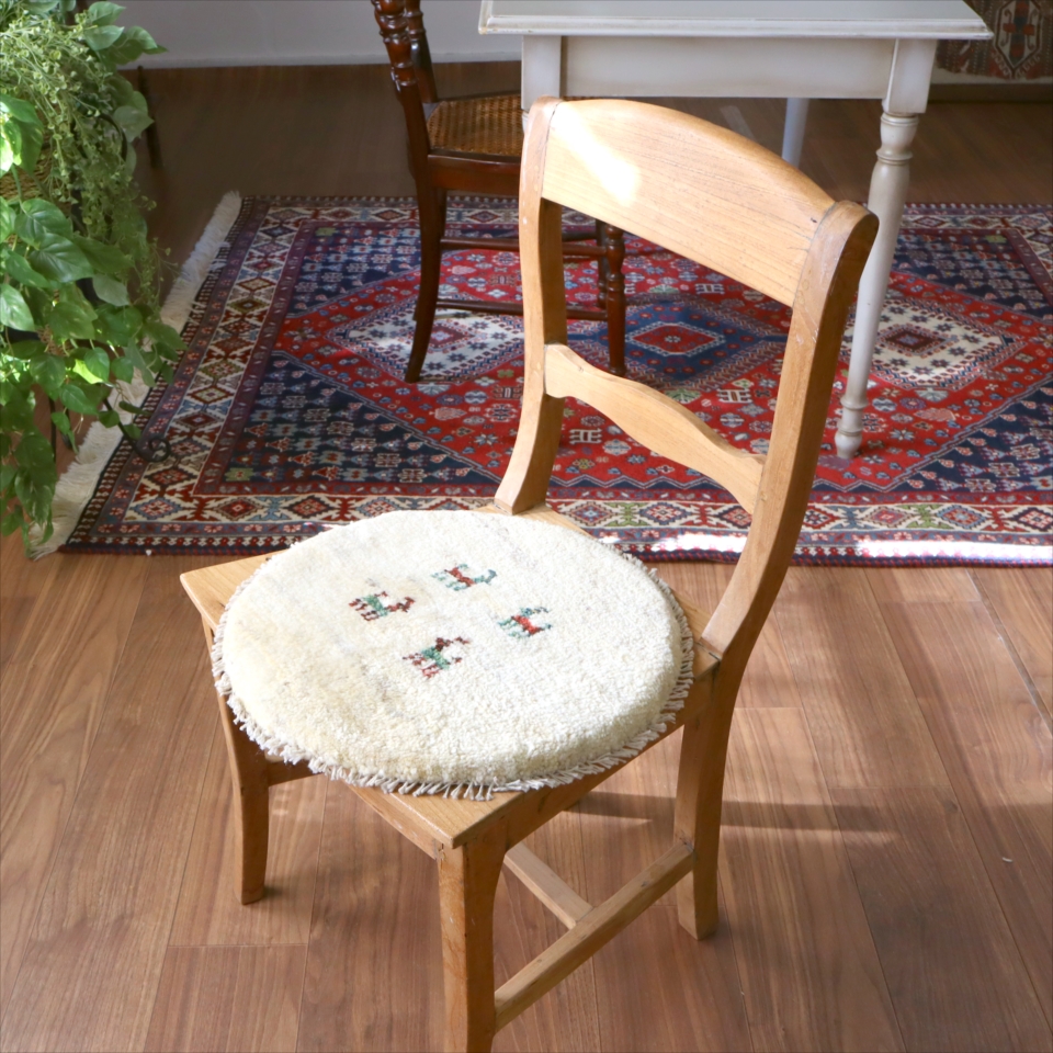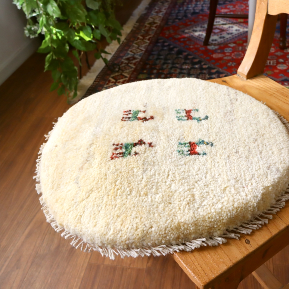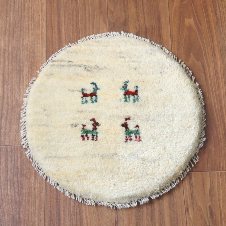 ギャッベ 円形座布団サイズ φ40cm ナチュラルアイボリー ベージュ