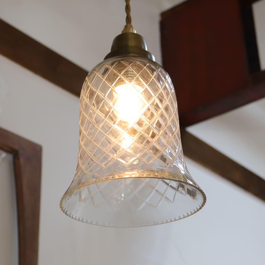 Key:ガラスシェード ガラスランプ レトロ アンティーク ヴィンテージ 手作り インド コロニアル様式 コロニアルスタイル 植民地様式 ペンダントシェード アンティークガラス シェード 切子 カットガラス