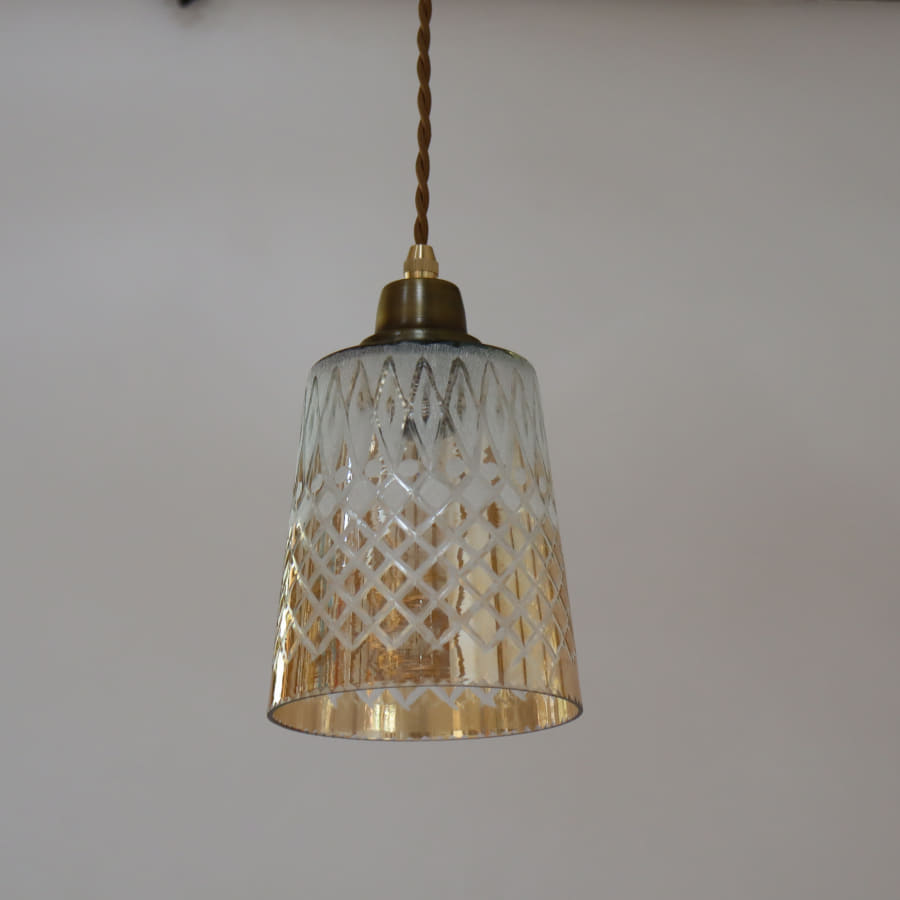 Key:ガラスシェード ガラスランプ レトロ アンティーク ヴィンテージ 手作り インド コロニアル様式 コロニアルスタイル 植民地様式 ペンダントシェード アンティークガラス シェード 切子 カットガラス ラスター ゴールド