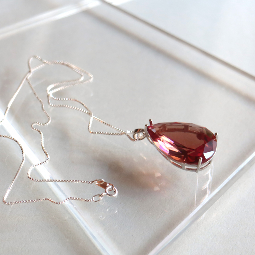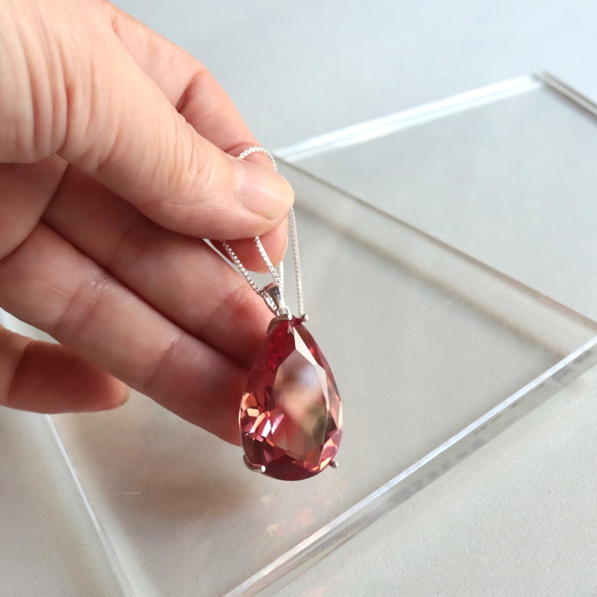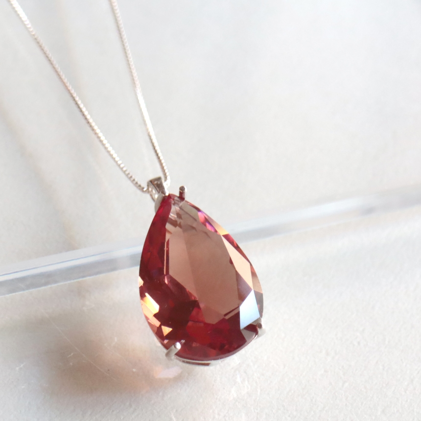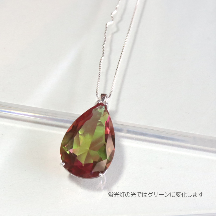 大粒のきらめくコニャックカラーが美しいズルタナイト。光源の違いで様々な色に変化するのが特徴です。自然光の下では淡いラズベリーピンクの色調が現れますが、蛍光灯の下ではセージグリーンにと多彩なカラーチェンジが楽しめます。