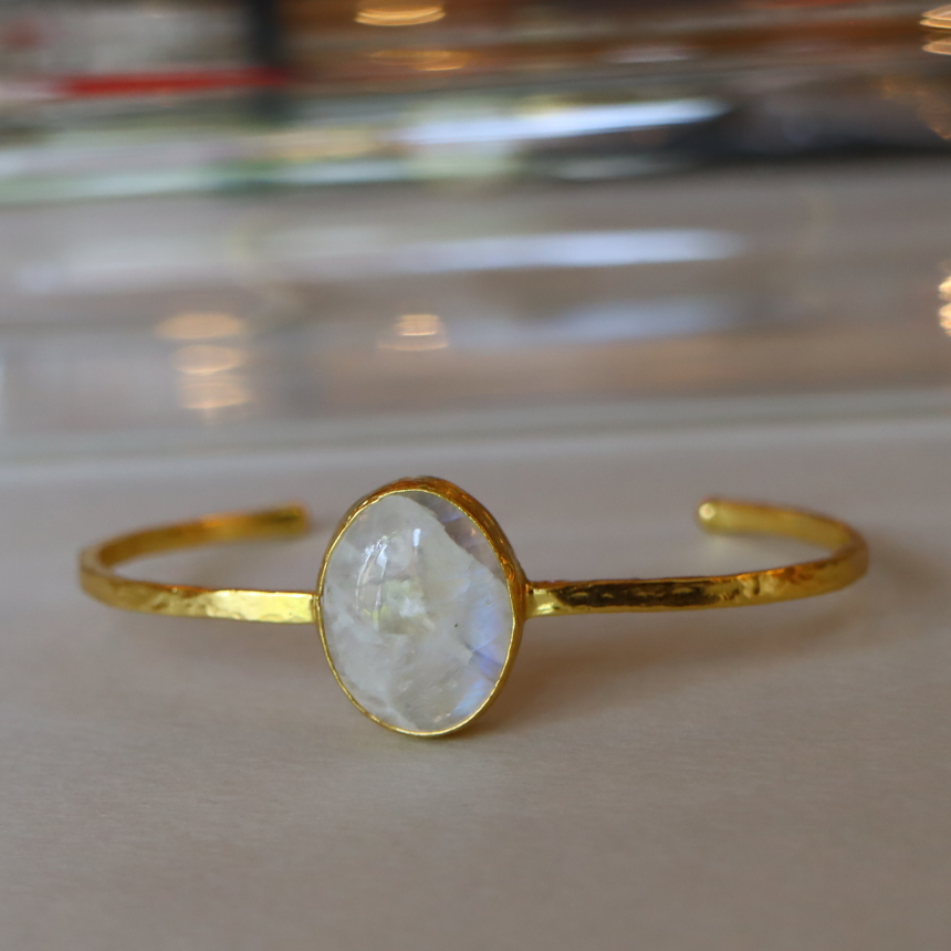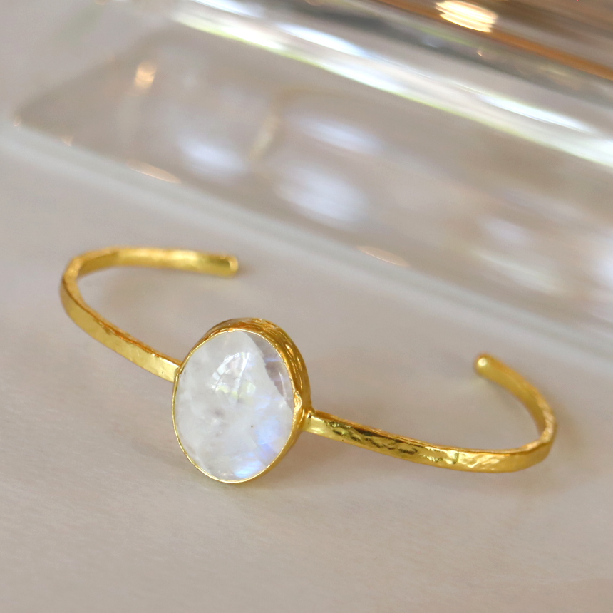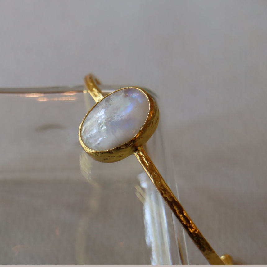 ムーンストーン ビッグストーンバングル 天然石22KGPドロップ