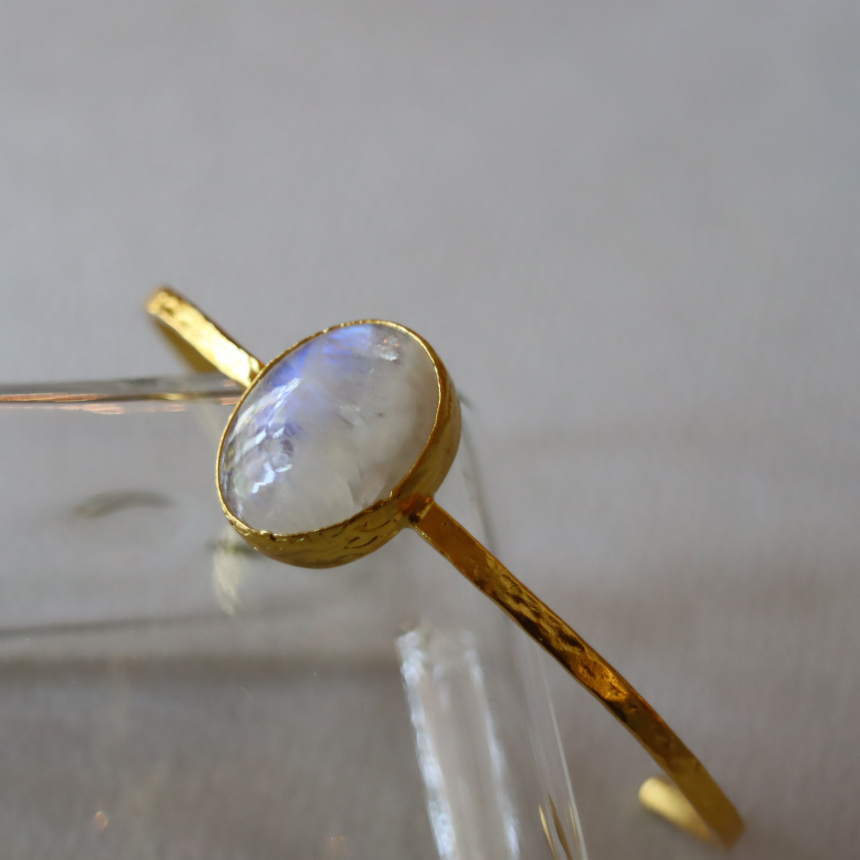 ムーンストーン ビッグストーンバングル 天然石22KGPドロップ