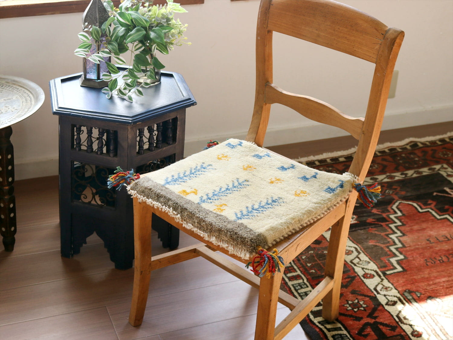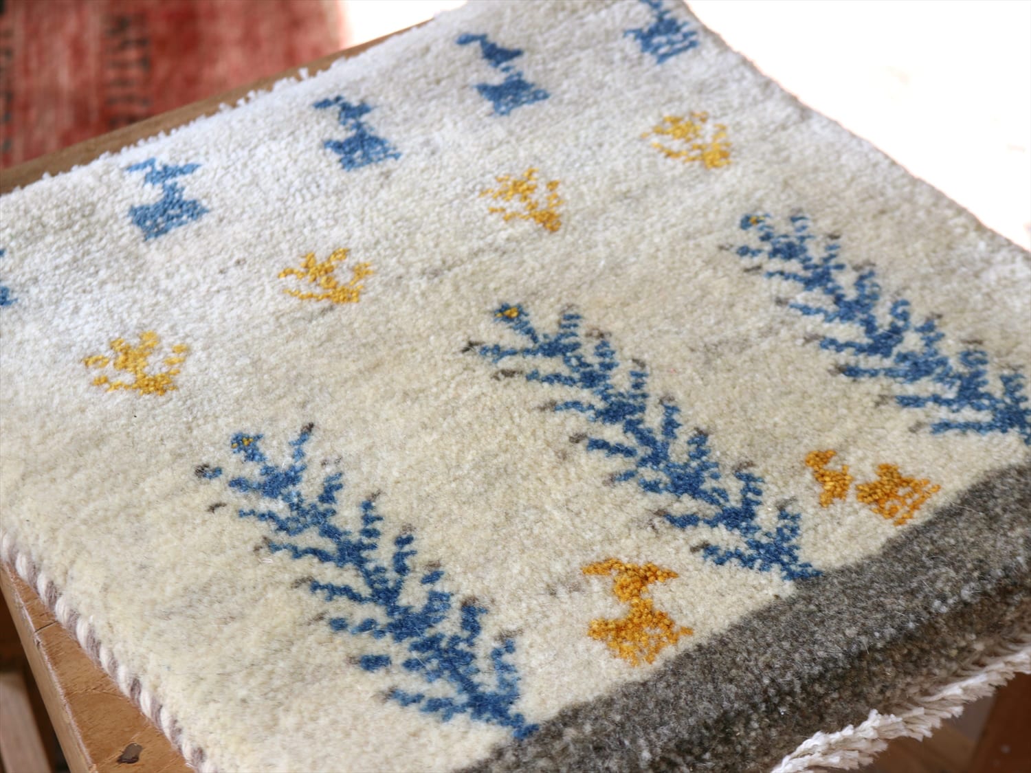 毛足が長くボリュームのある織り。パイル(毛足)を含めた厚みは2.2-*2.3㎝前後です。四隅にポンポンがついた伝統的なスタイルです。動物や植物などが入った素朴なデザインが多く、一番ギャッベらしさを感じられるスタンダードな織り。