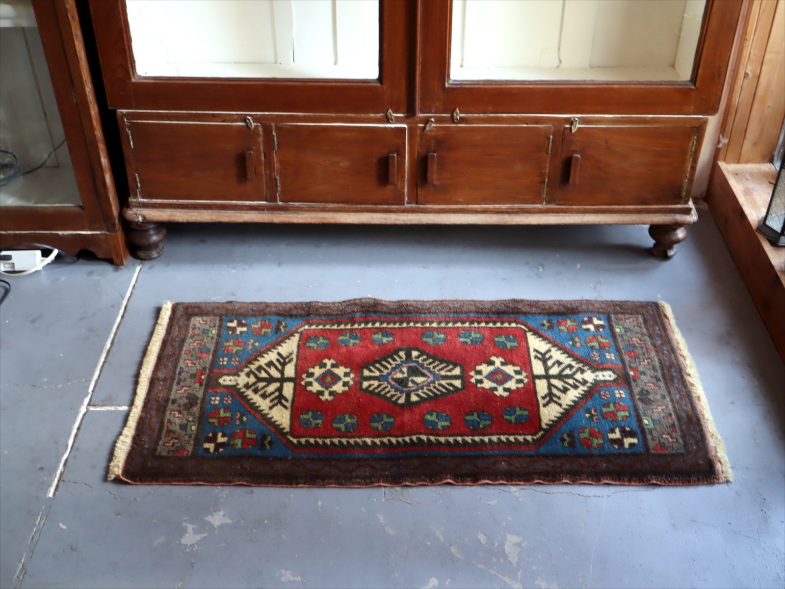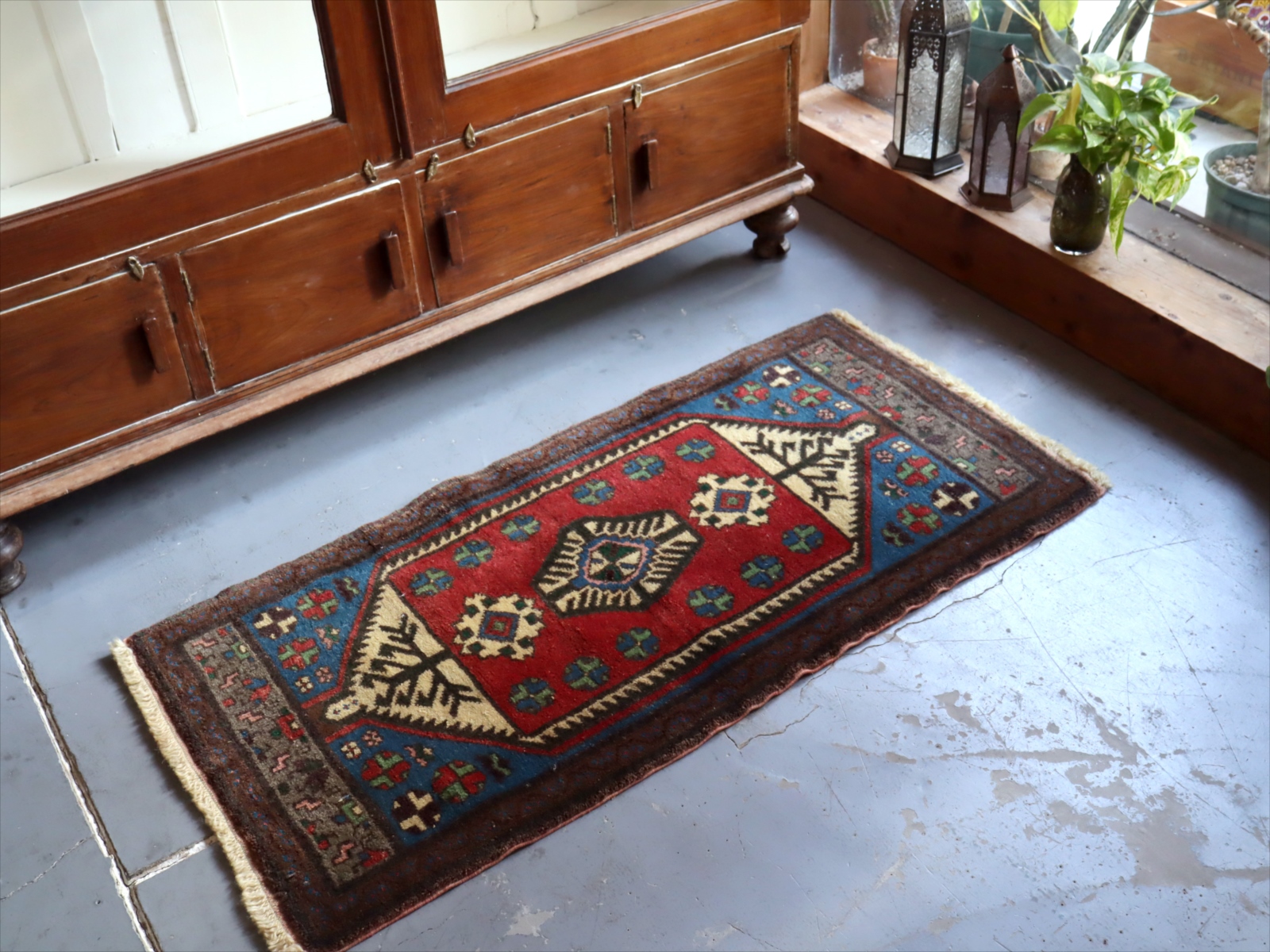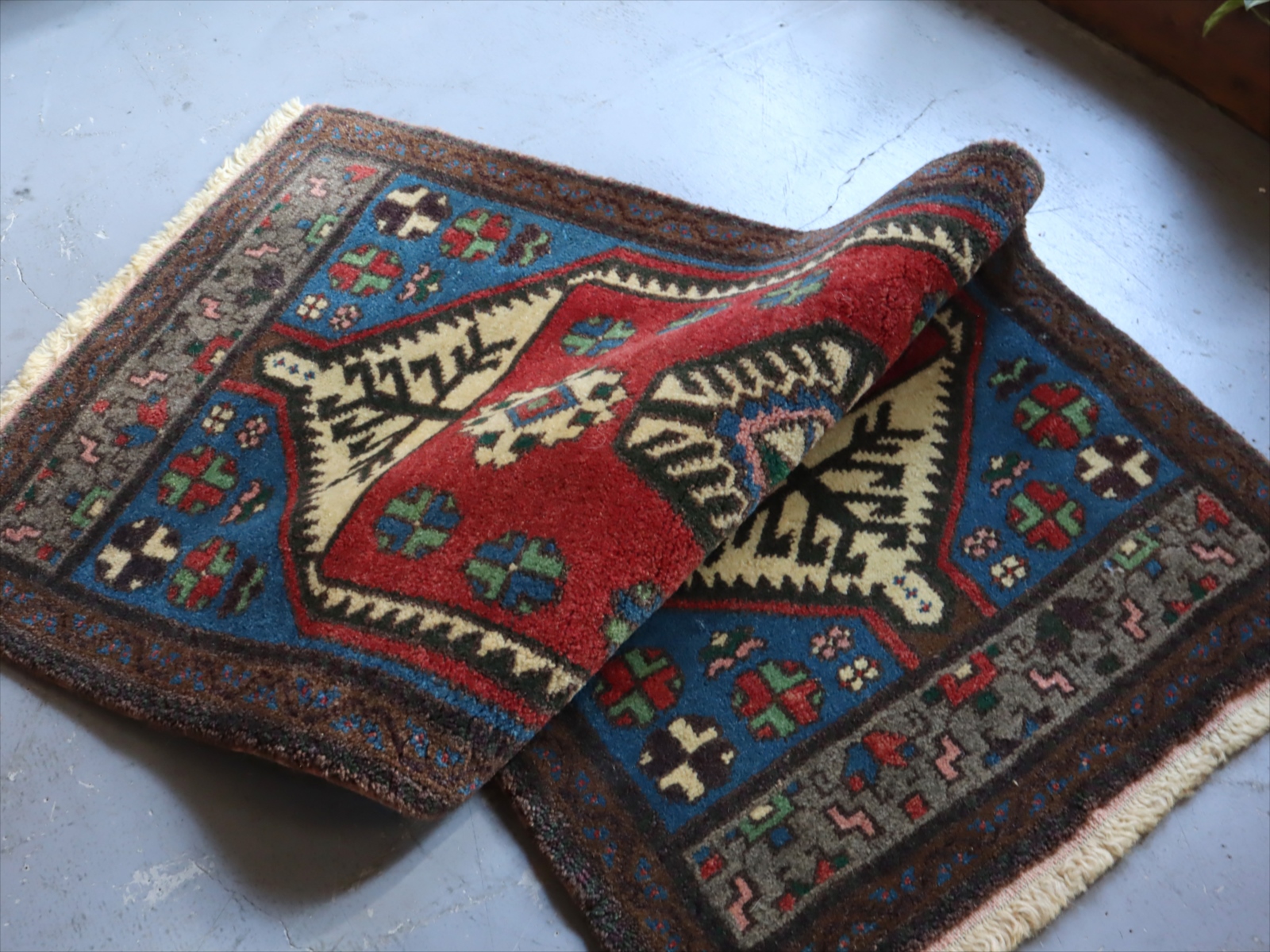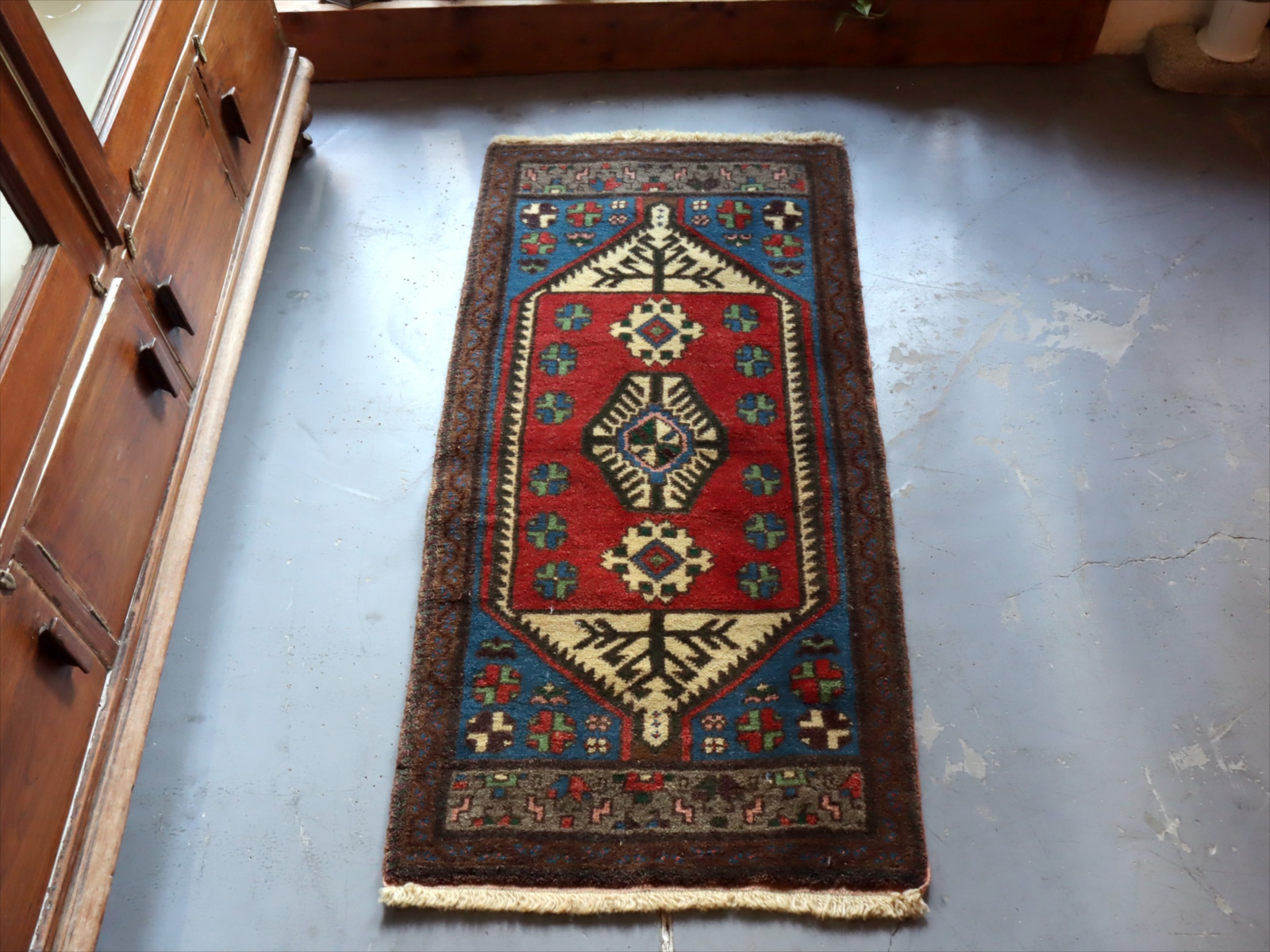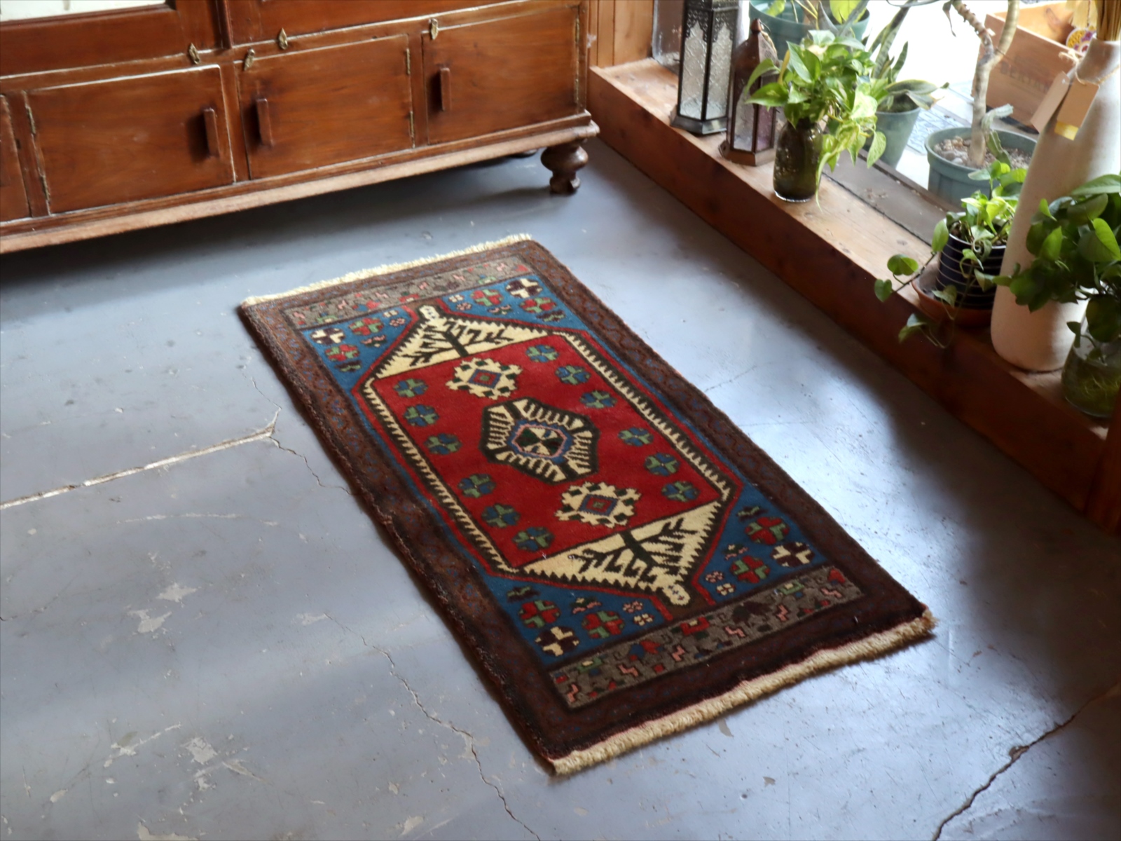 アナトリア地方で、ヤストゥク(枕の意味)と呼ばれる細長いクッションとして使うために織られた袋状のじゅうたん。現状では裏面はとってしまって、一枚のカーペットになっています。