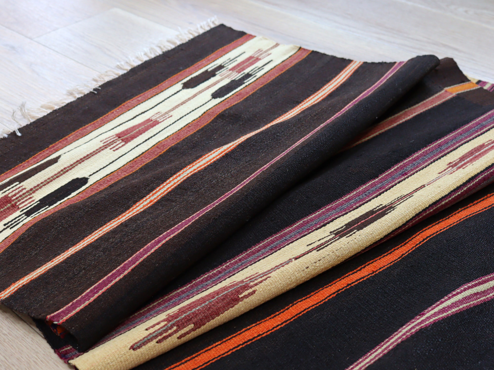 オールドキリム シリフケ ストライプ235×64cm 細かく薄手の織り テント布