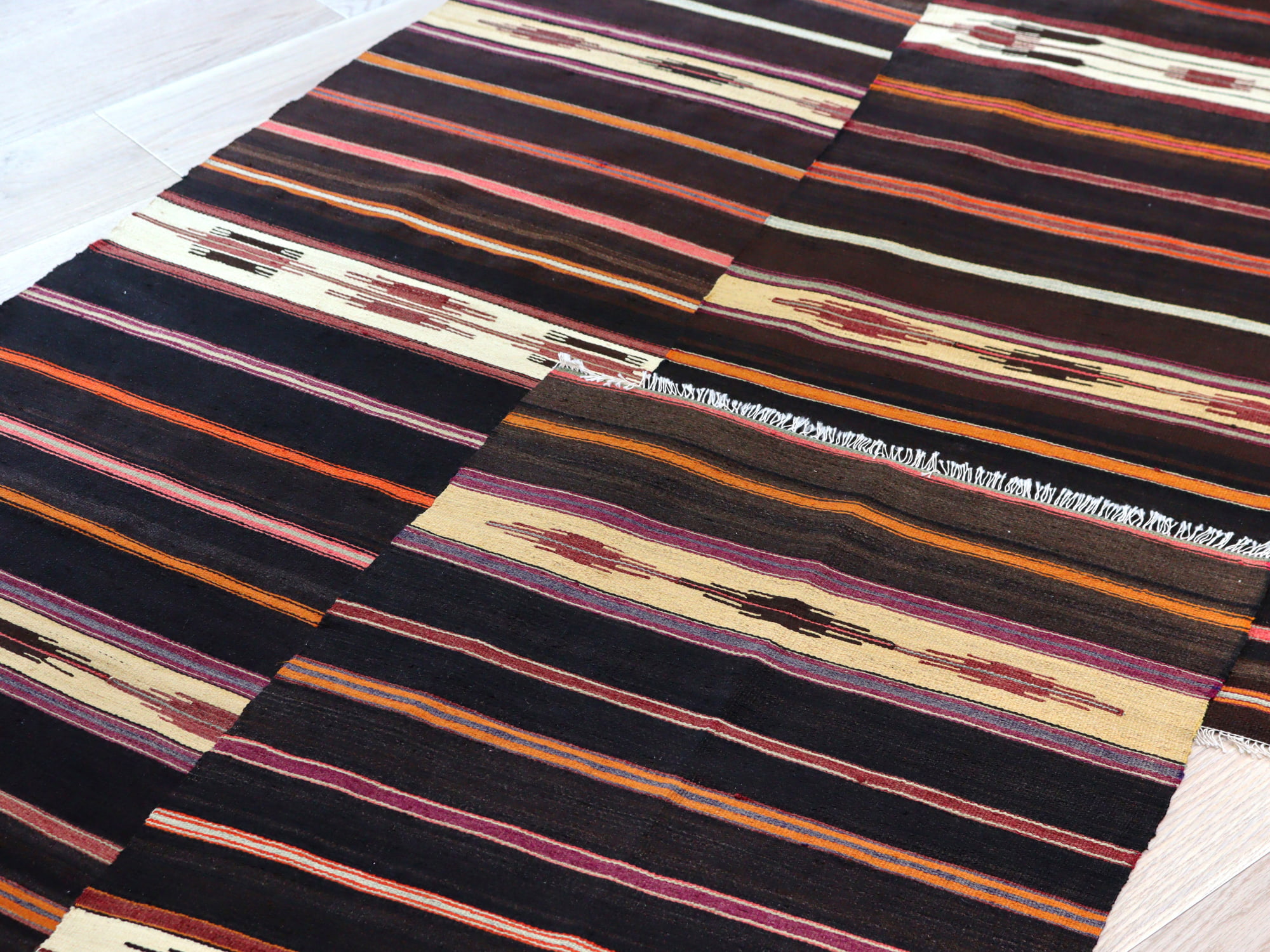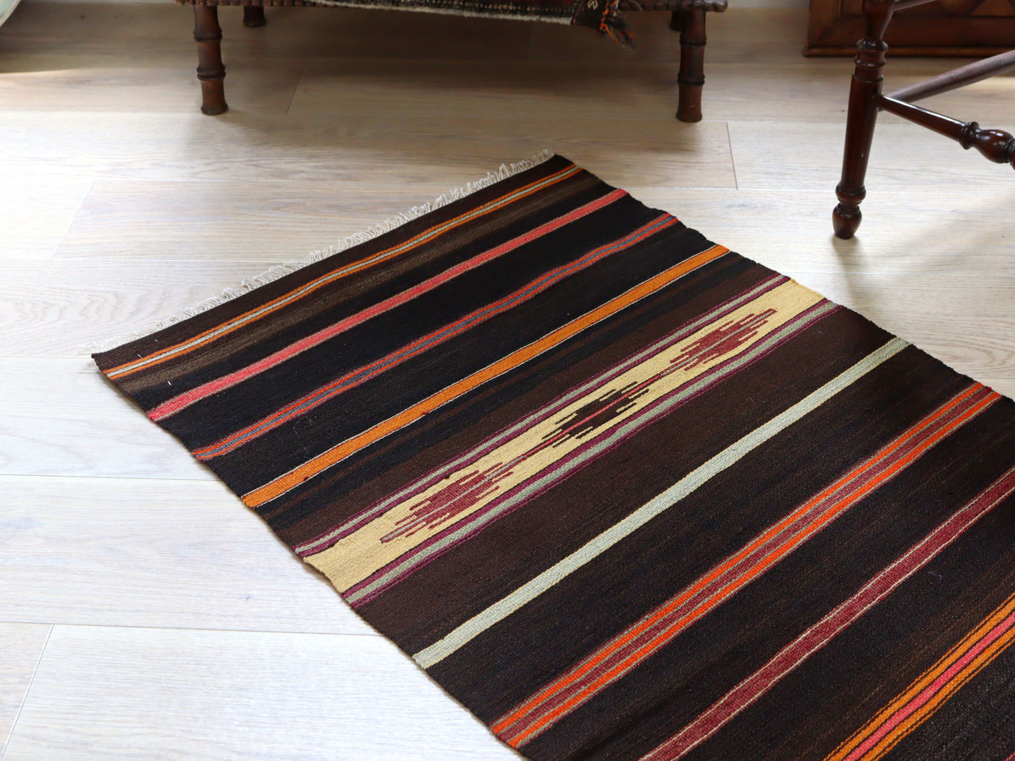 オールドキリム シリフケ ストライプ117×64cm 細かく薄手の織り テント布