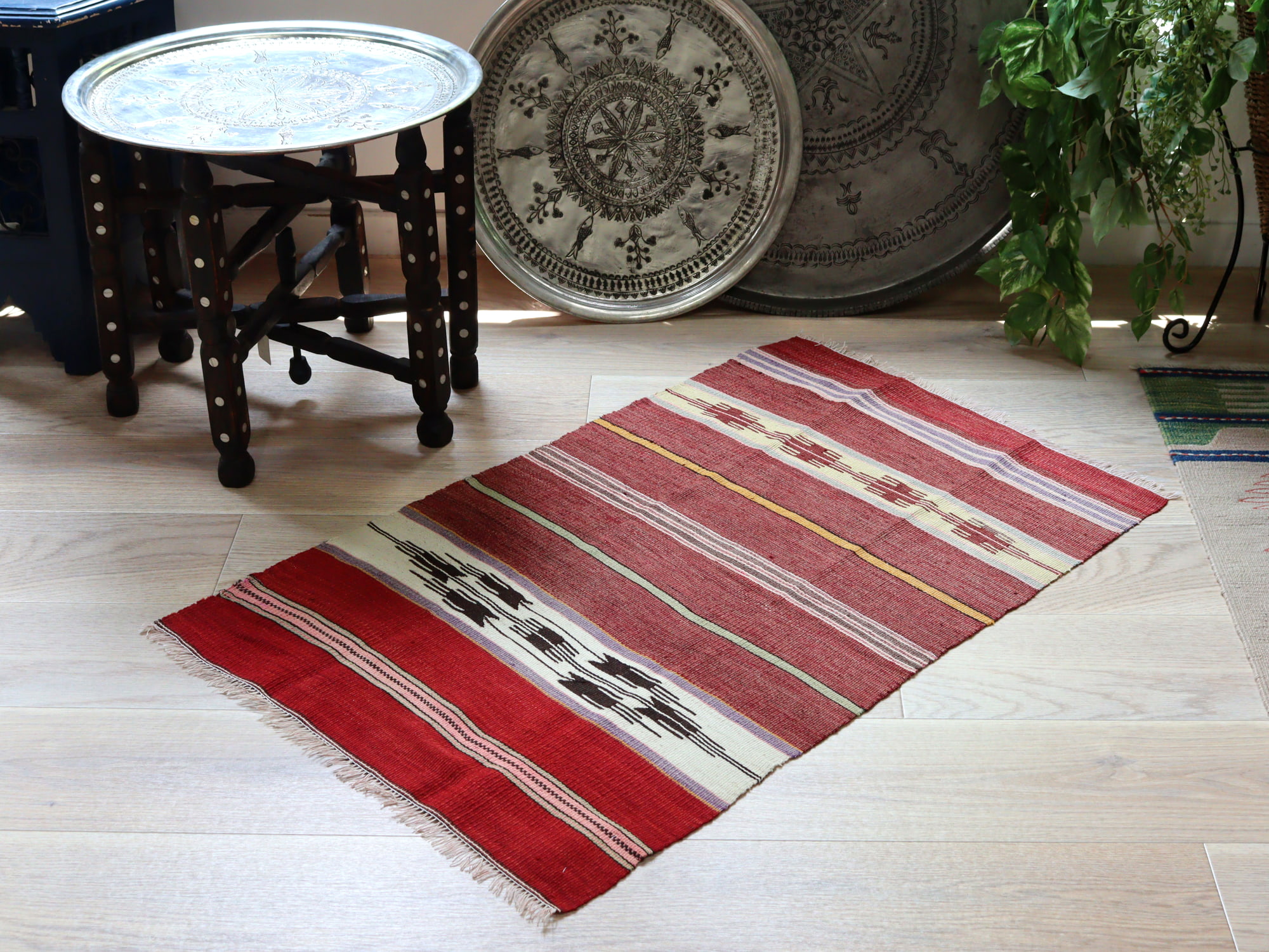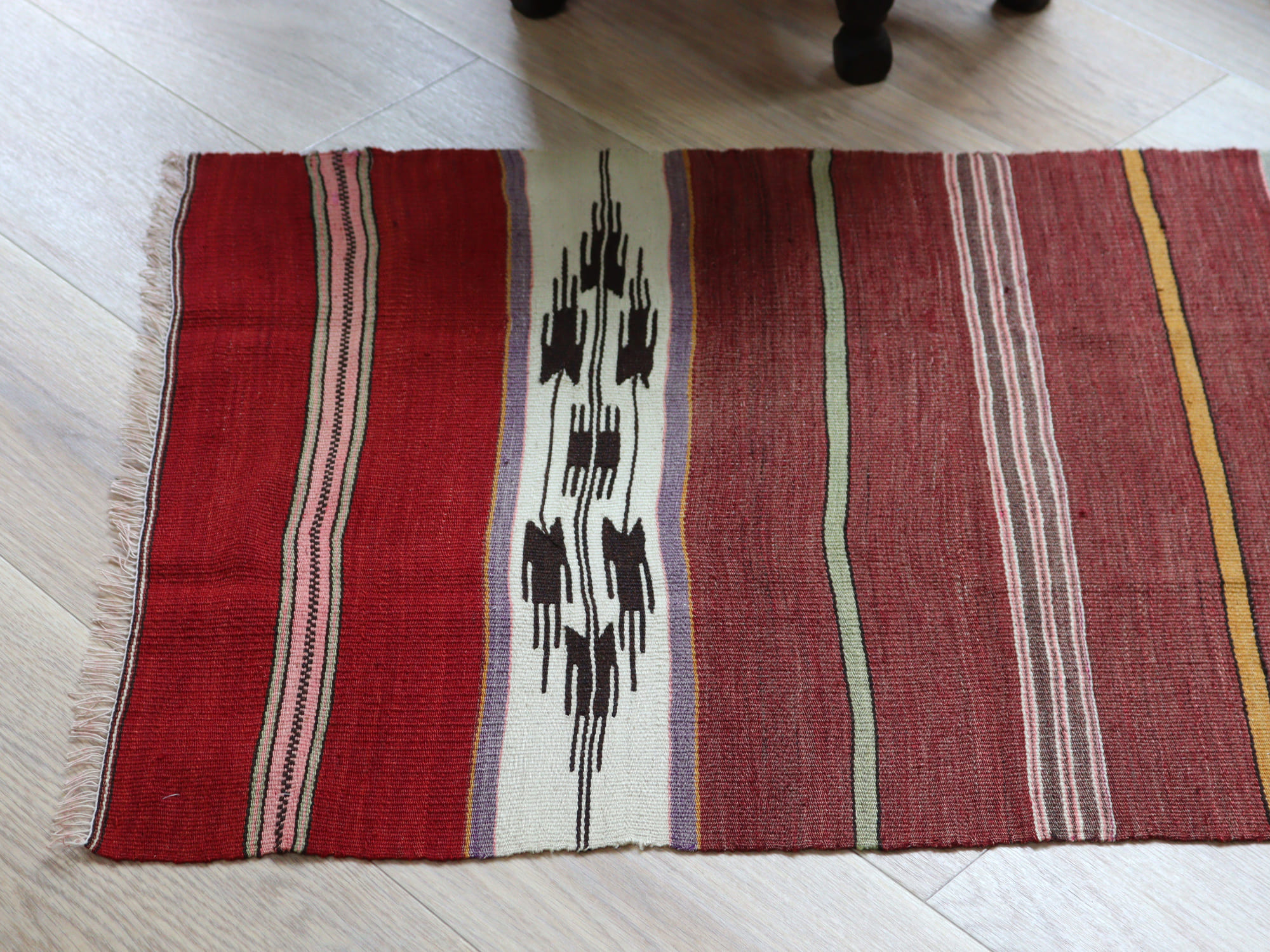 オールドキリム シリフケ ストライプ99×62cm 細かく薄手の織り テント布