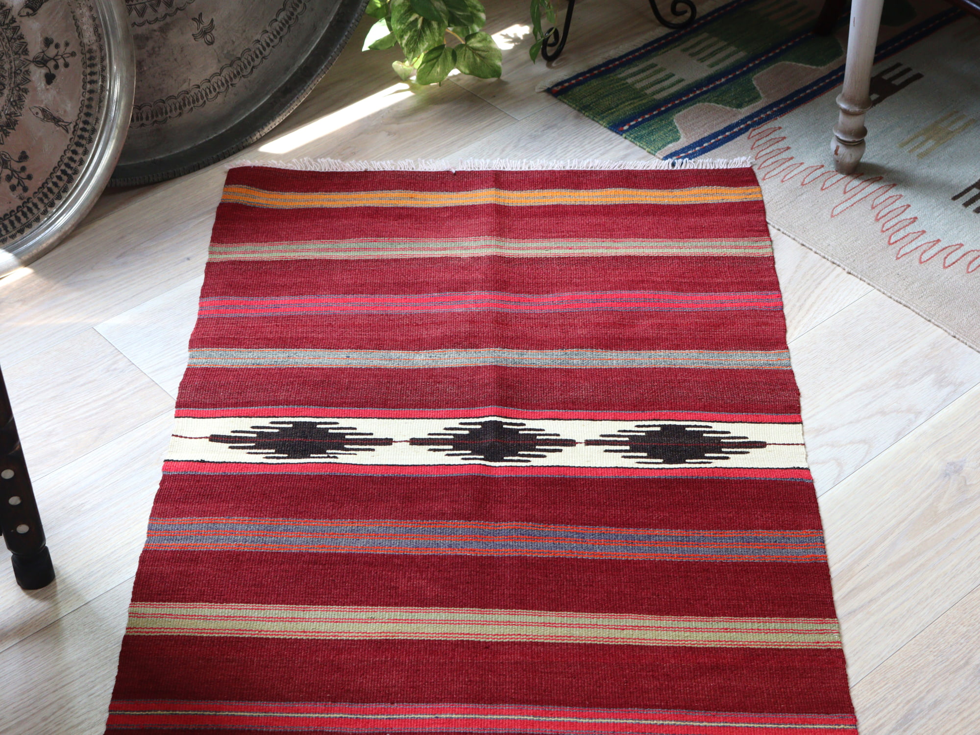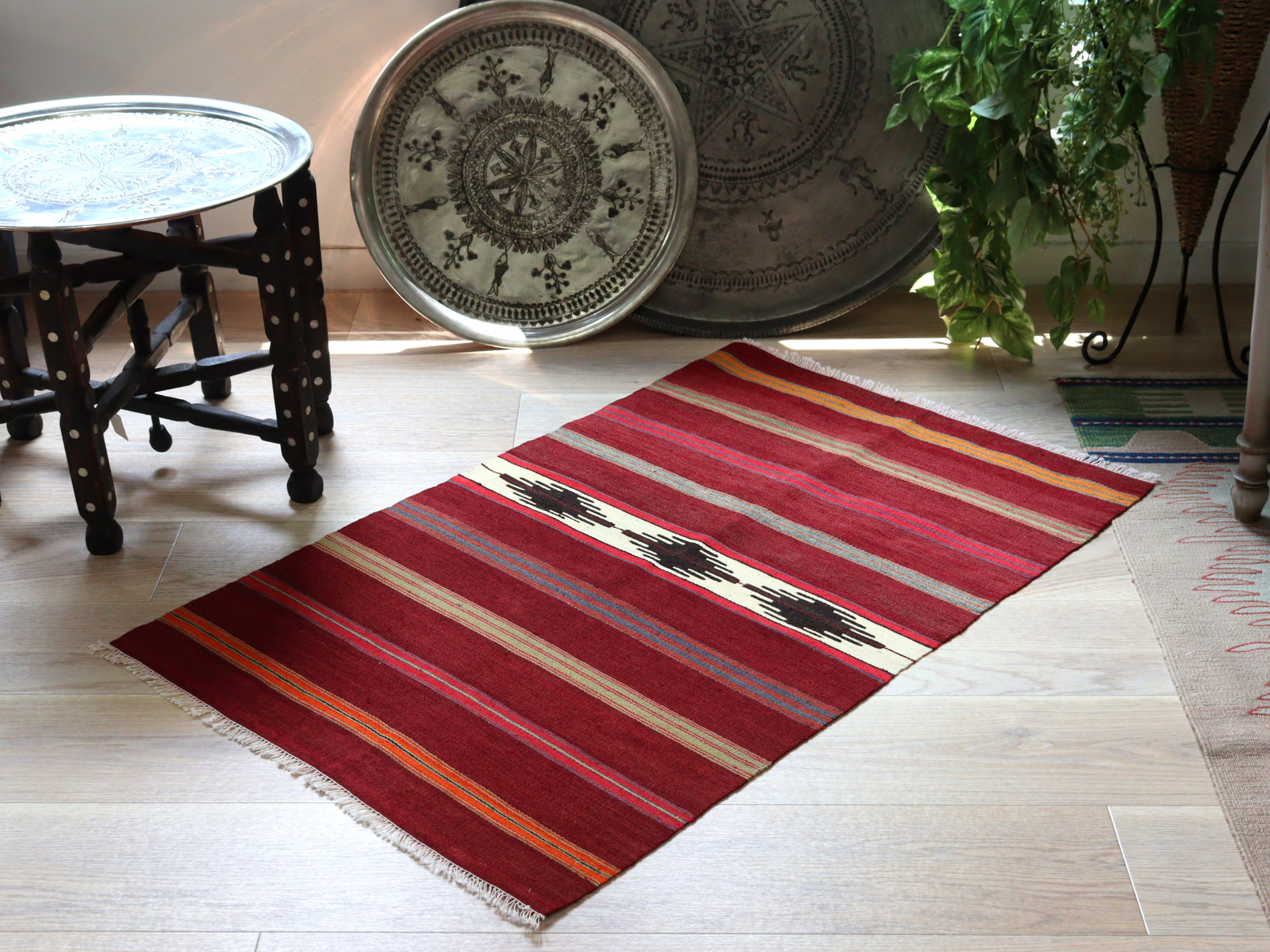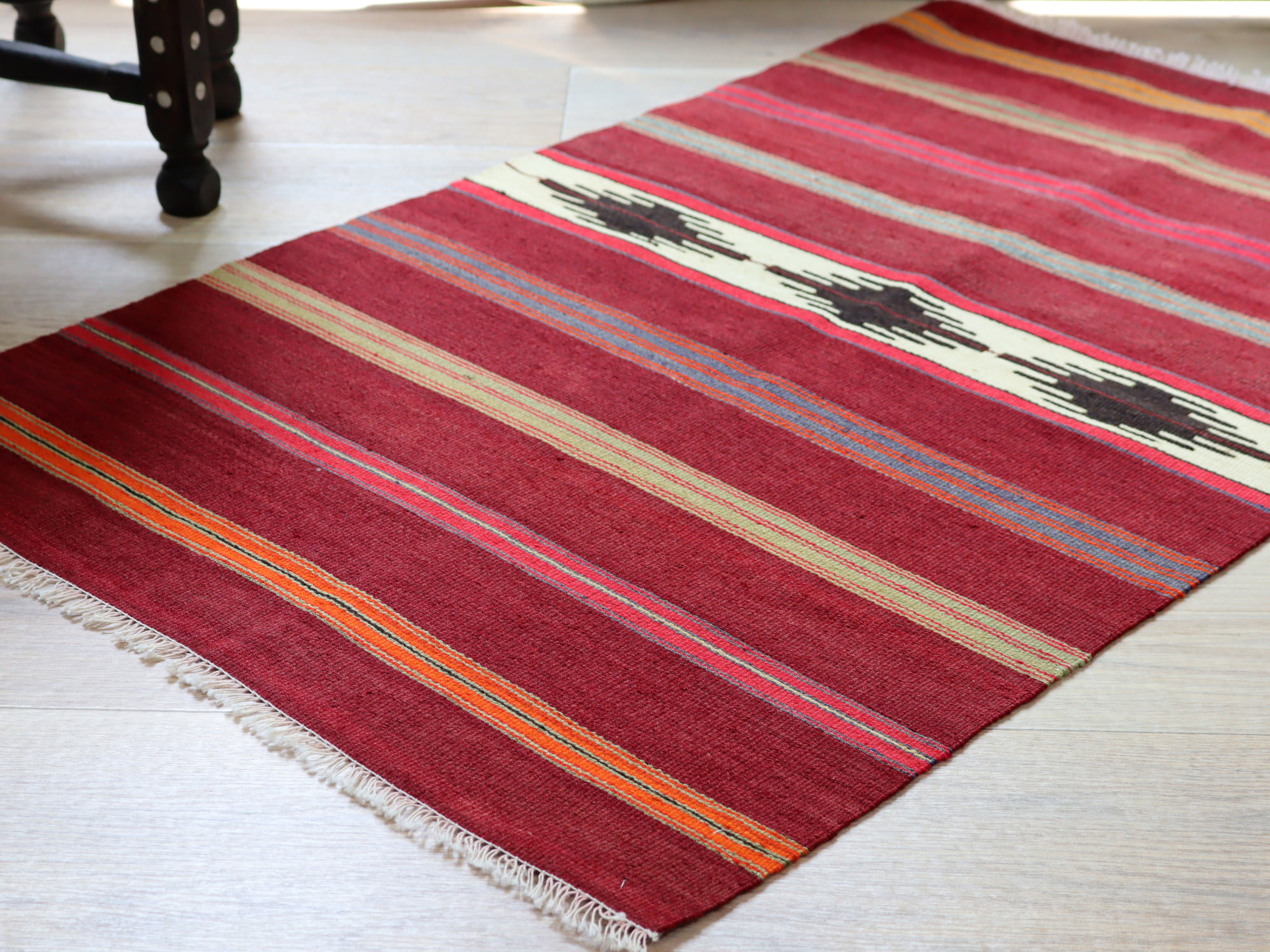 オールドキリム シリフケ ストライプ105×67cm 細かく薄手の織り テント布