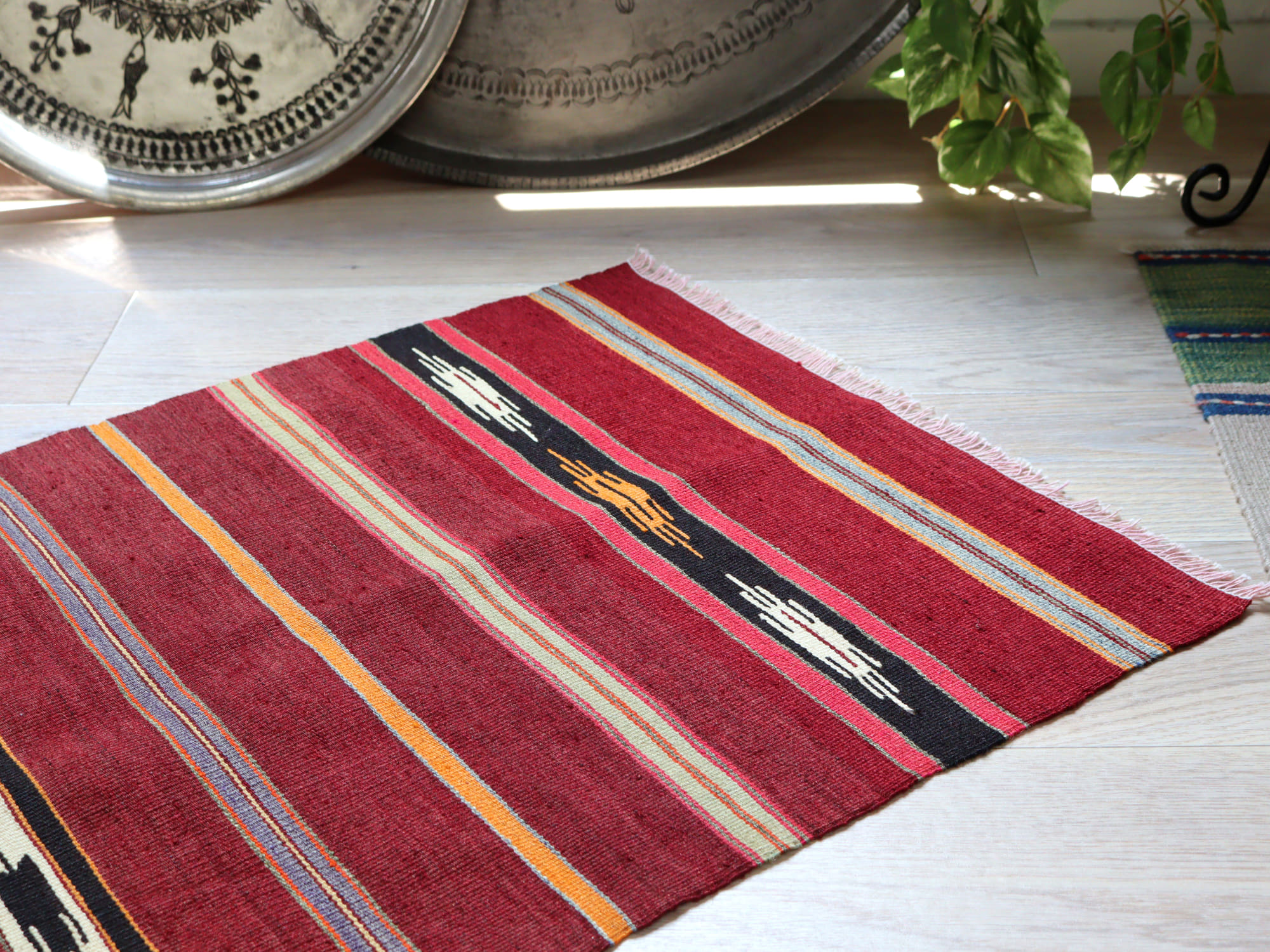 オールドキリム シリフケ ストライプ82×59cm 細かく薄手の織り テント布
