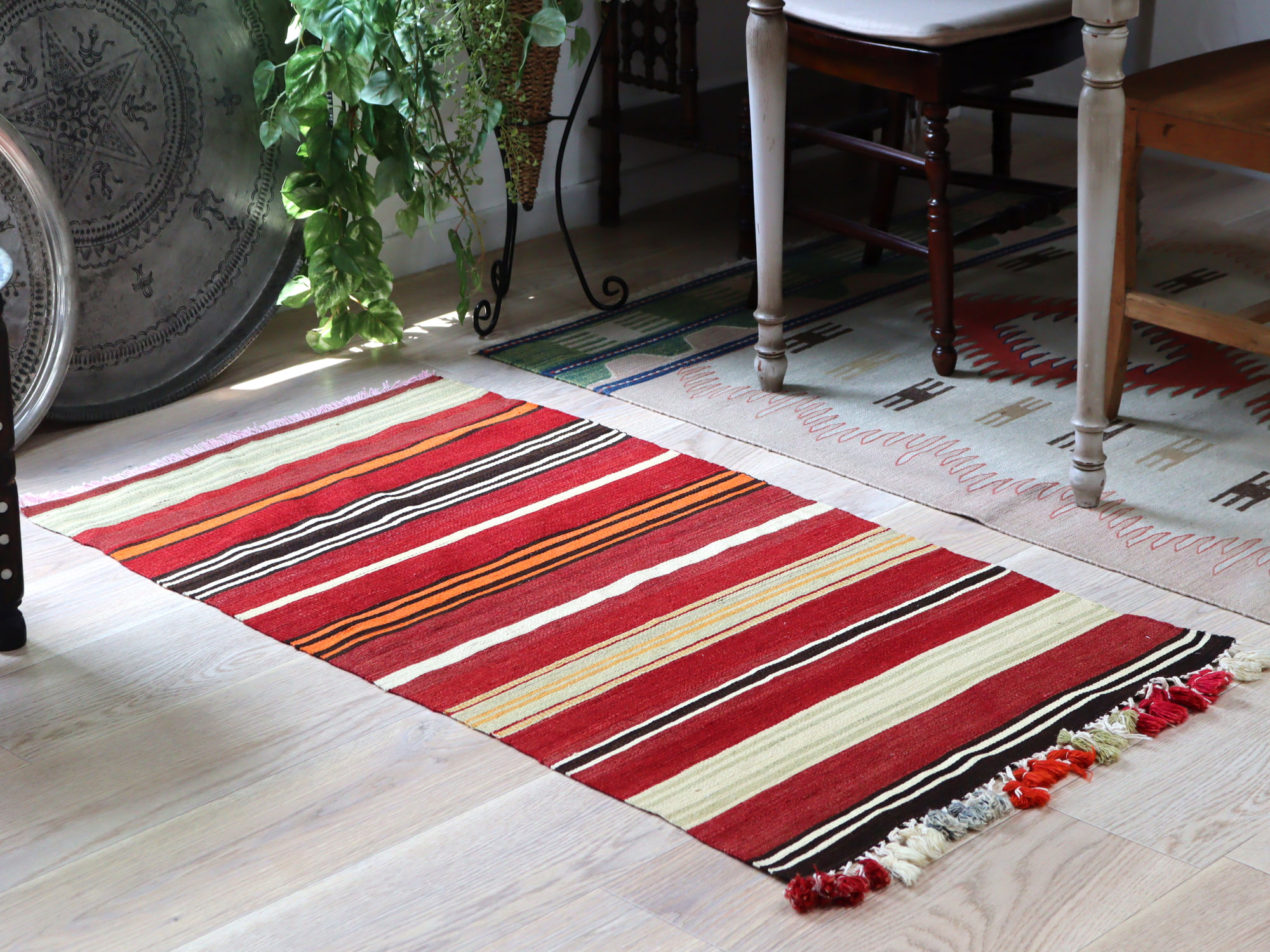 オールドキリム シリフケ ストライプ123×68cm 細かく薄手の織り テント布
