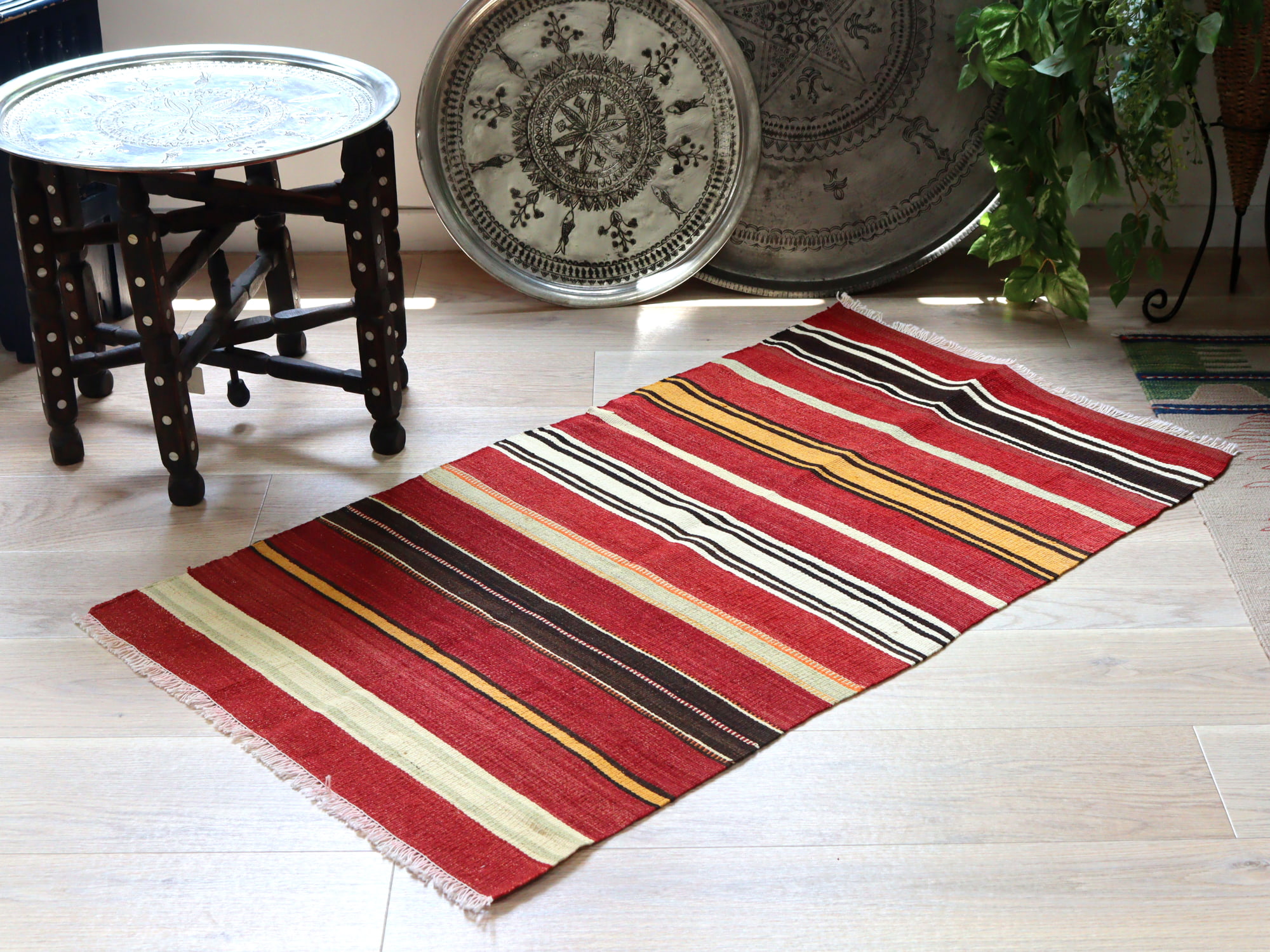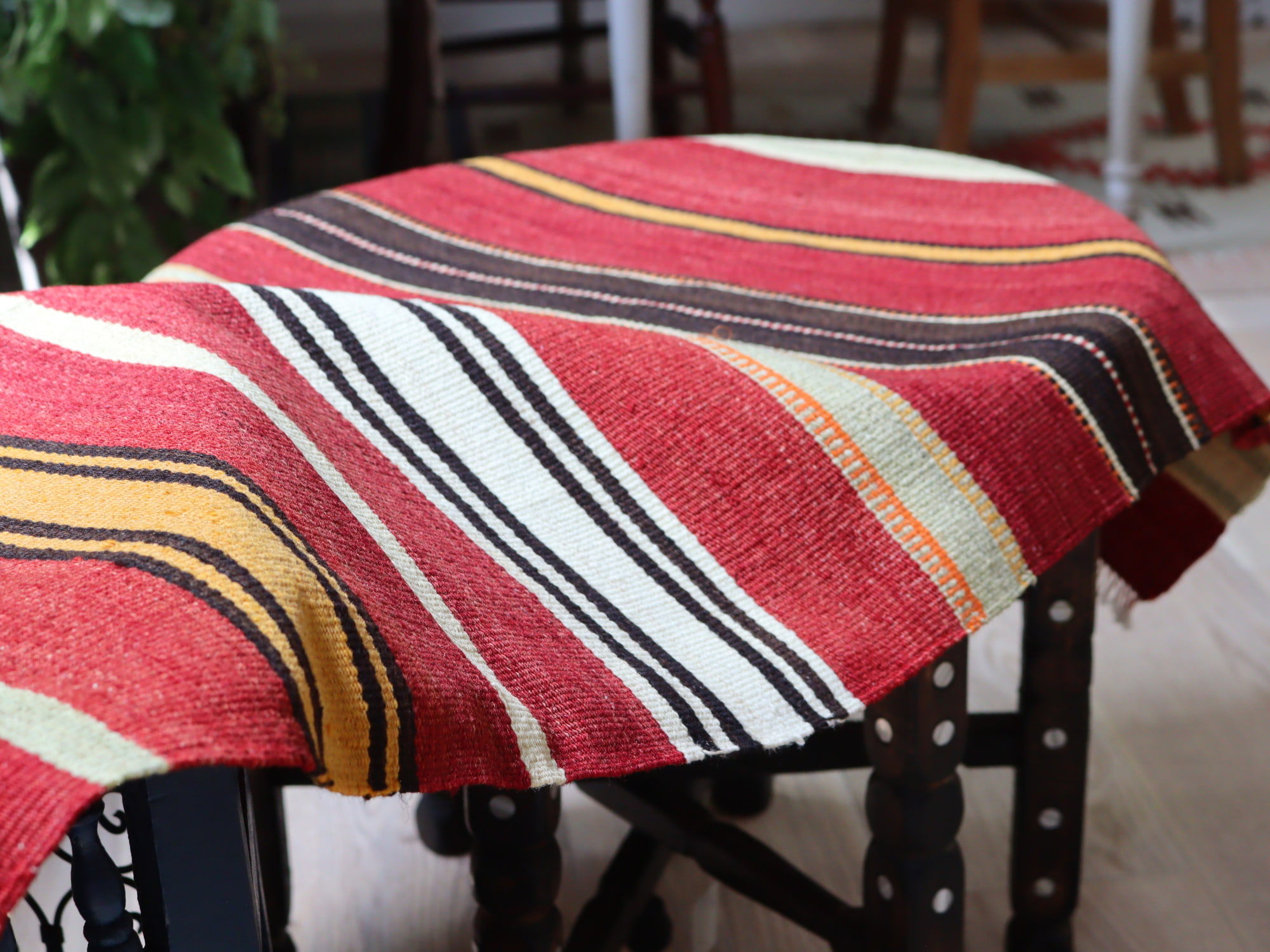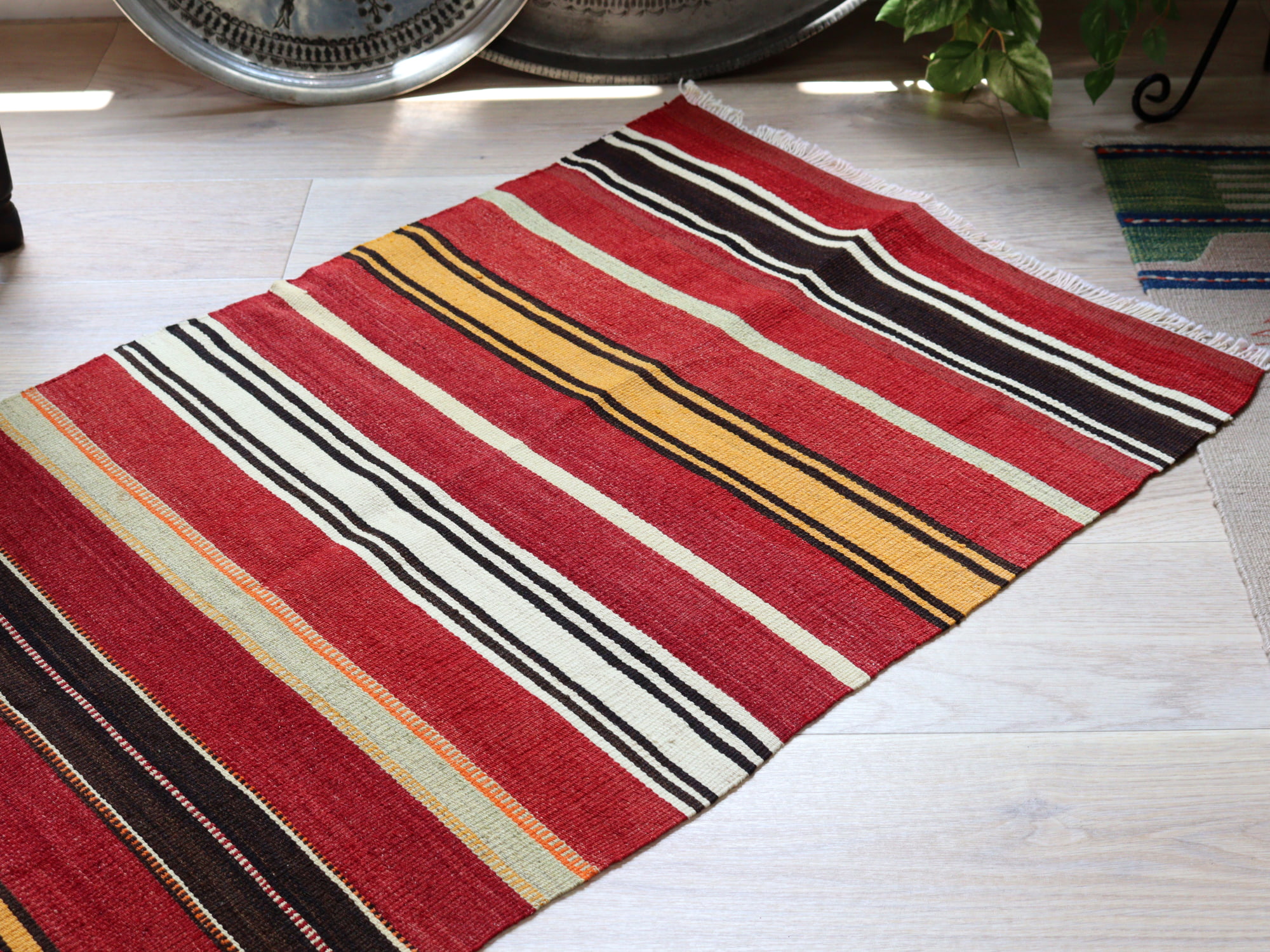 オールドキリム シリフケ ストライプ120×68cm 細かく薄手の織り テント布