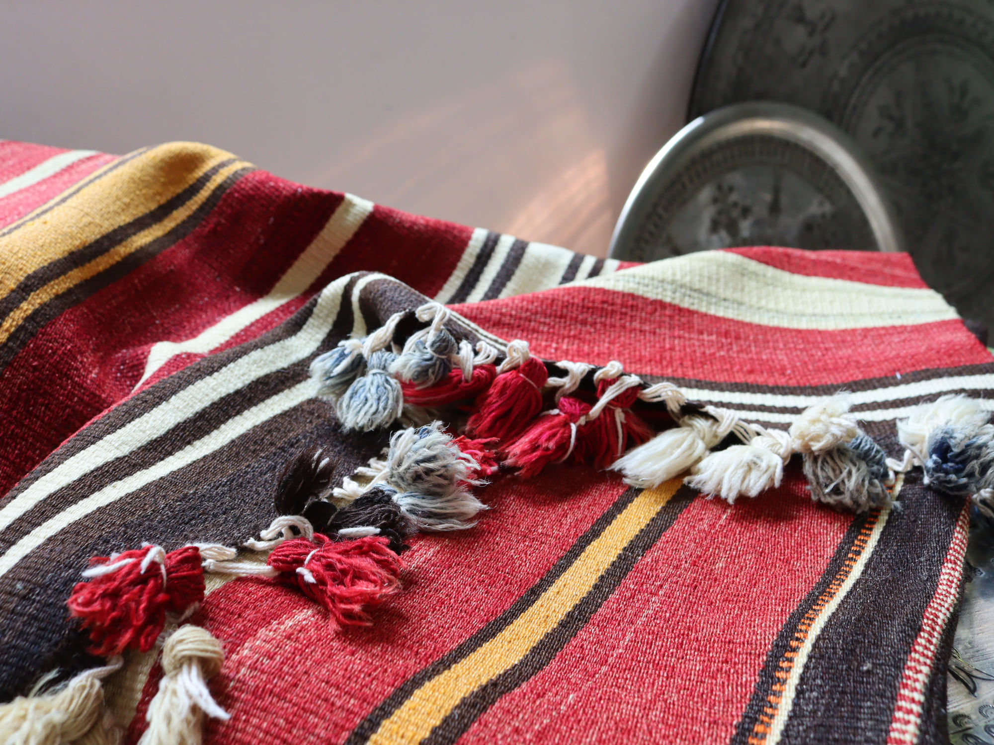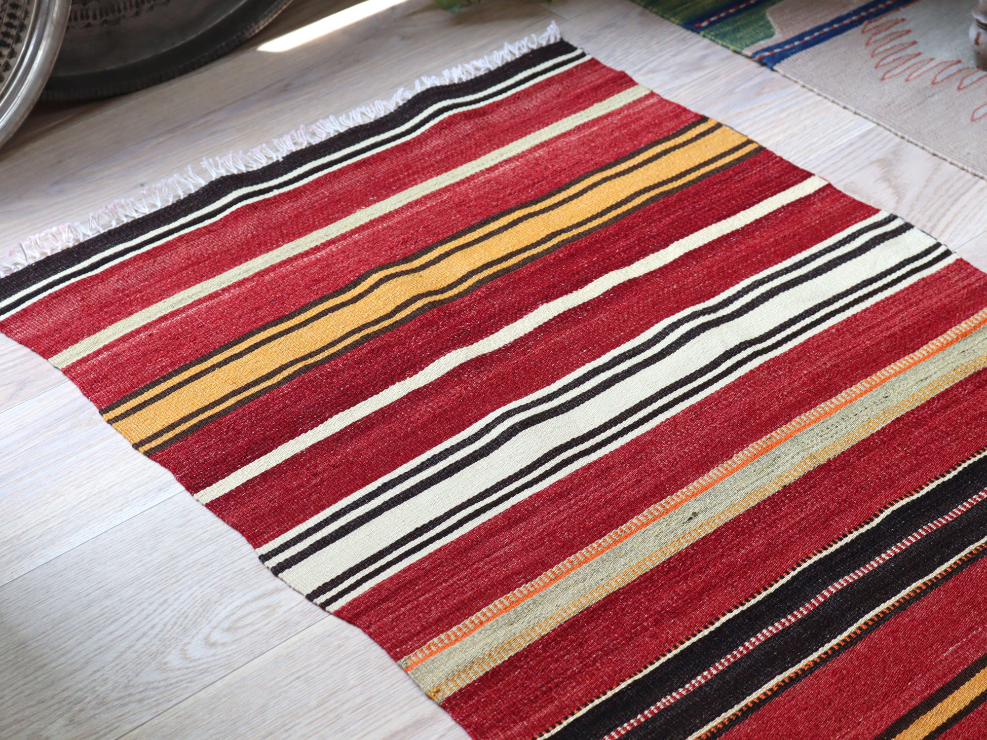 オールドキリム シリフケ ストライプ119×68cm 細かく薄手の織り テント布