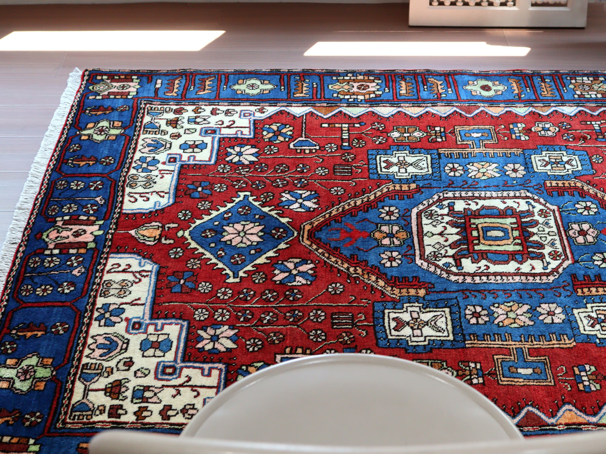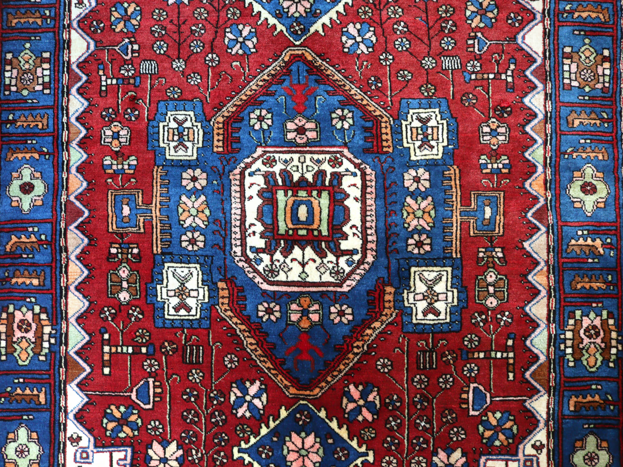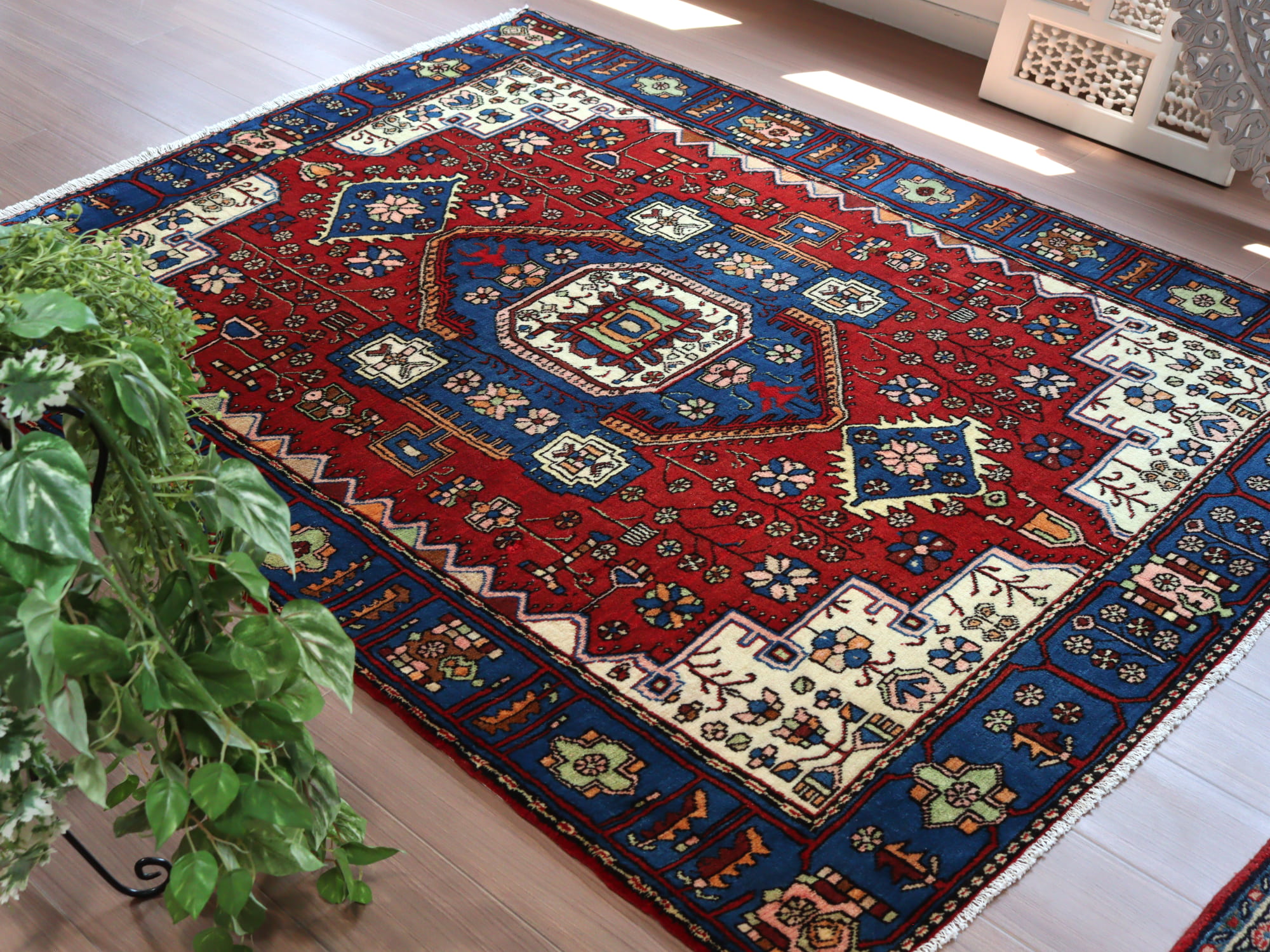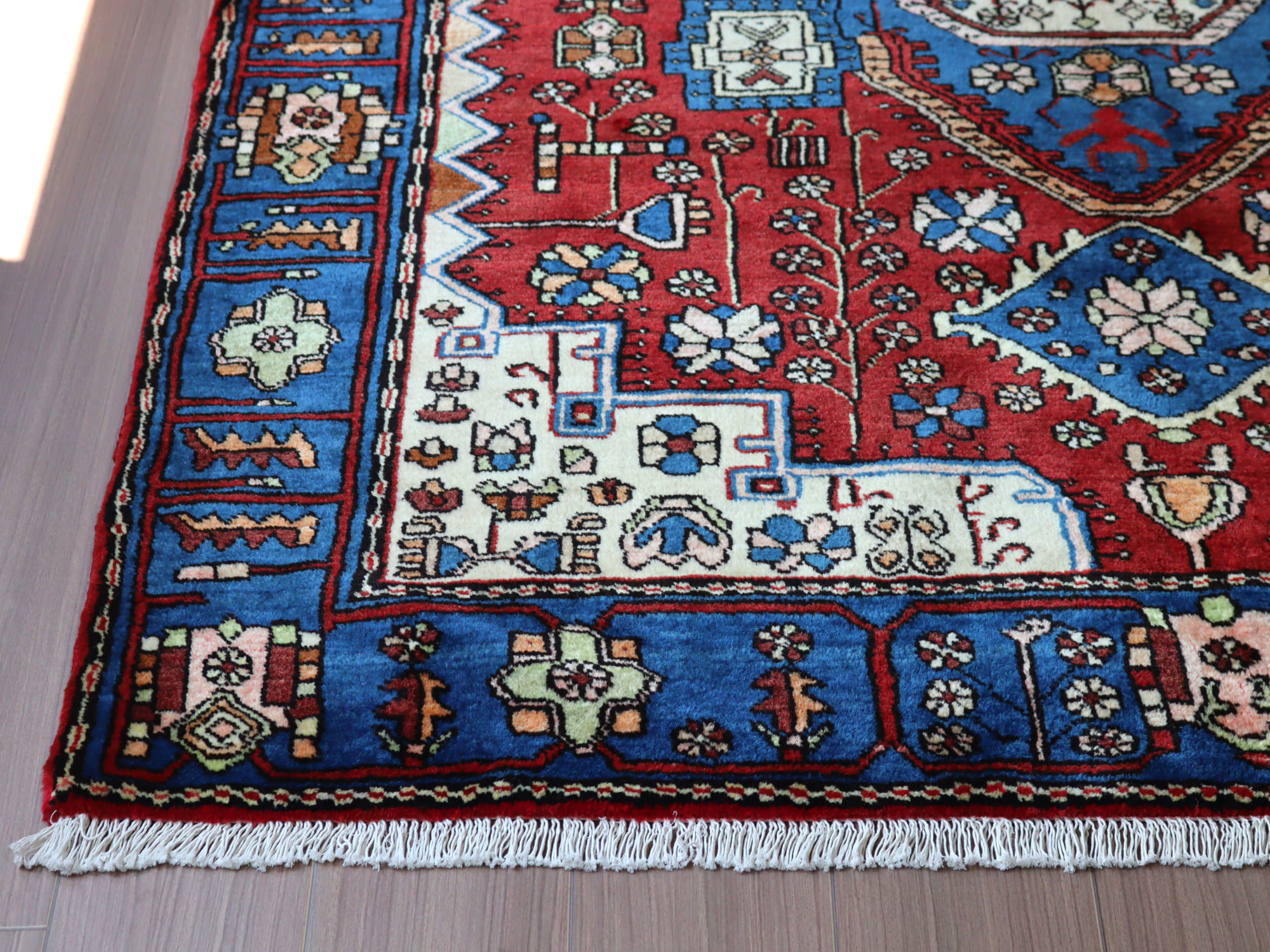 イランの手織り絨毯 ナハバンド193×143cm レッドとブルーのメダリオン