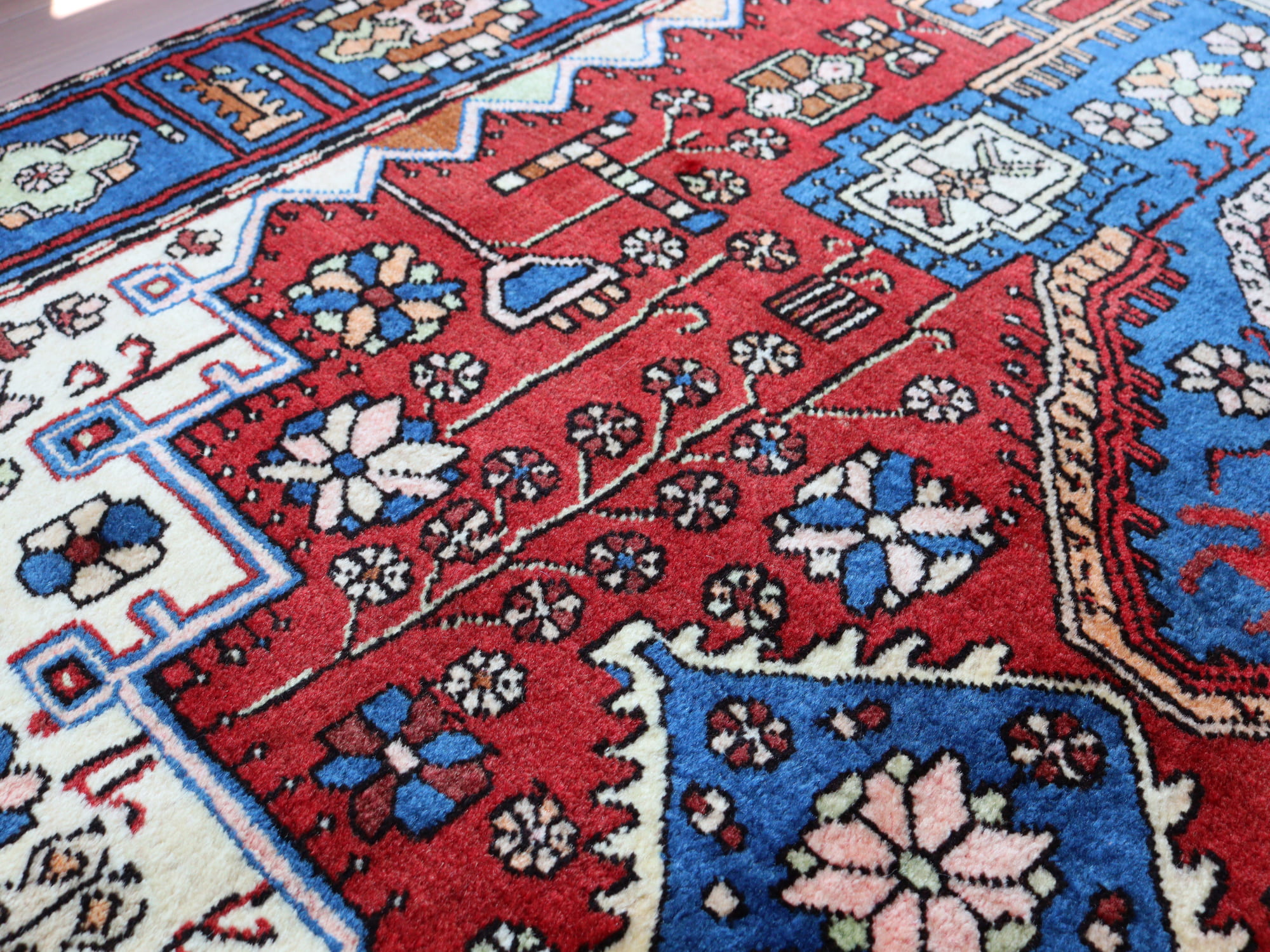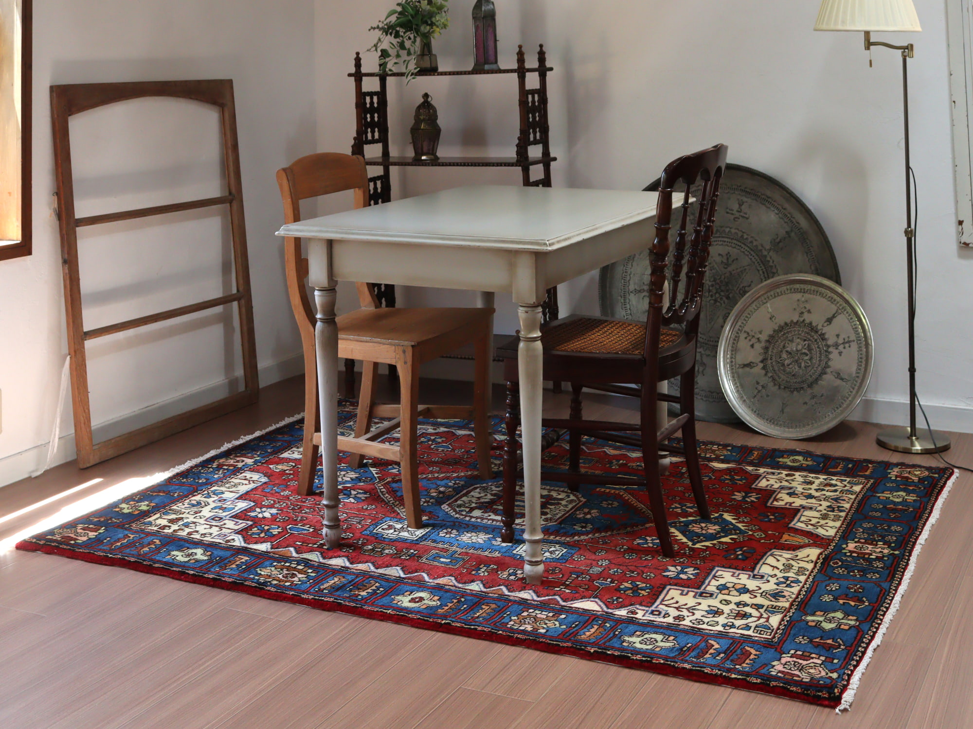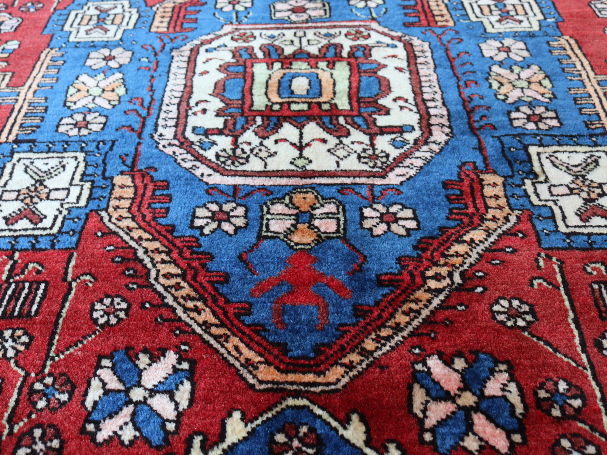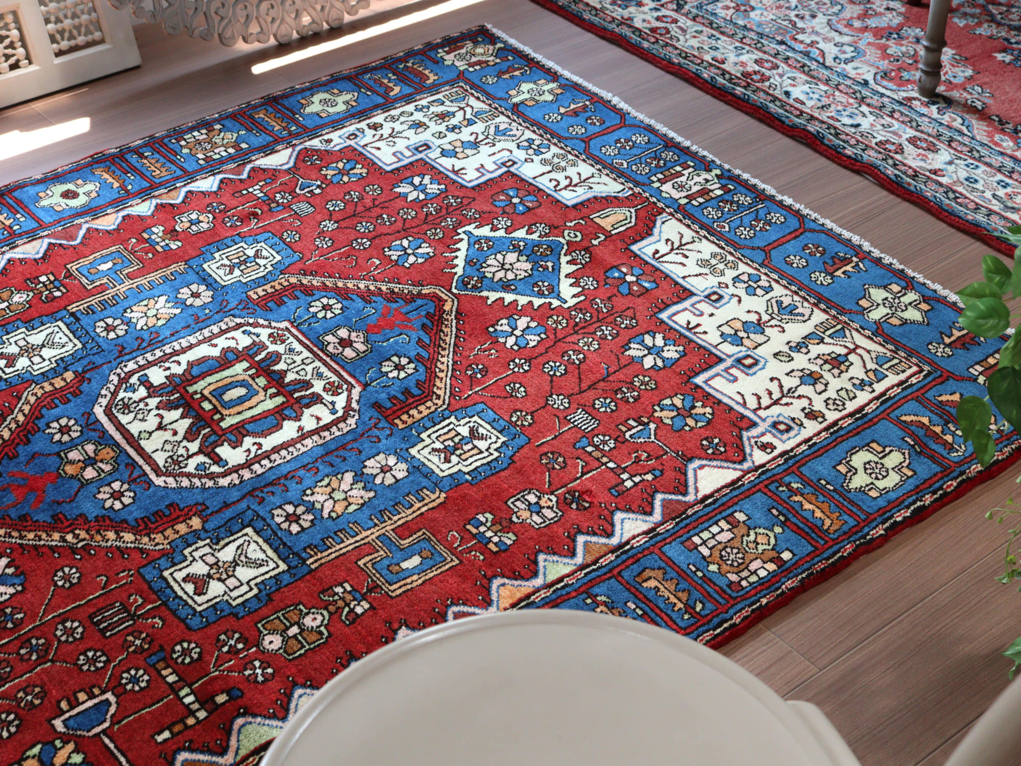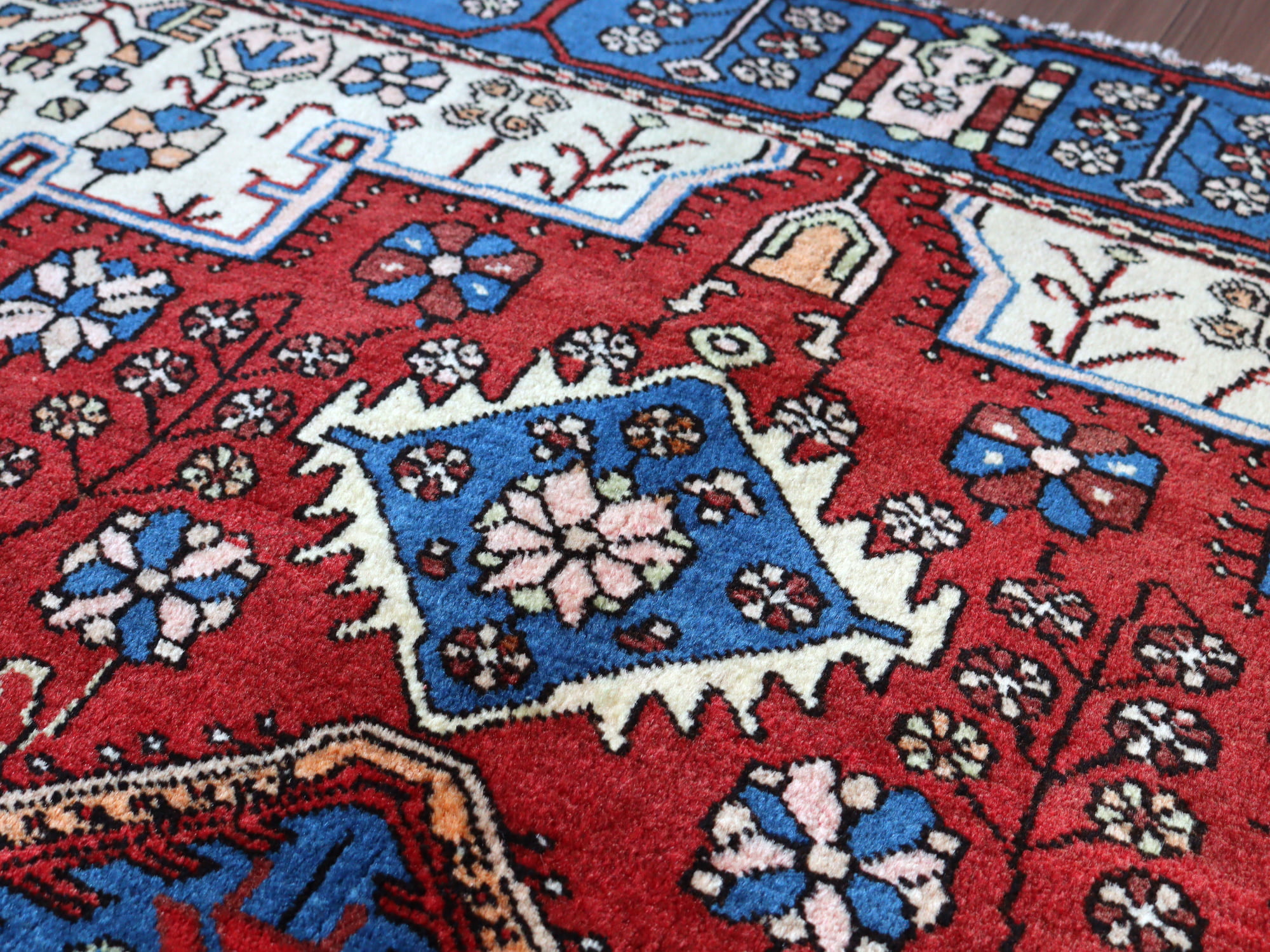 イランの手織り絨毯 ナハバンド193×143cm レッドとブルーのメダリオン