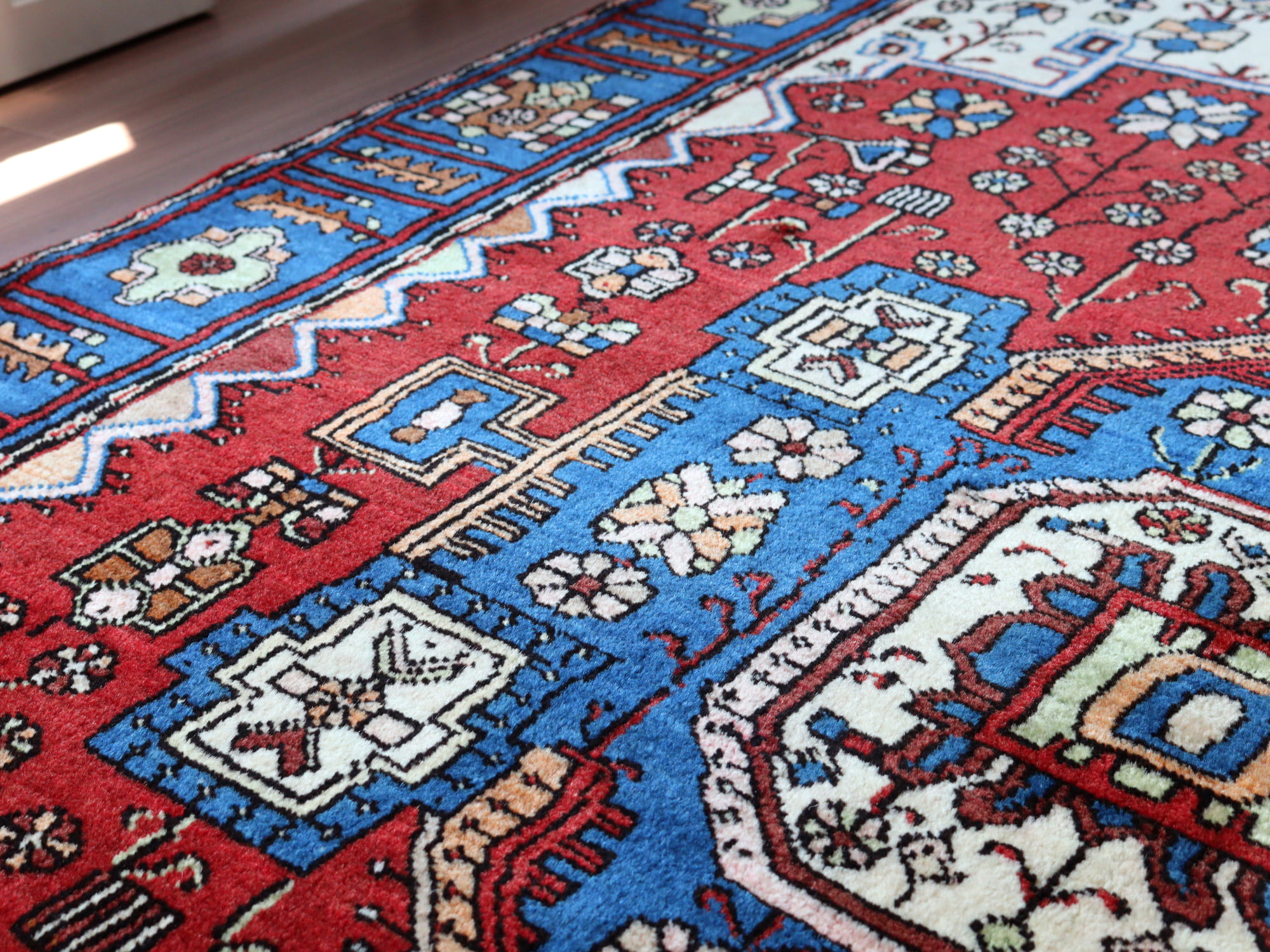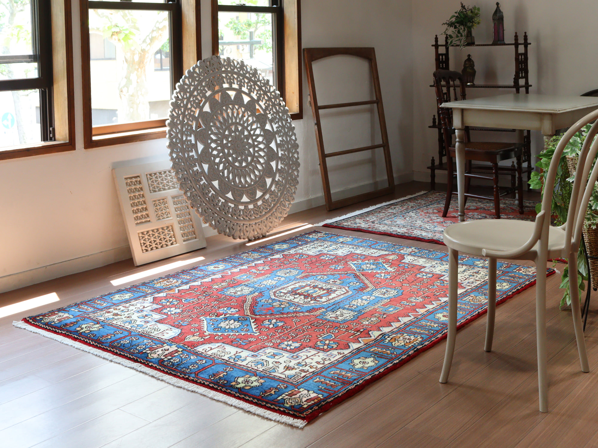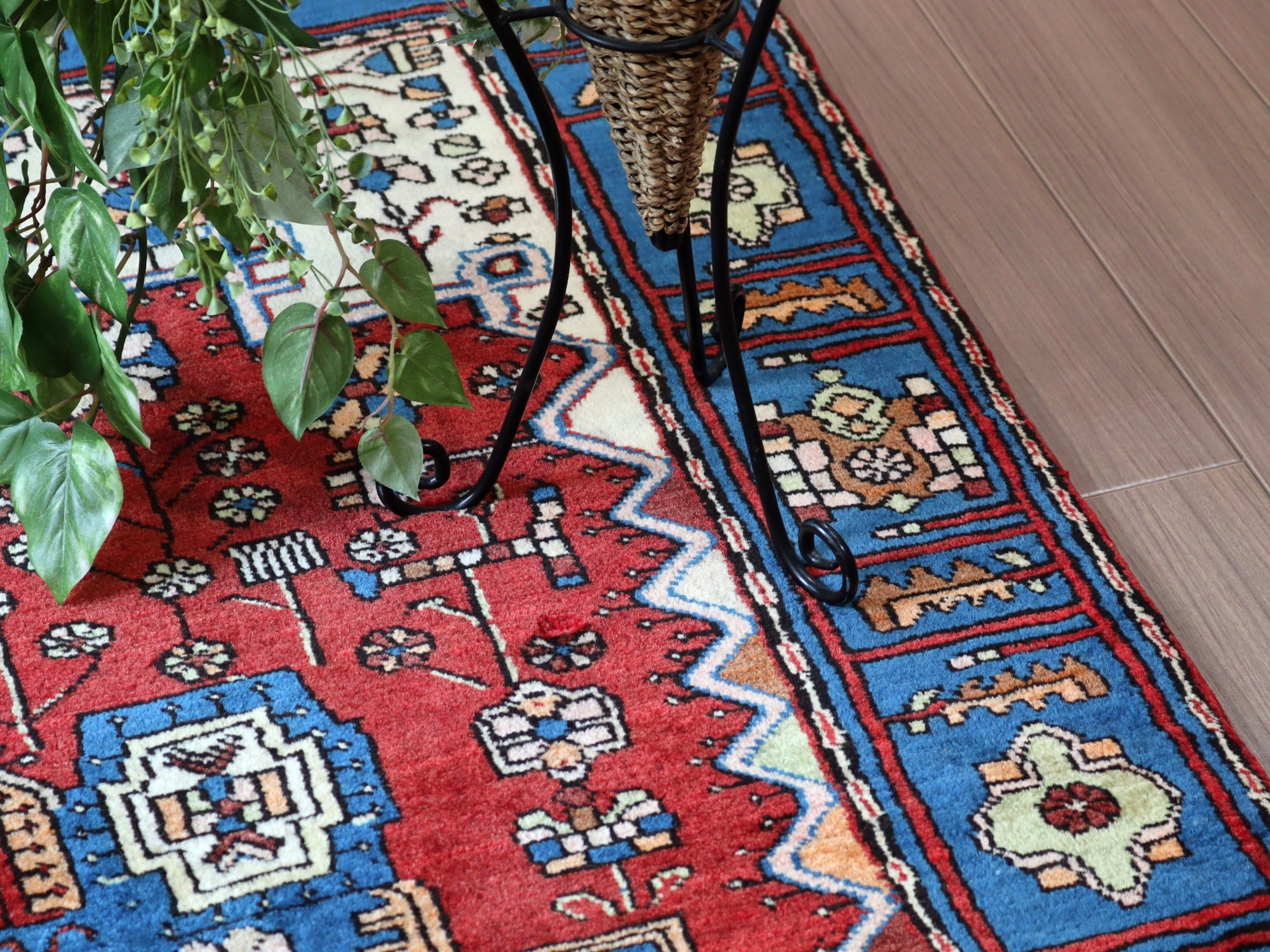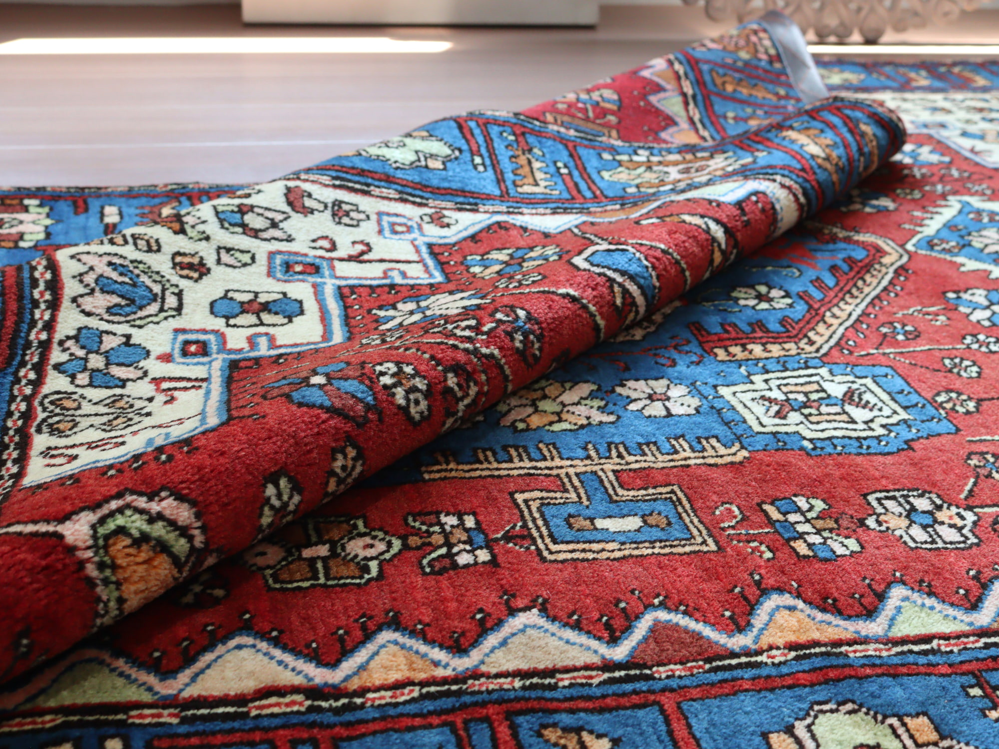 イランの手織り絨毯 ナハバンド193×143cm レッドとブルーのメダリオン