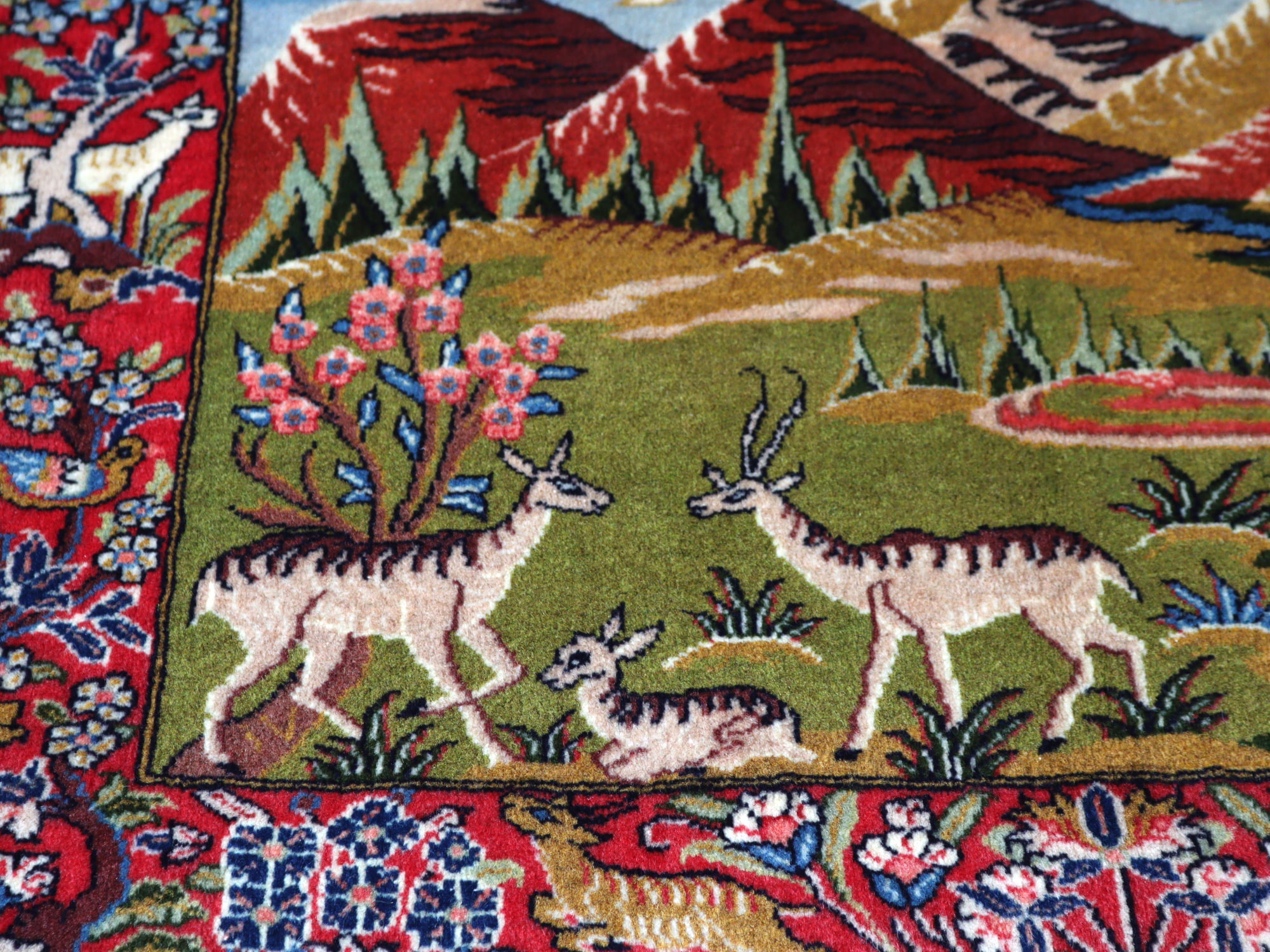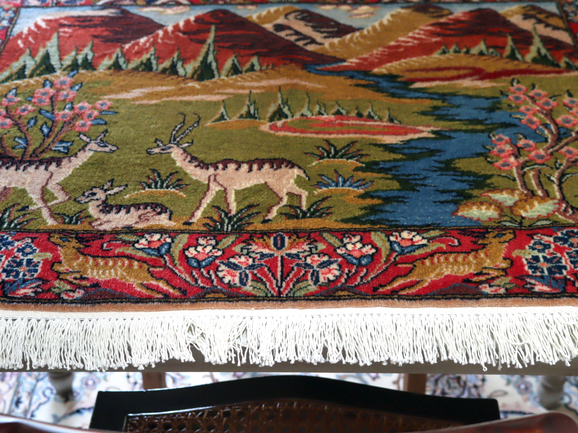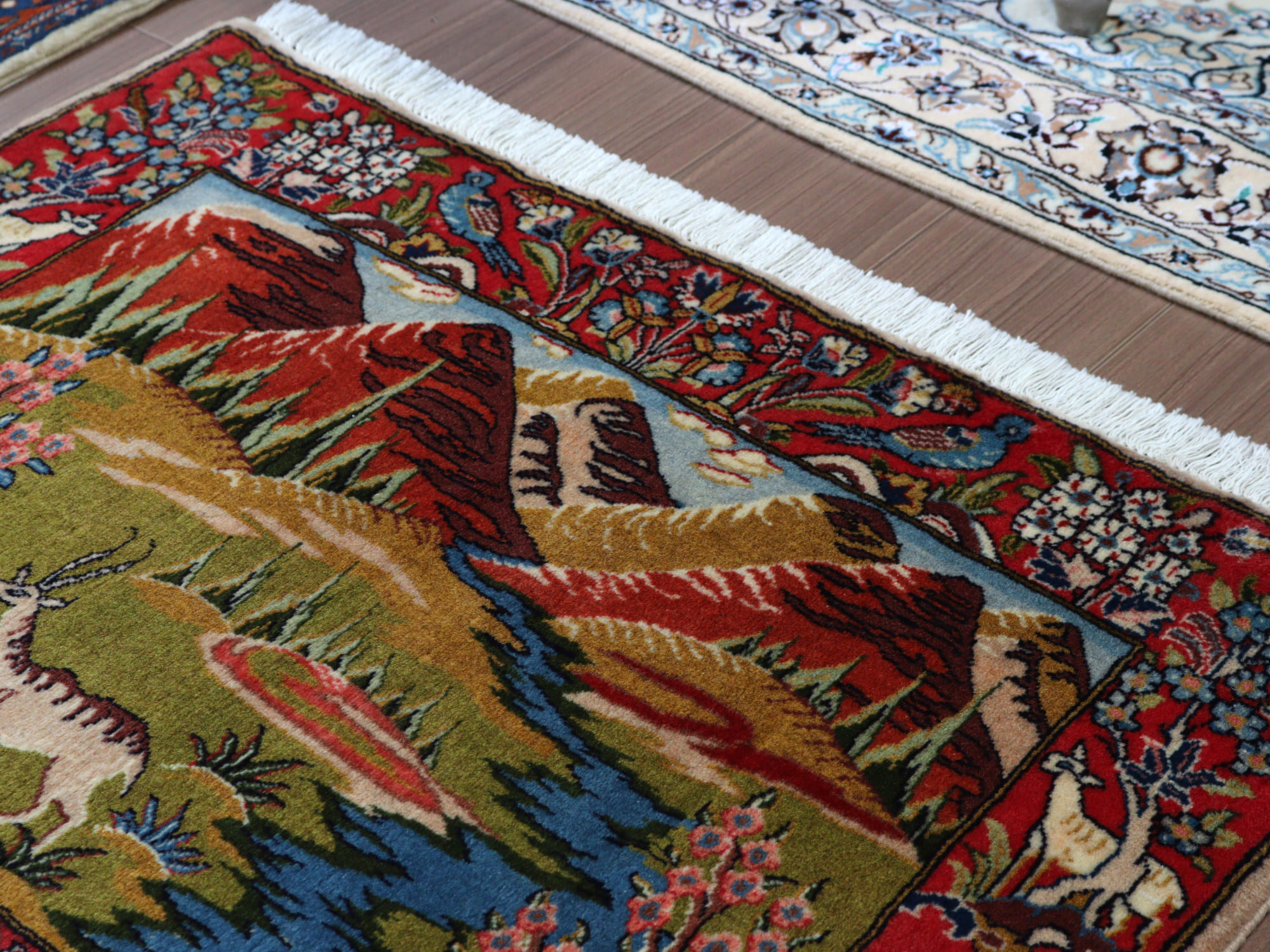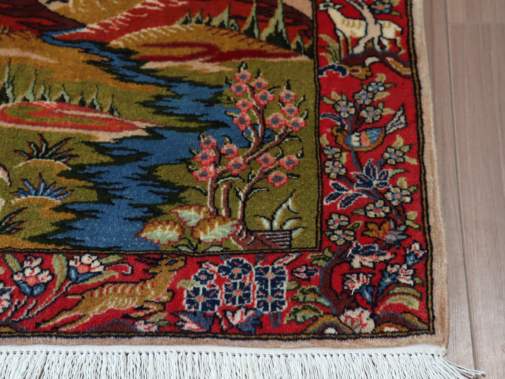 ペルシャ絨毯 カシャーン95×66cm 風景デザイン 鹿