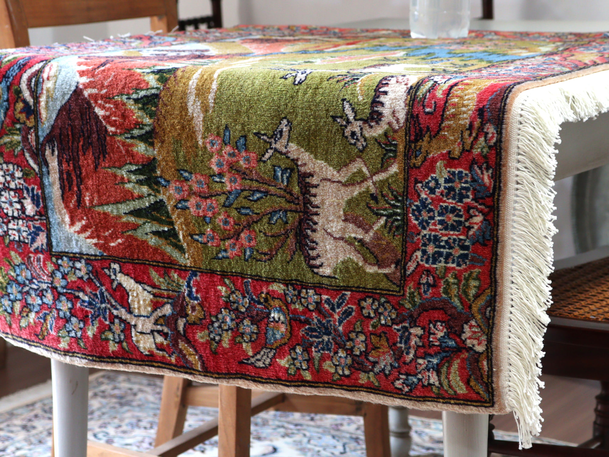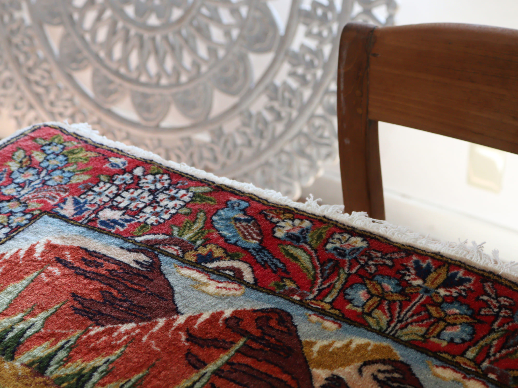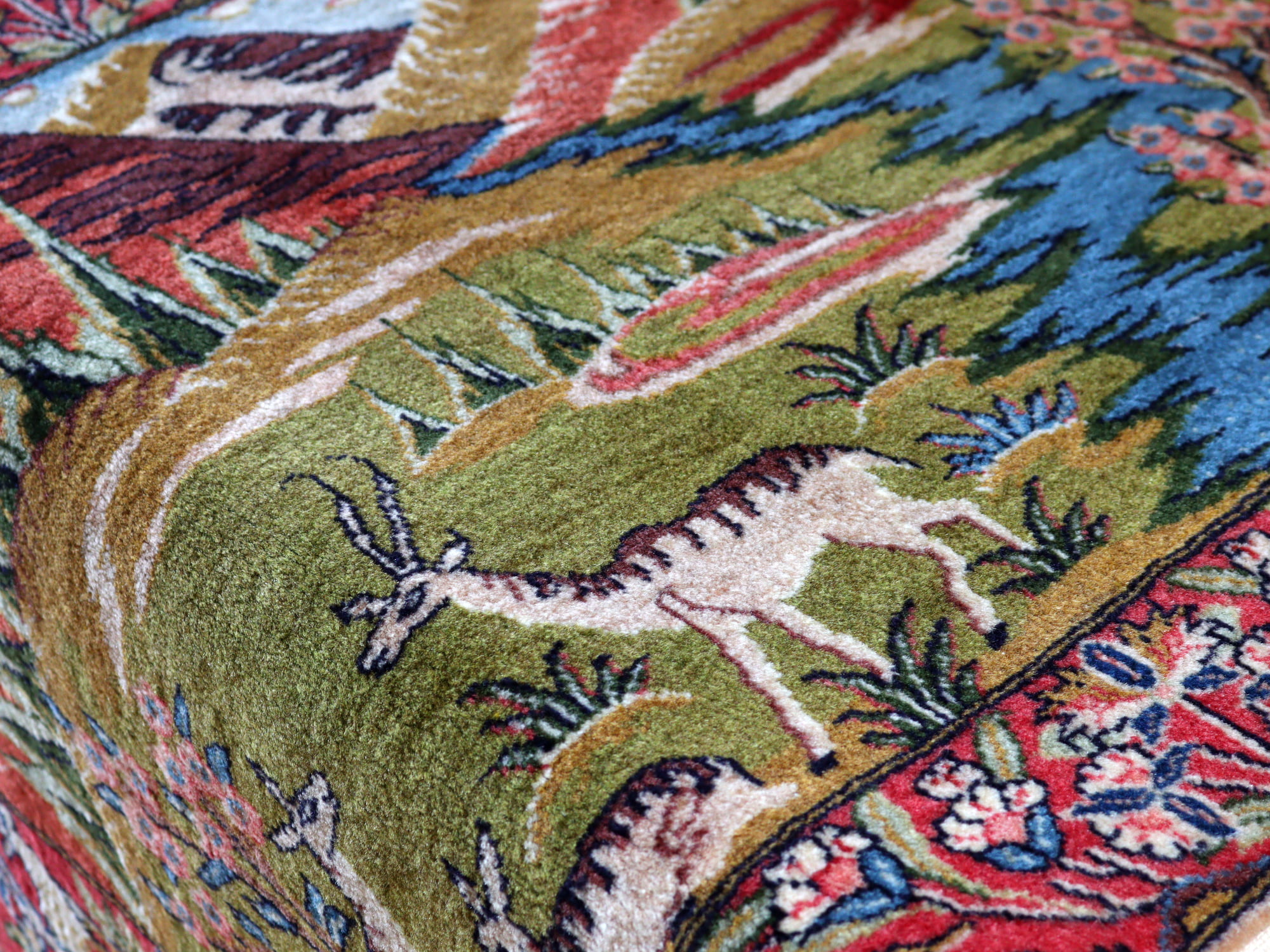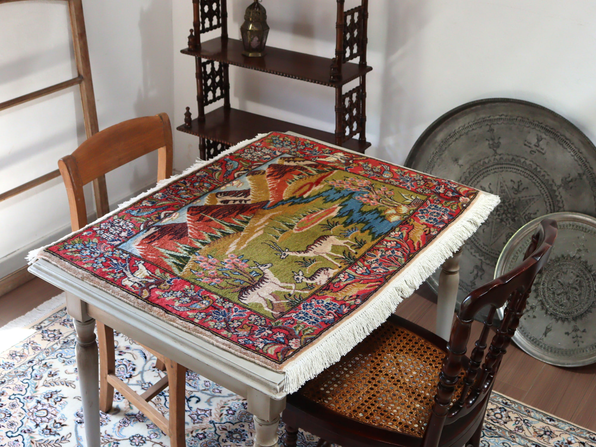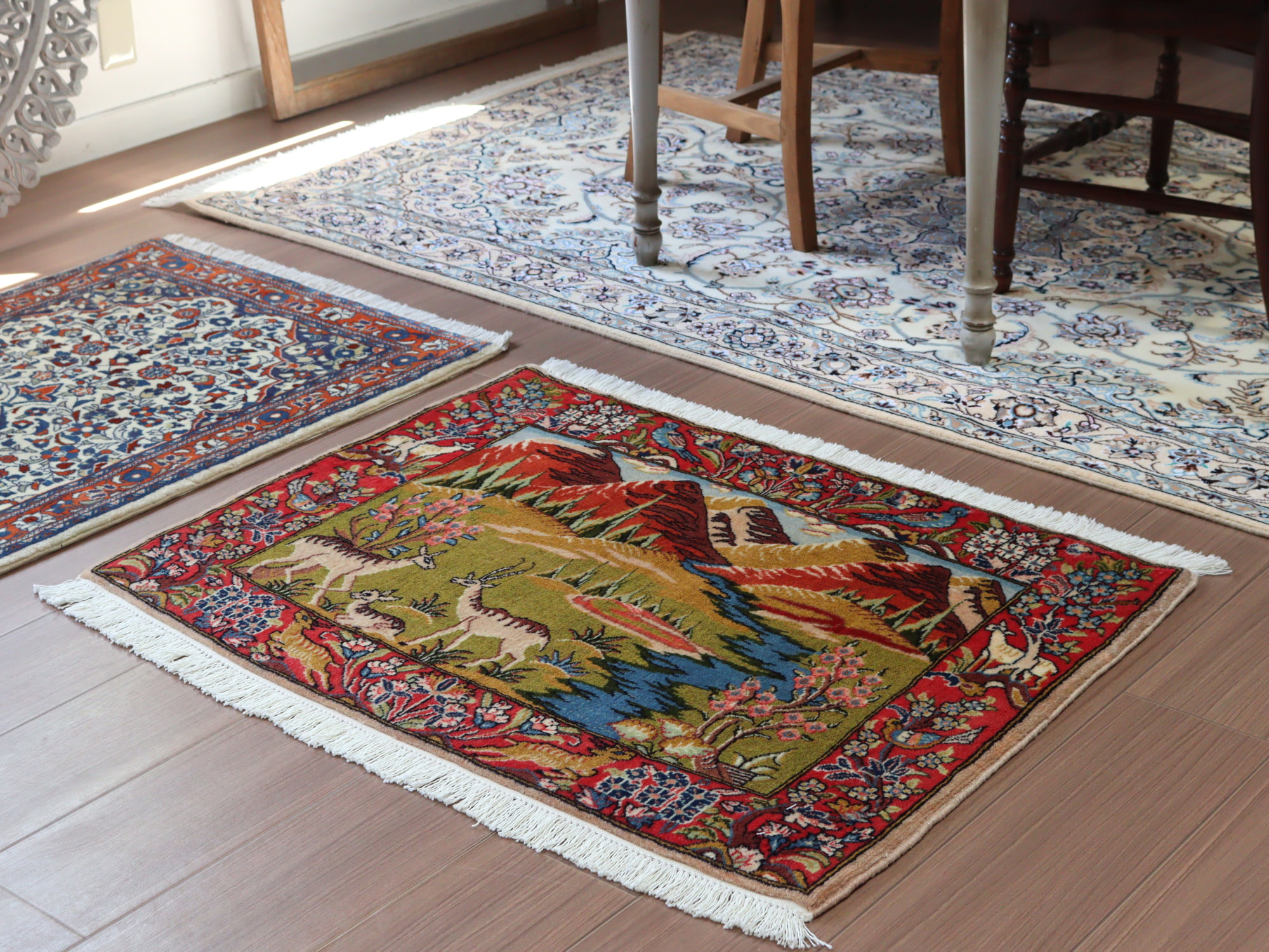 ペルシャ絨毯 カシャーン95×66cm 風景デザイン 鹿