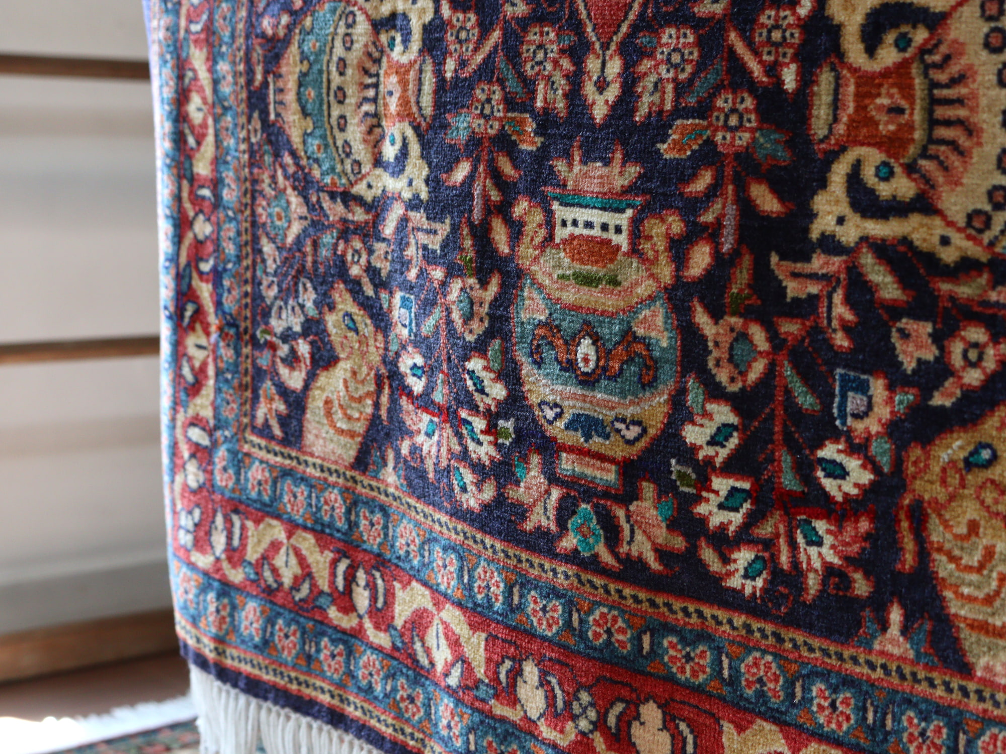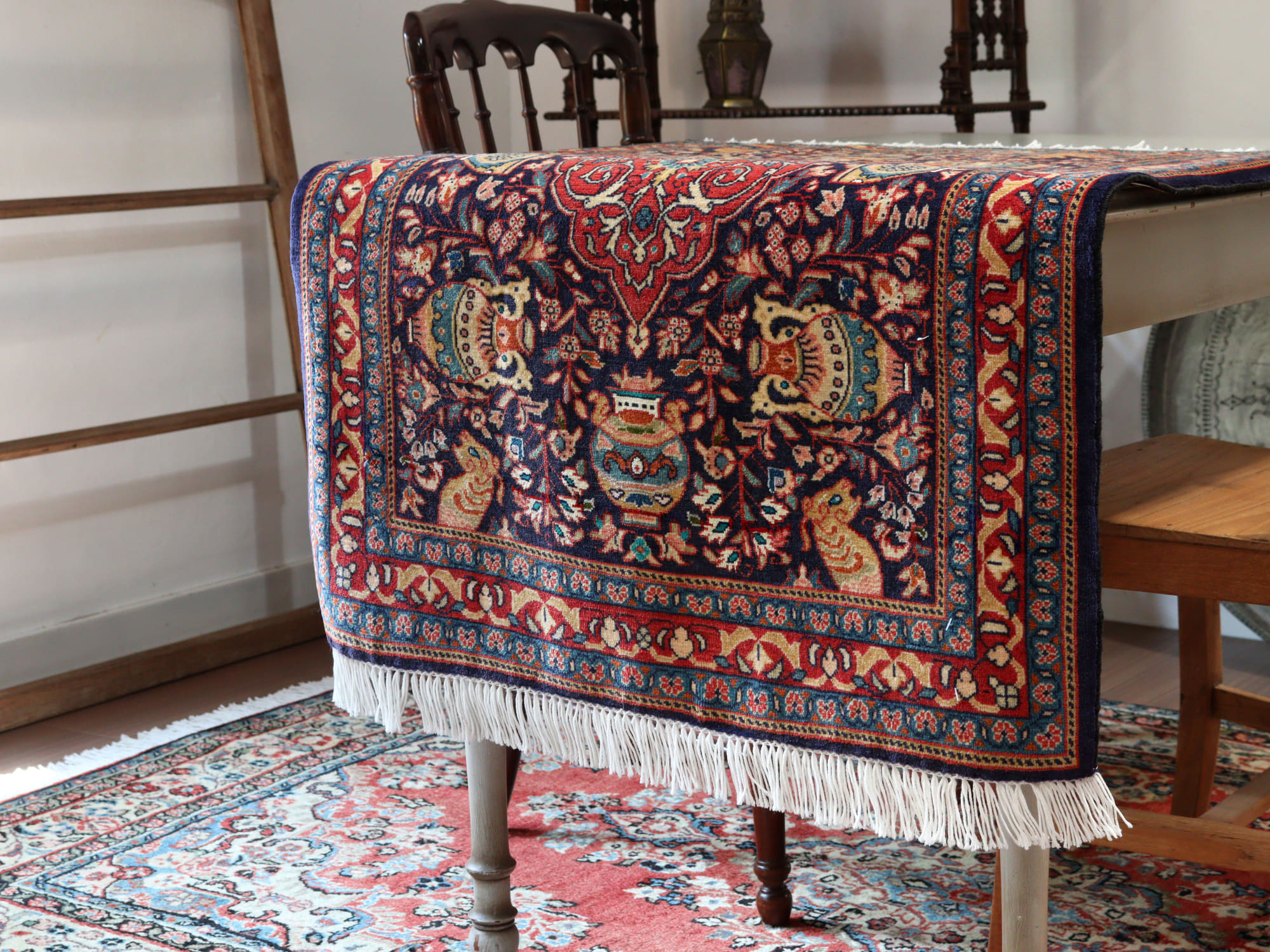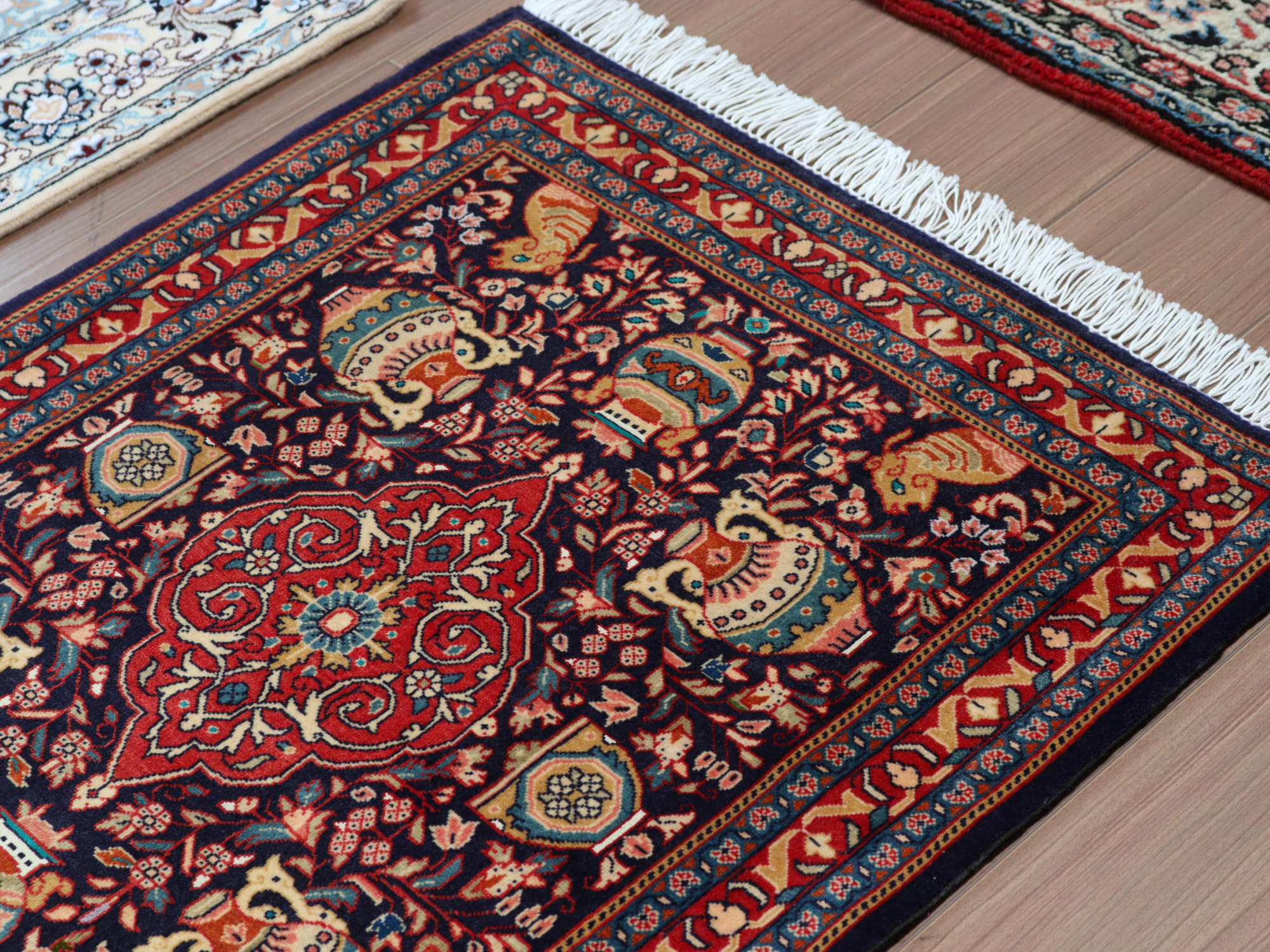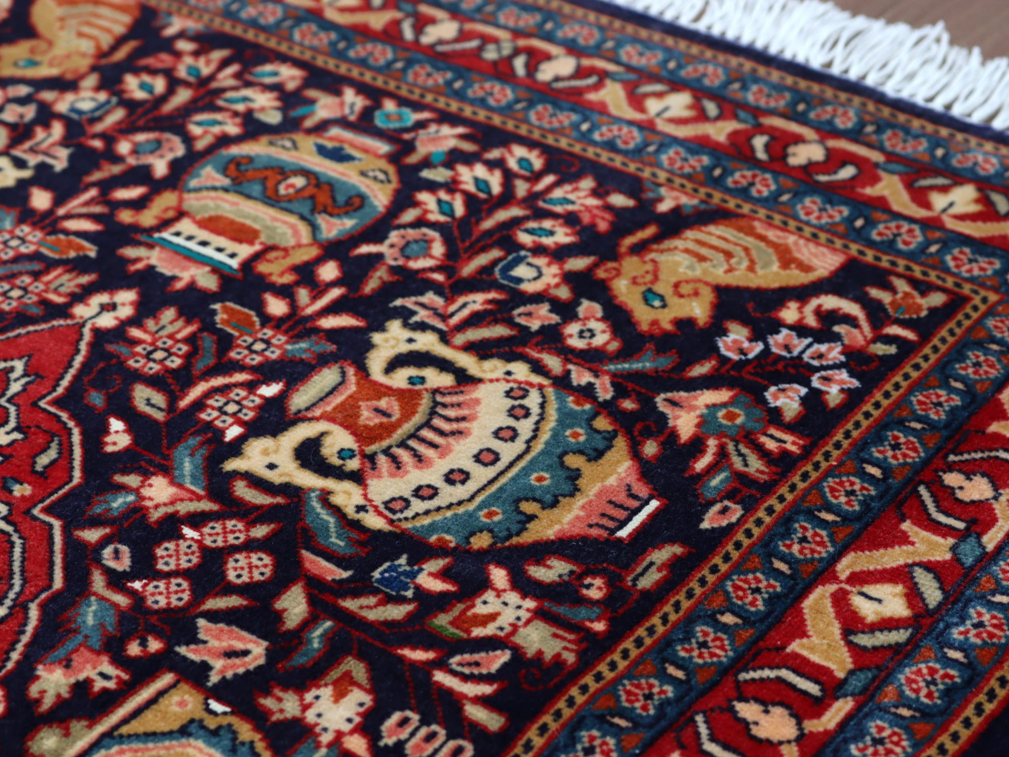 手織り絨毯 サルーク95×73cm 花瓶と動物 手付きの壺 うさぎ?