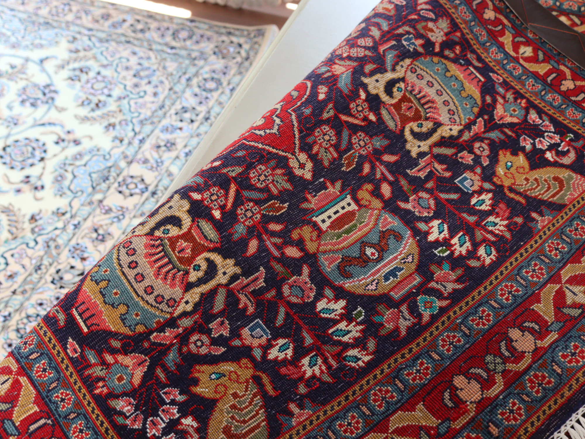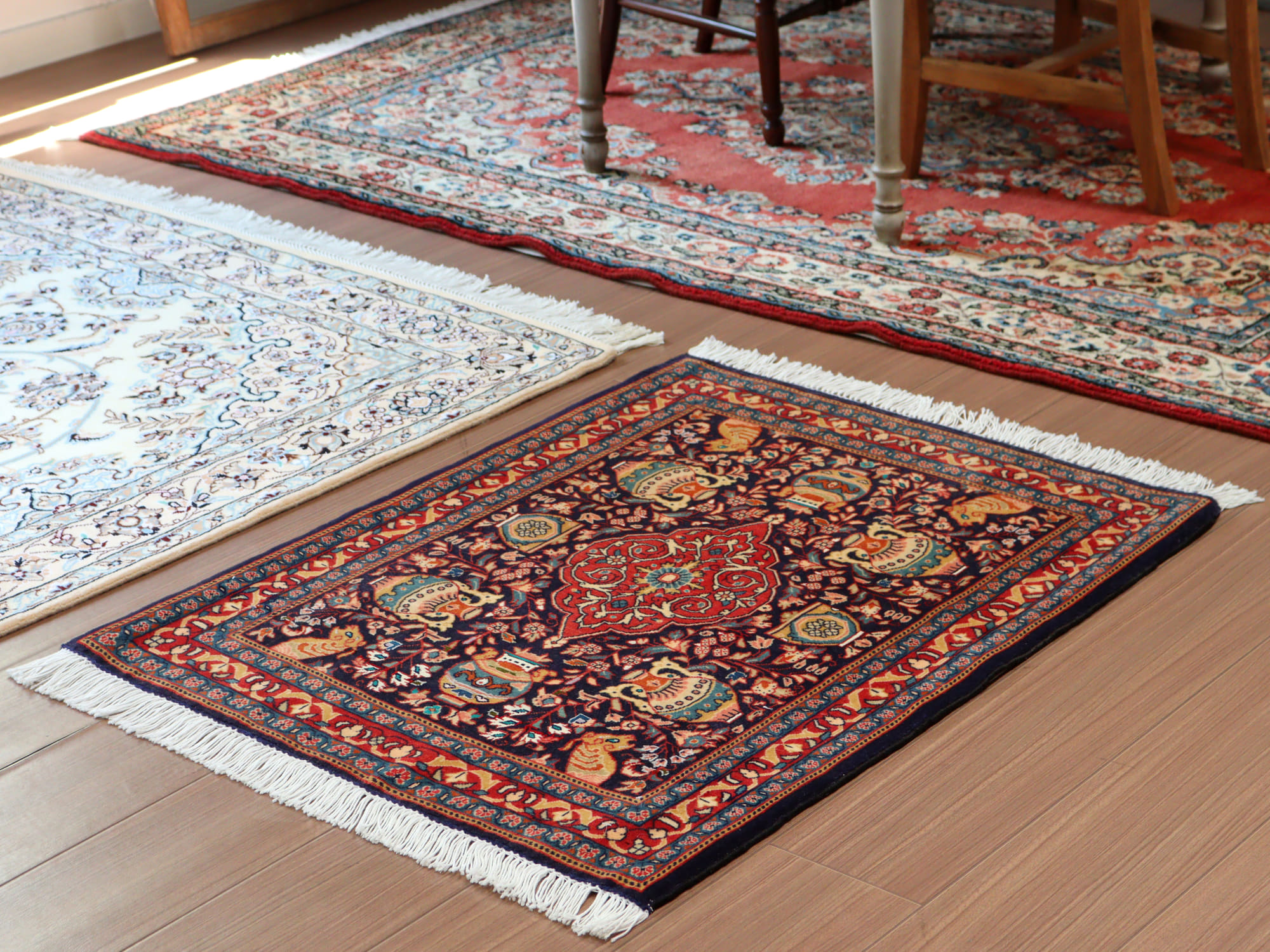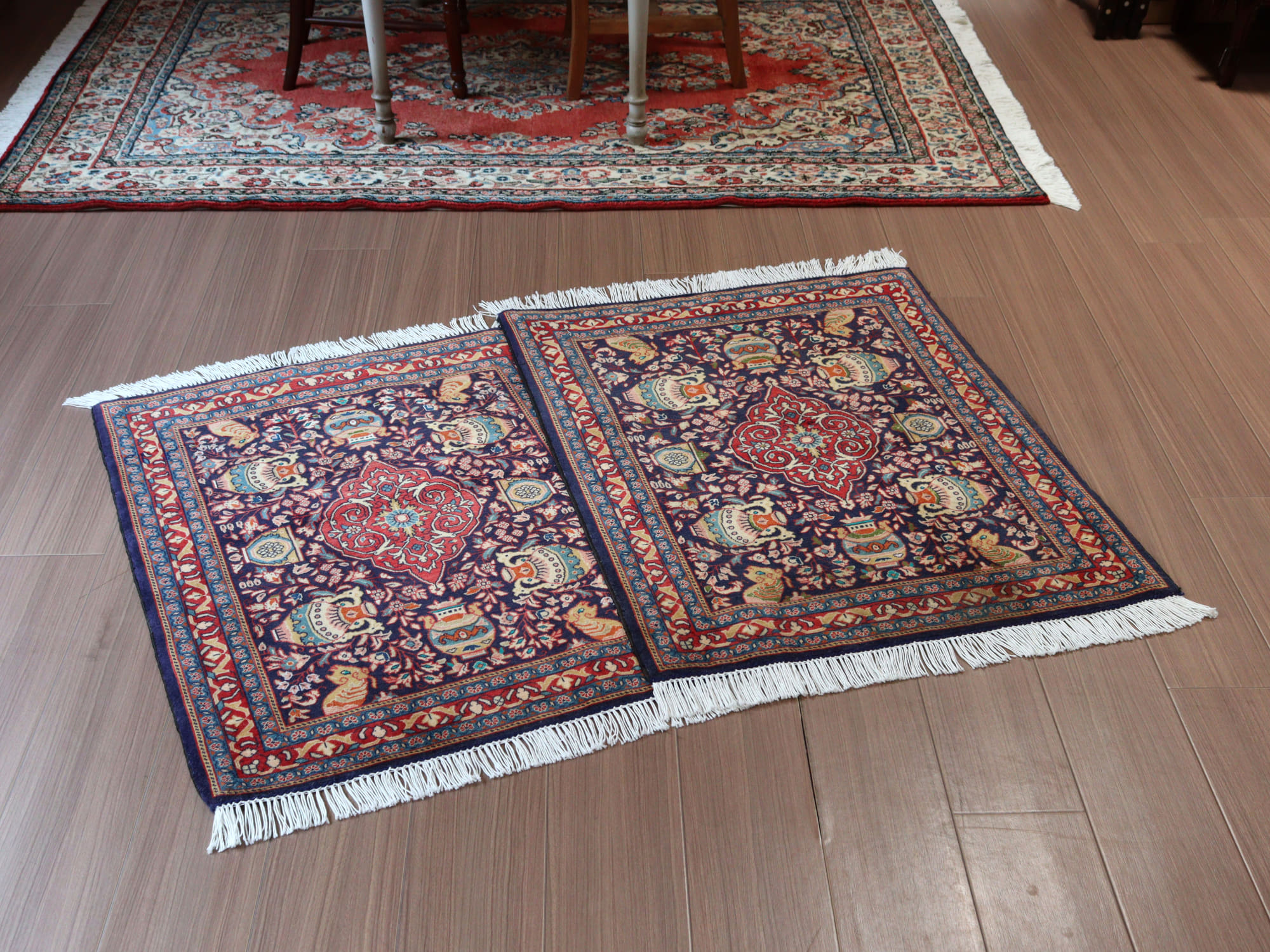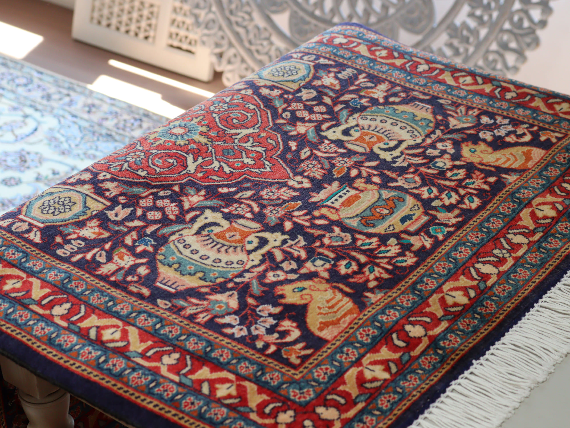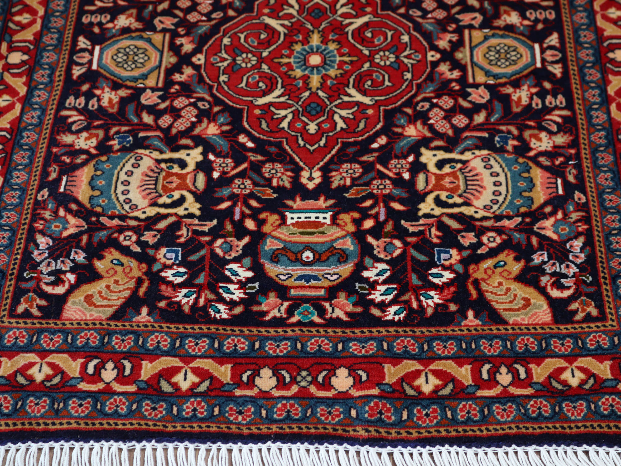 手織り絨毯 サルーク95×73cm 花瓶と動物 手付きの壺 うさぎ?
