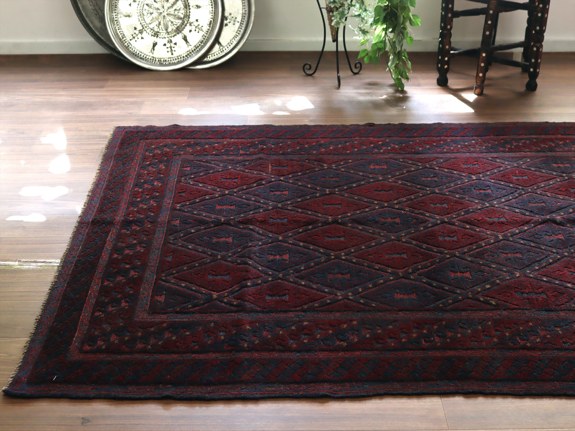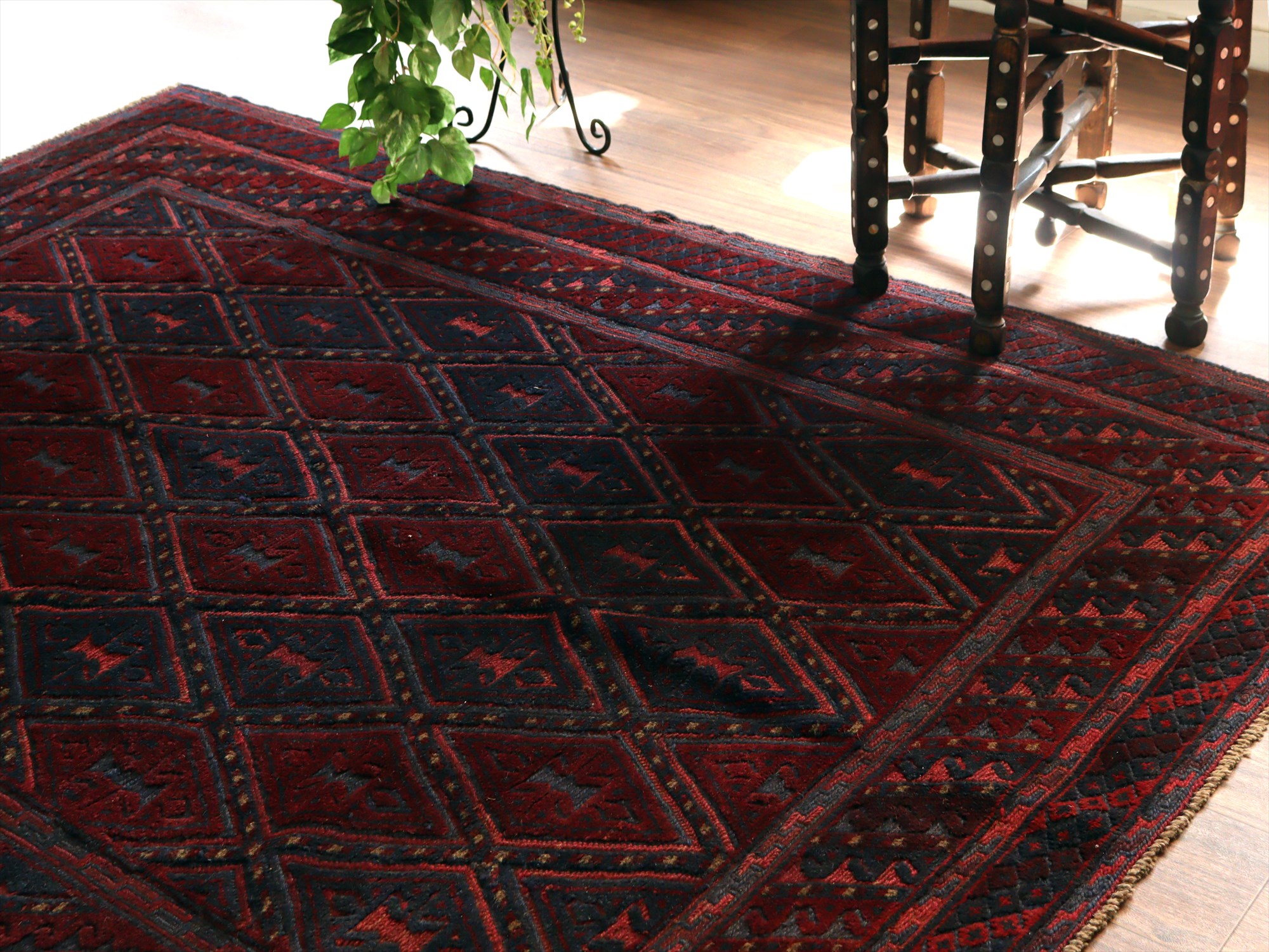 アフガンキリム アフガニスタン ミシュワニ185×146cm 連なるダイヤ