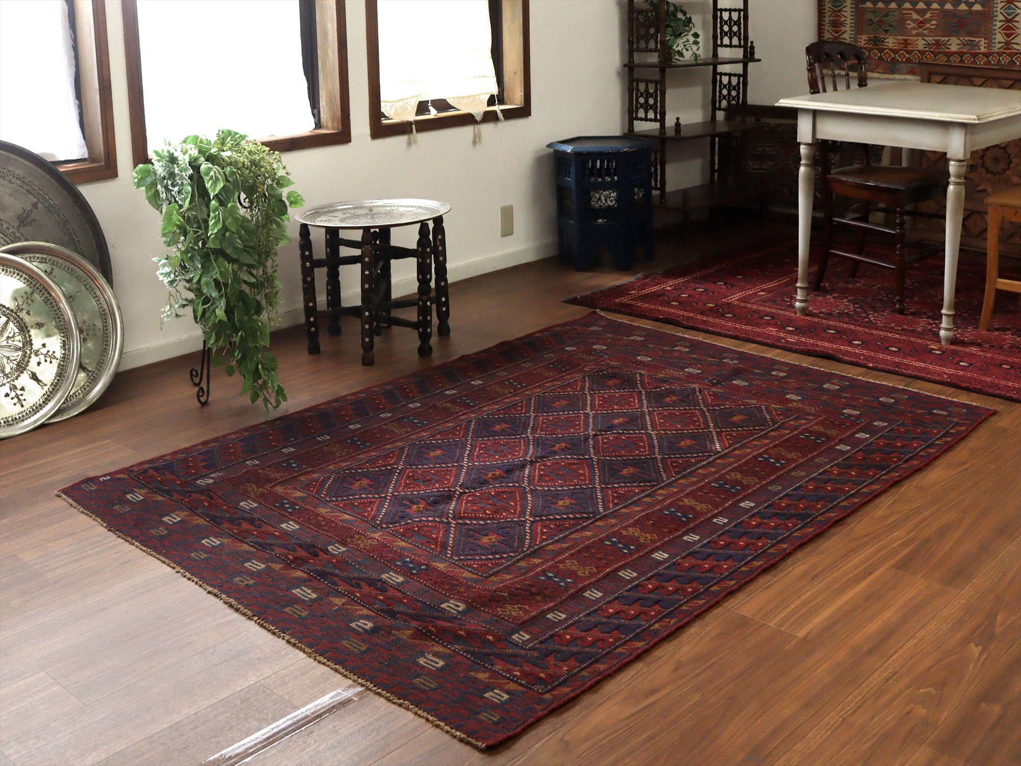 アフガンキリム アフガニスタン ミシュワニ193×143cm 連続する幾何学模様
