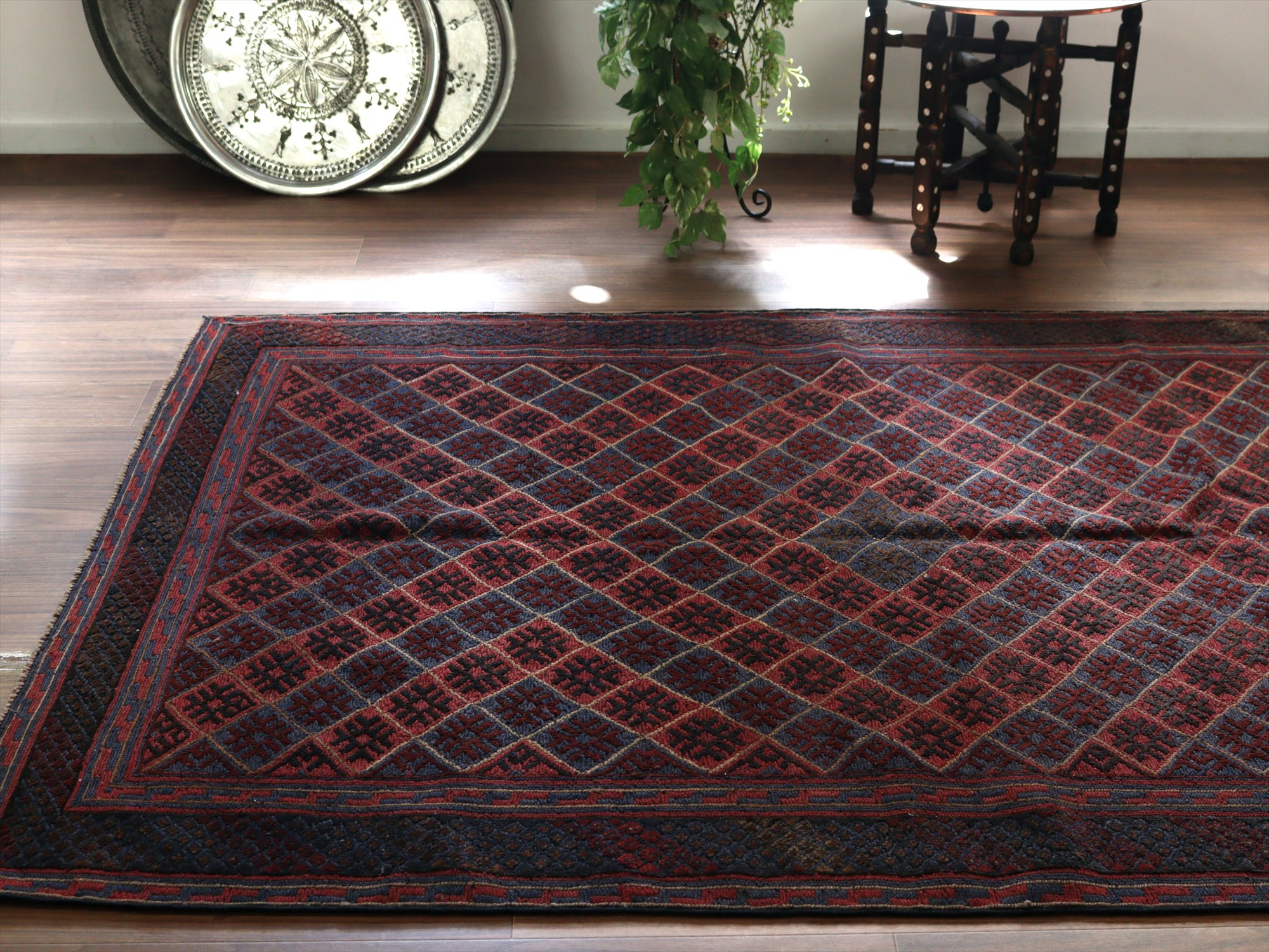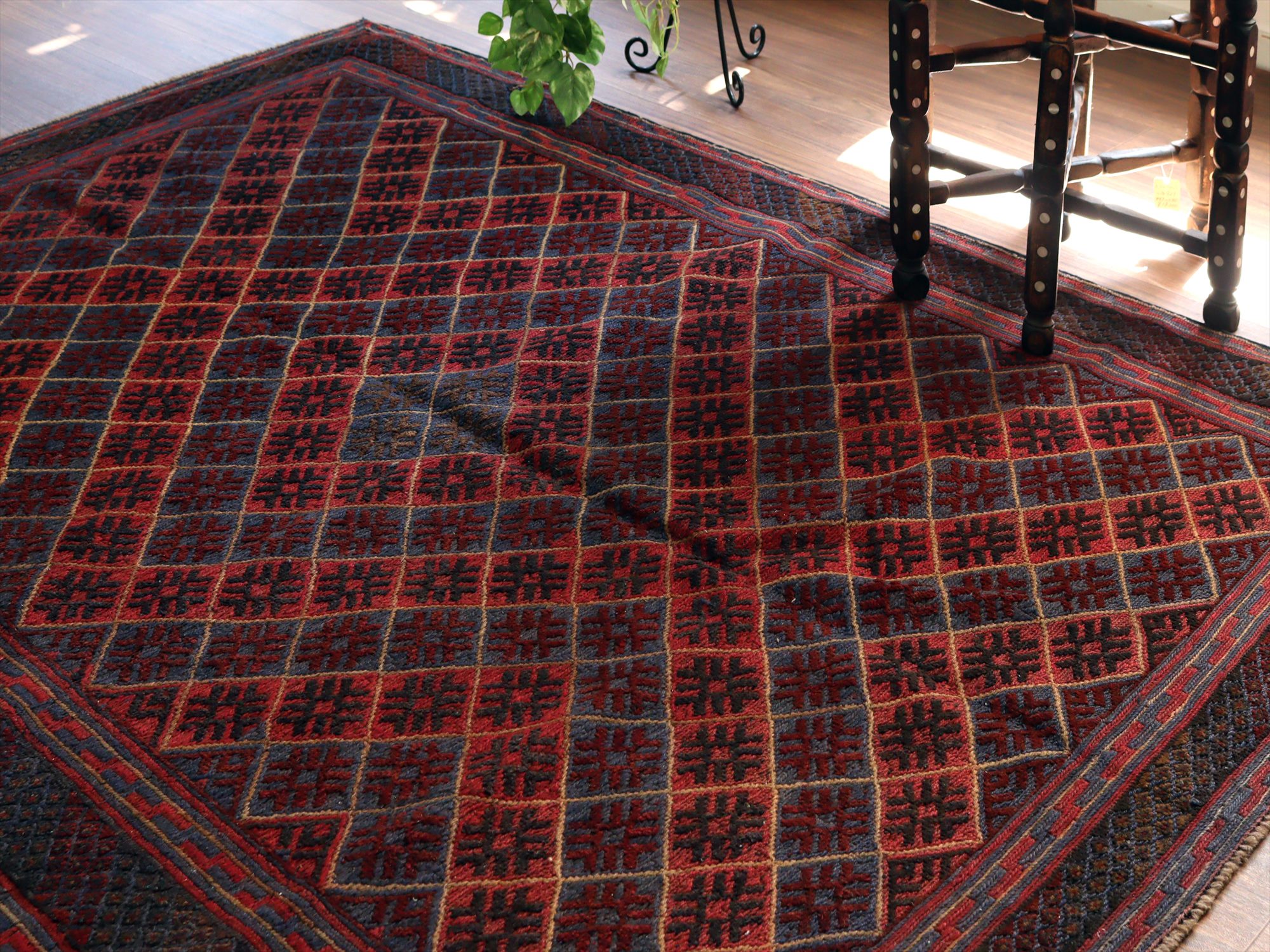アフガンキリム アフガニスタン ミシュワニ187×145cm 連続するダイヤ