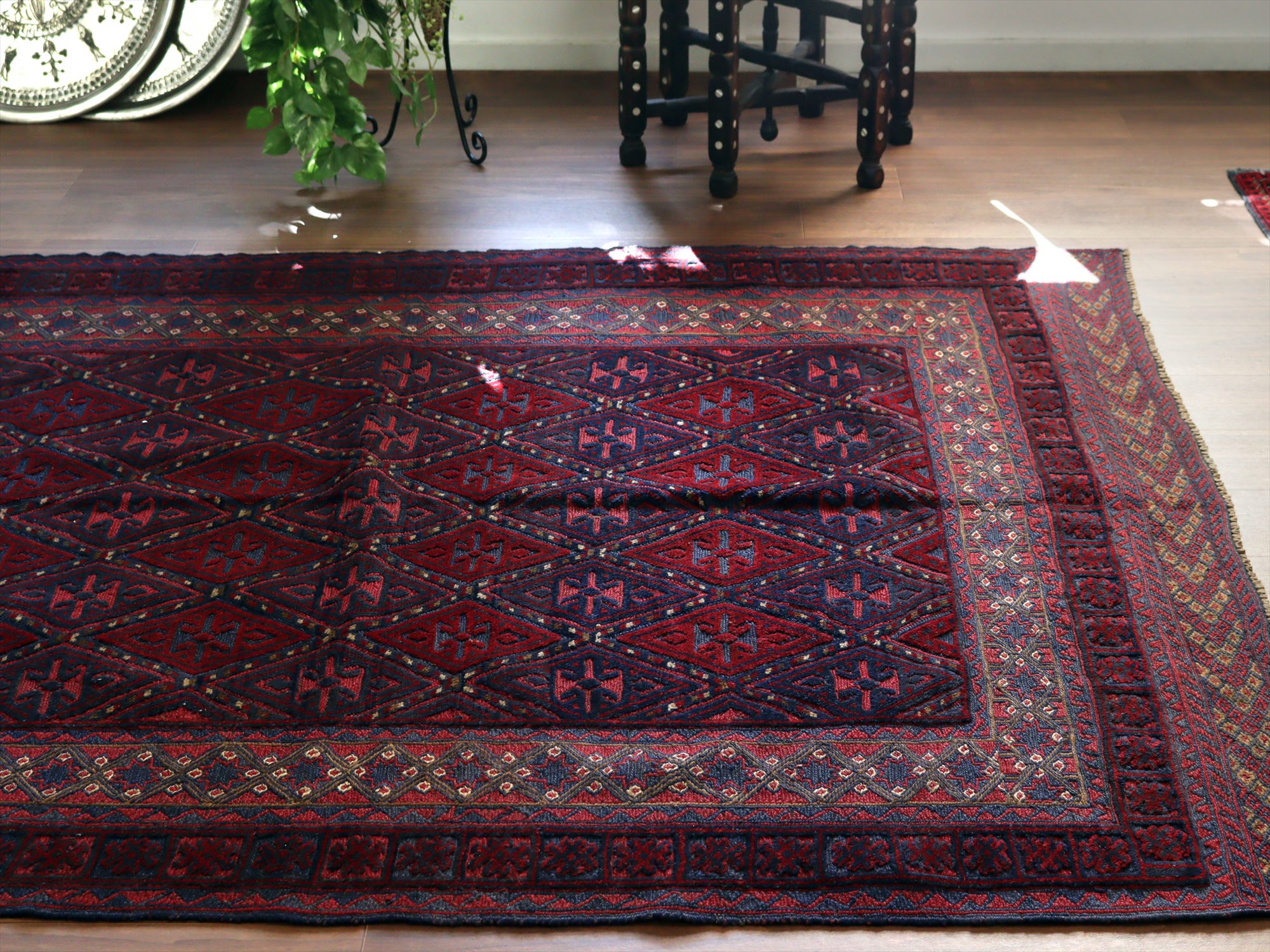 アフガンキリム アフガニスタン ミシュワニ183×146cm 連続する幾何学模様