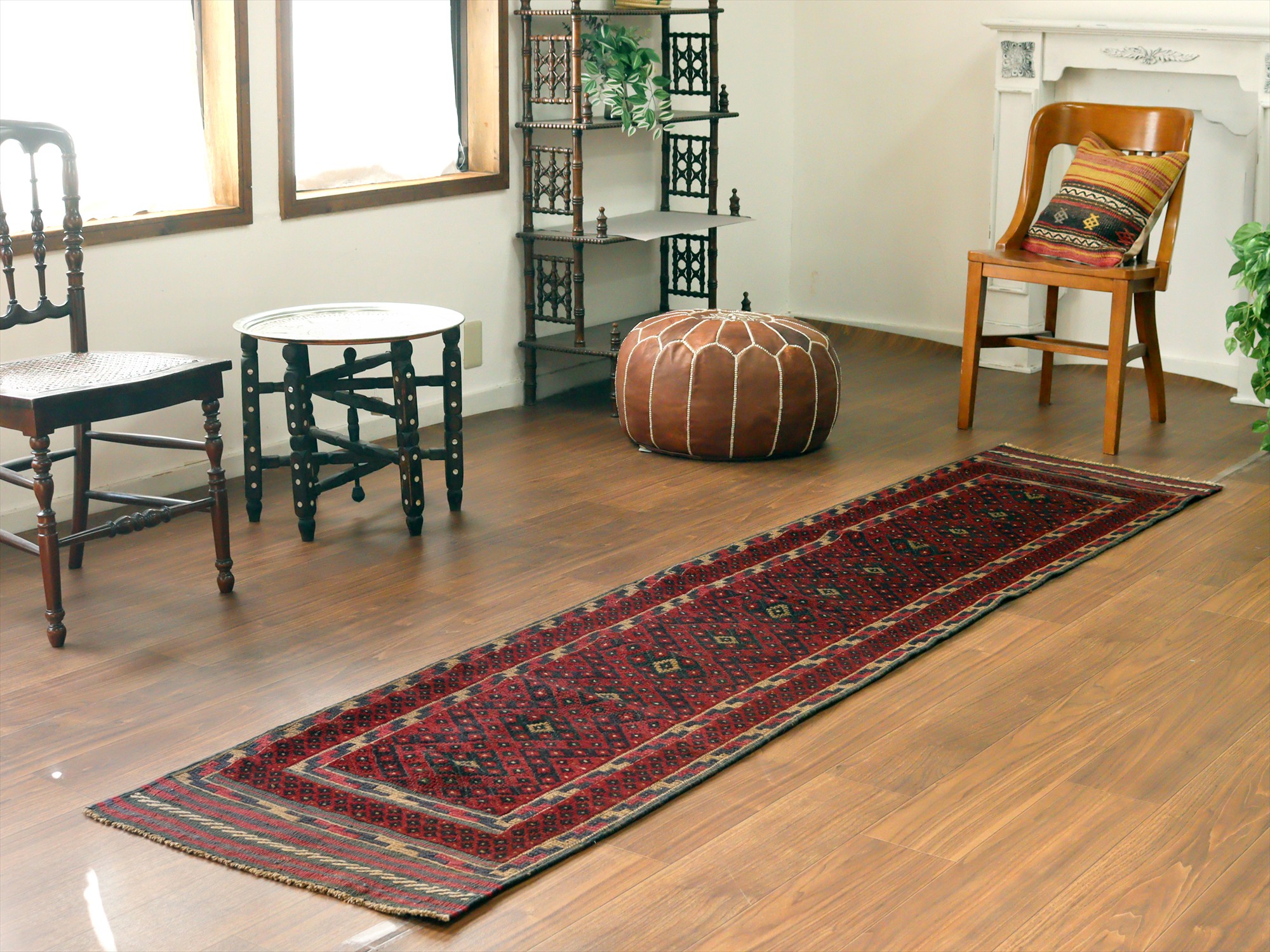 オールドキリム アフガニスタン ミシュワニ275×64cm 幾何学模様 細長サイズ