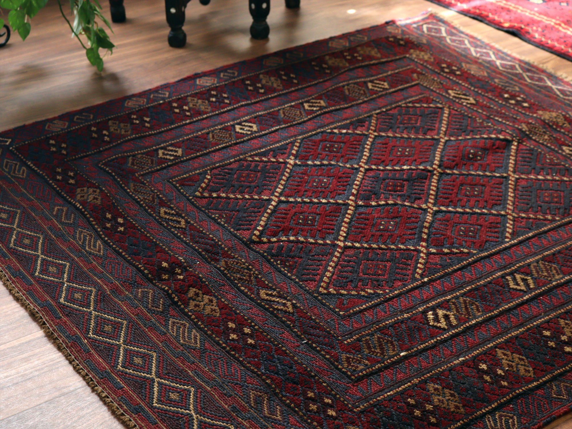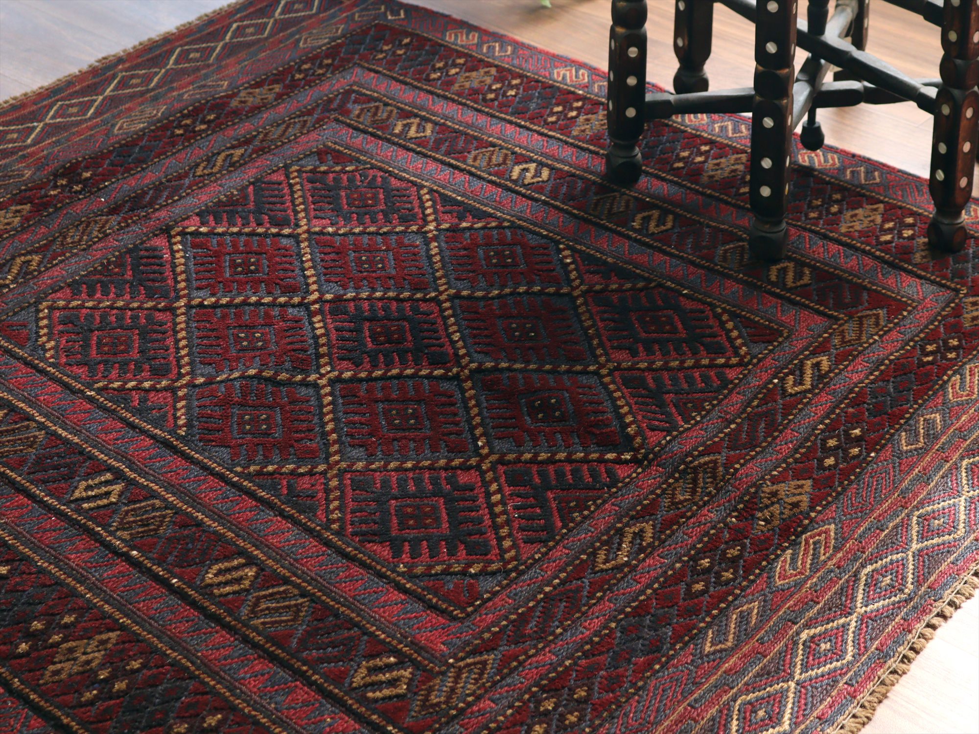 アフガンキリム アフガニスタン ミシュワニ131×122cm 連続する幾何学模様