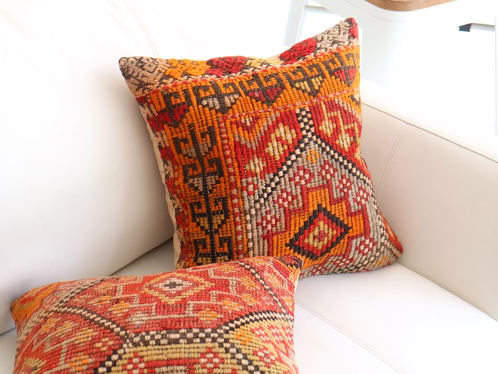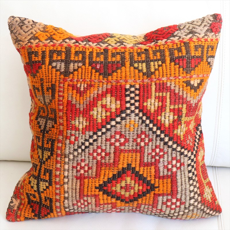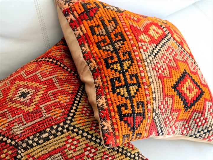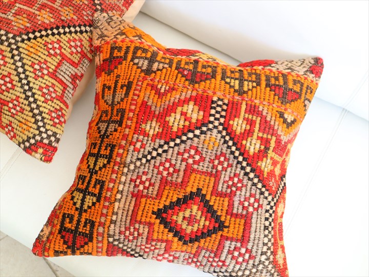 南トルコ地中海に面したムート地方のオールドキリムから。飾り糸を織り込みながら織るジジムという技法で織られていて、刺繍のように表面が立体的になっているため厚手です。