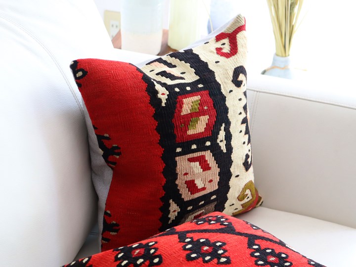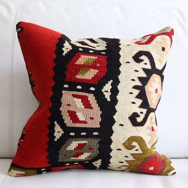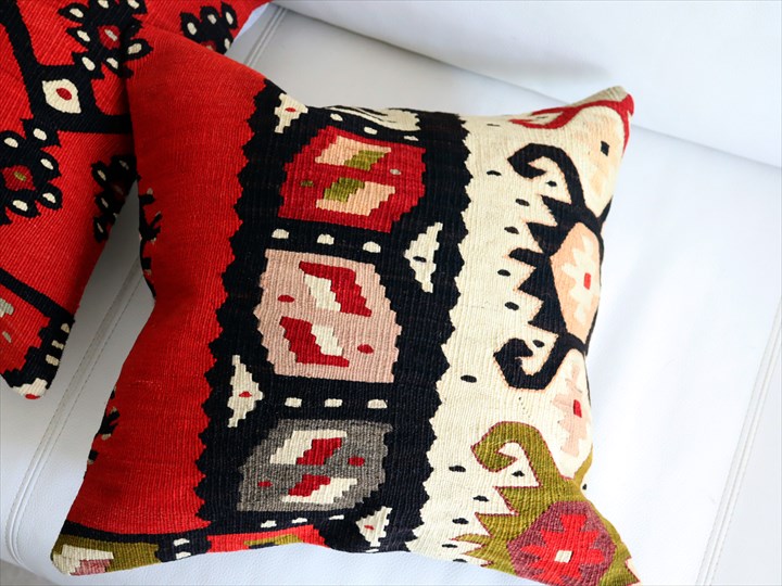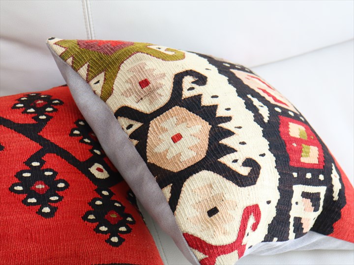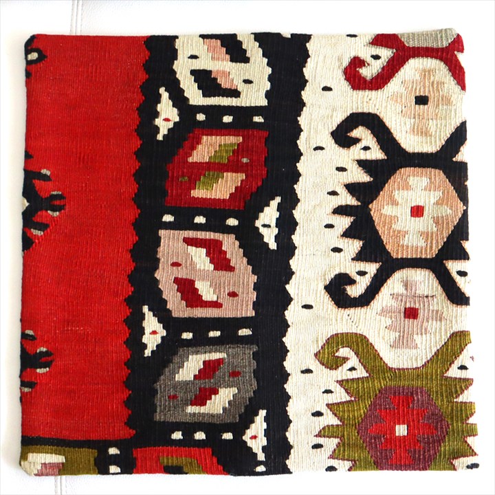 トルコのヨーロッパ大陸側、シャルキョイ地方の細かな織りのアンティークキリムのクッションカバー。この地域の織りの特徴で、細い糸で細かく織られています。薄手でしなやかな織り地です。あまり使われ様子がなくきれいな状態です。